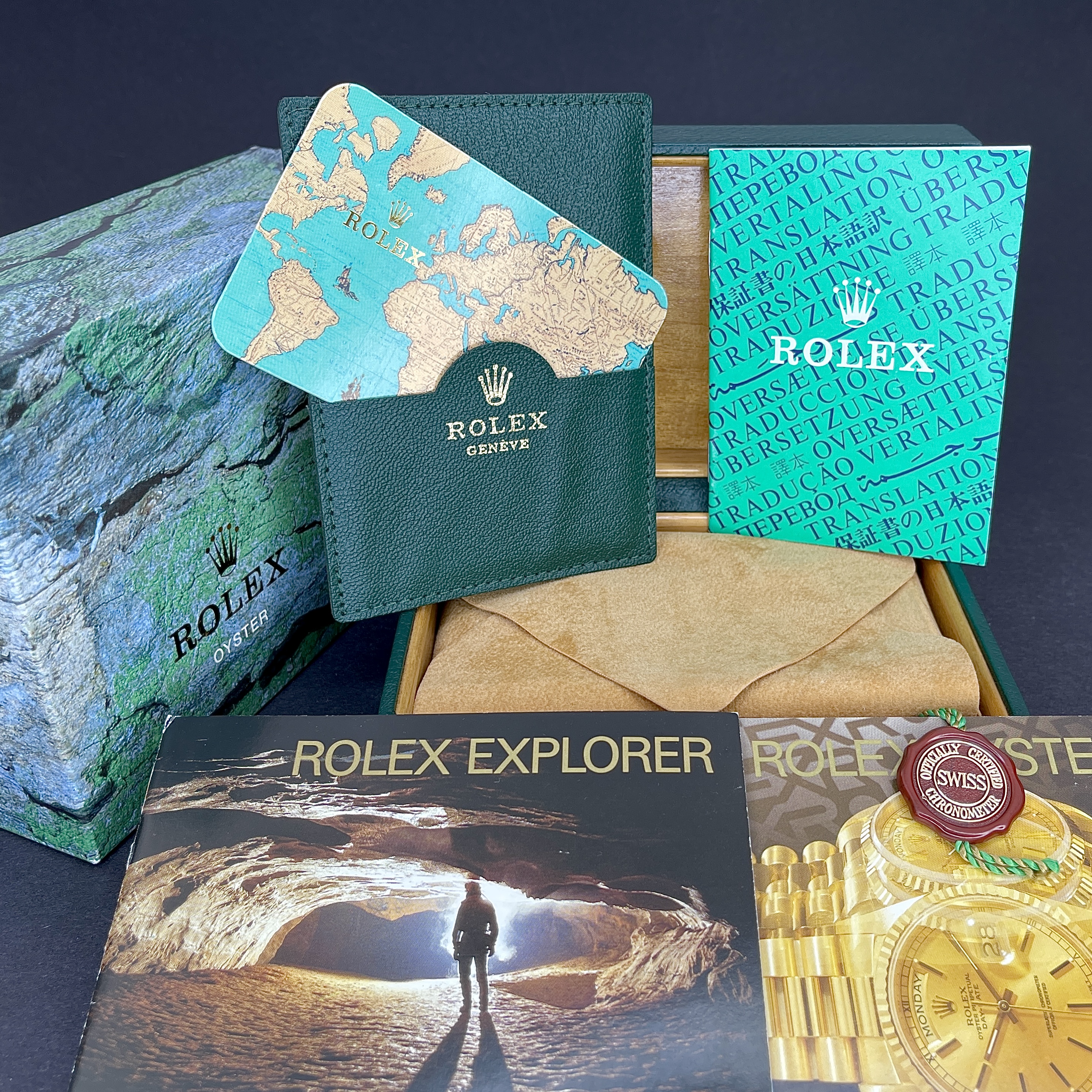 Original Rolex Classic Old Type Box for 16570 with the accessories from 1999 for Only Swiss white dial.