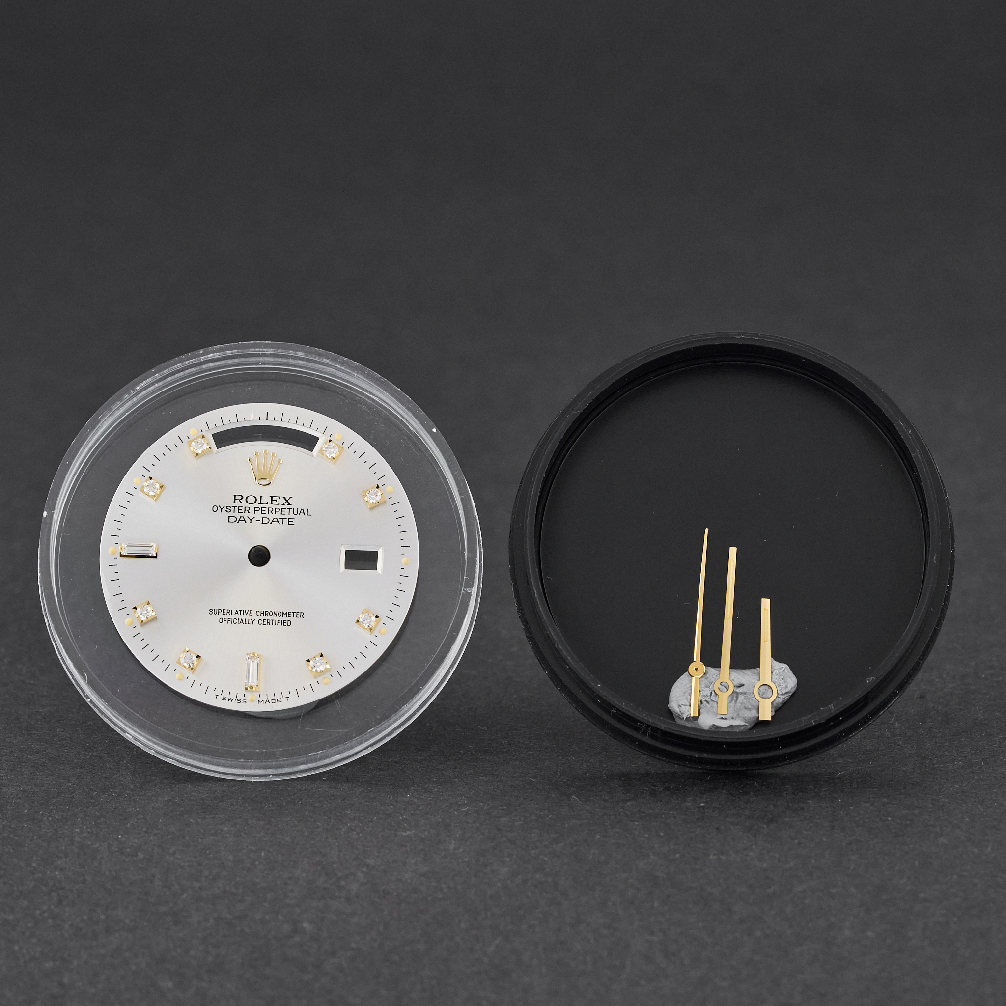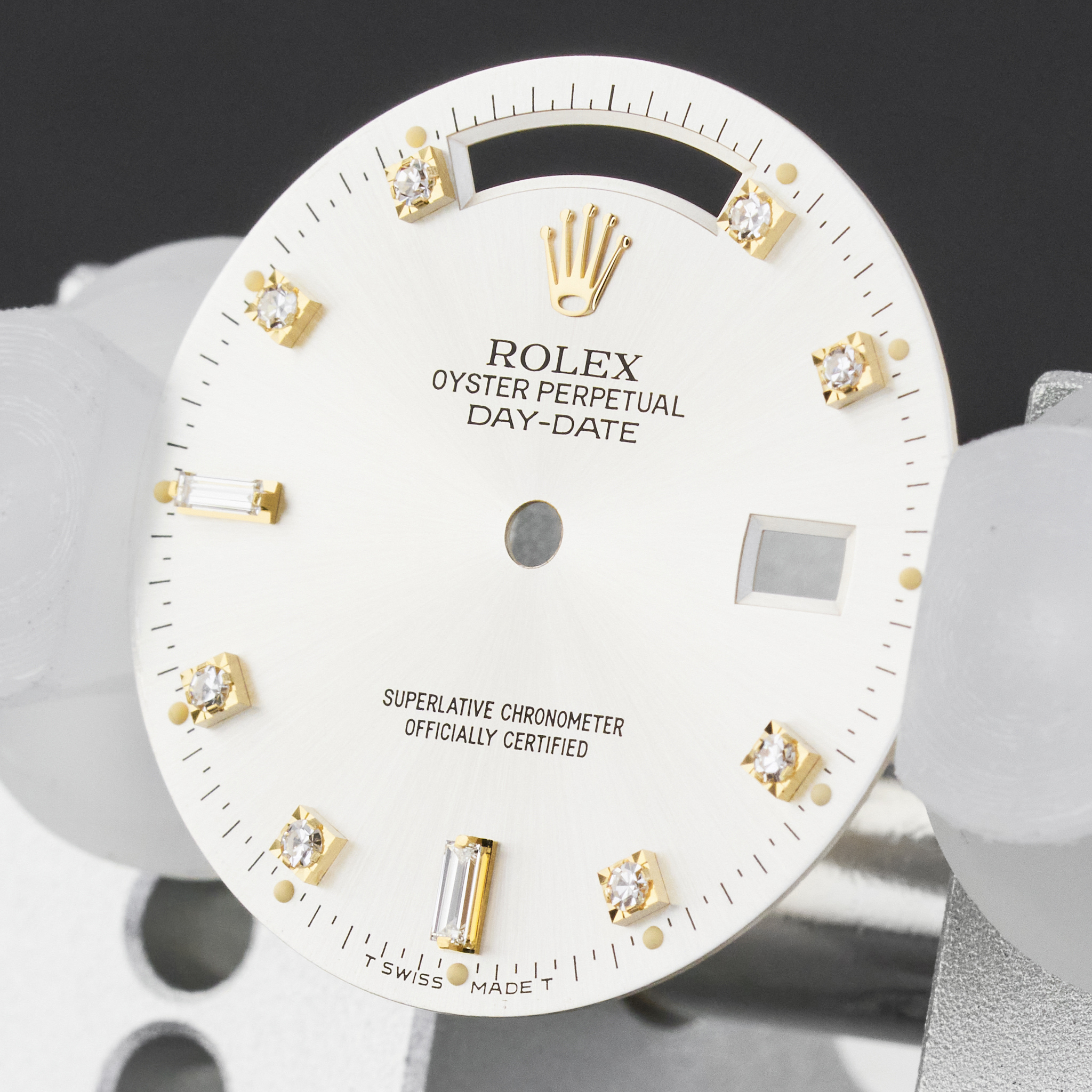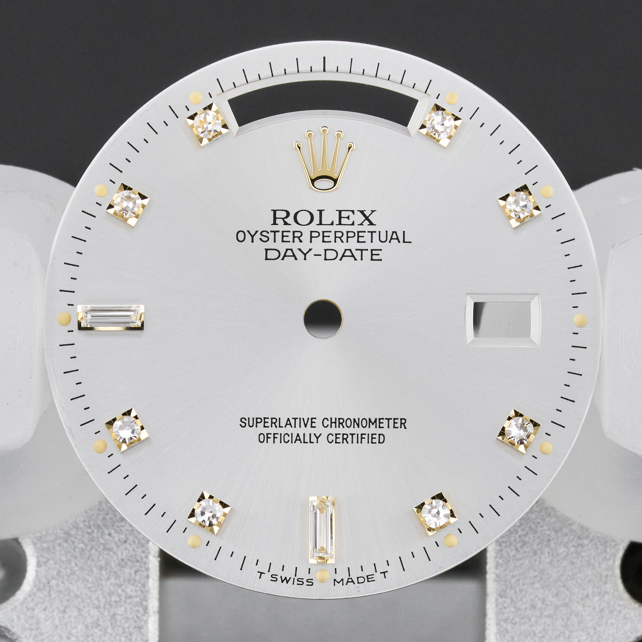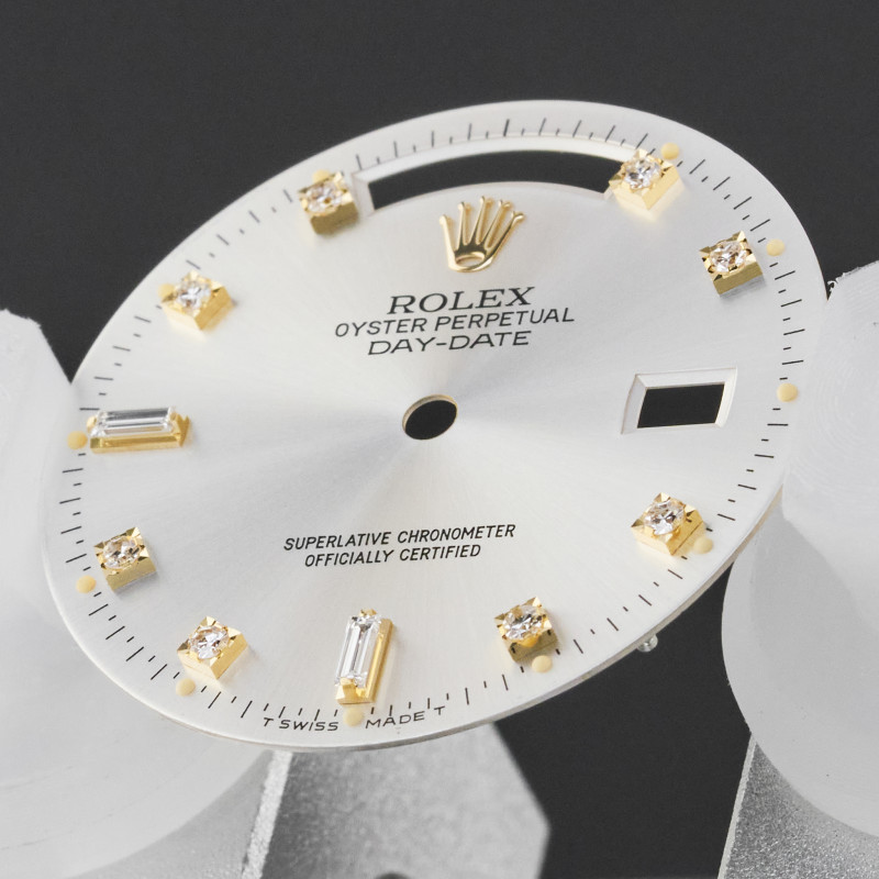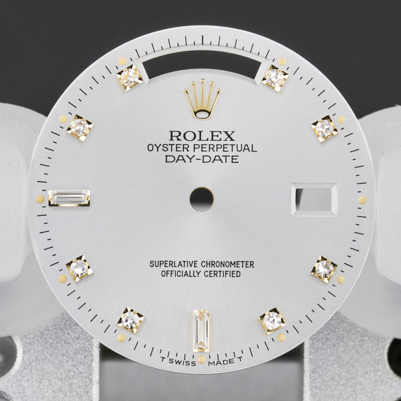 Original Rolex Day-Date 18238/118238 Silver Small Diamond dial (T Swiss Made T) + Hands set.