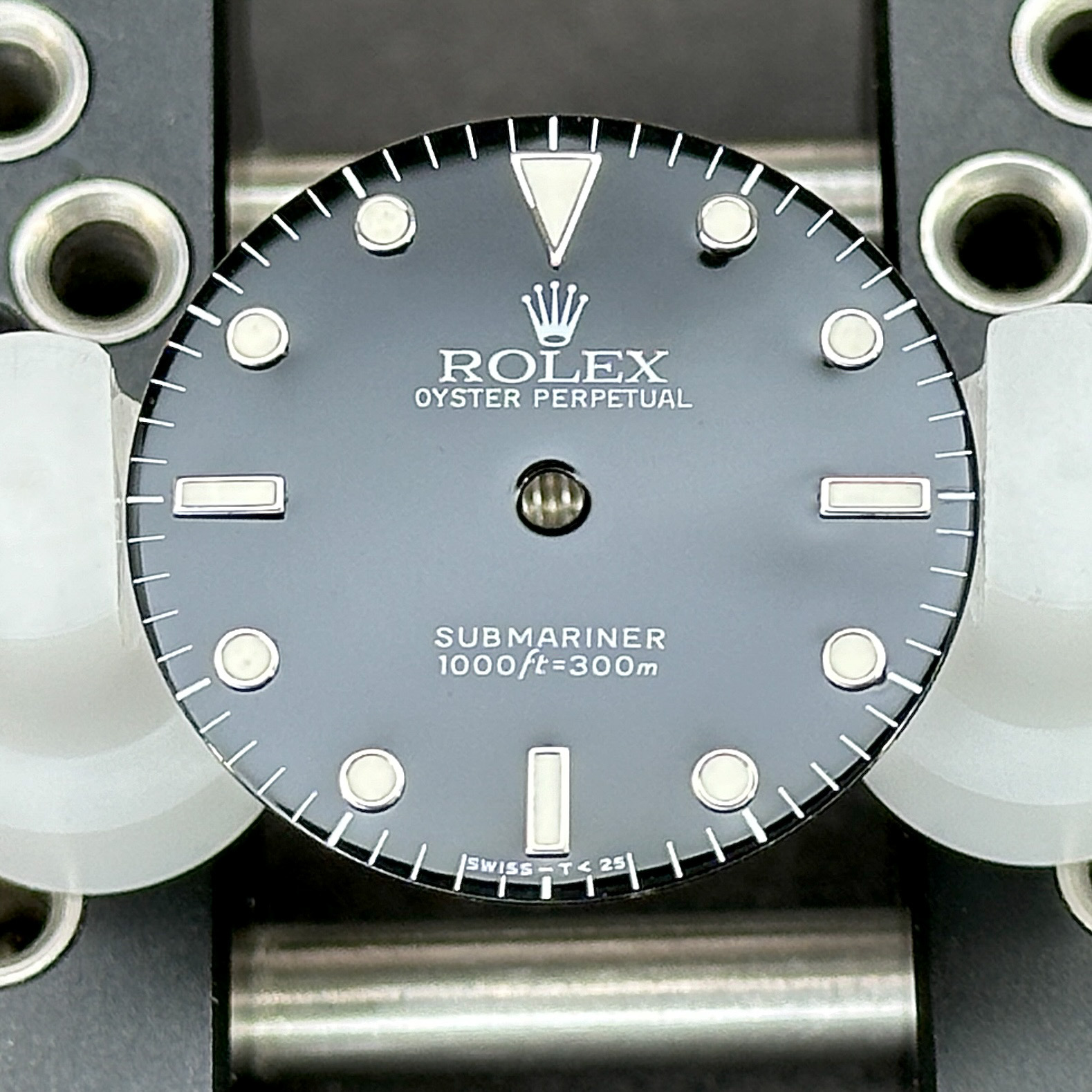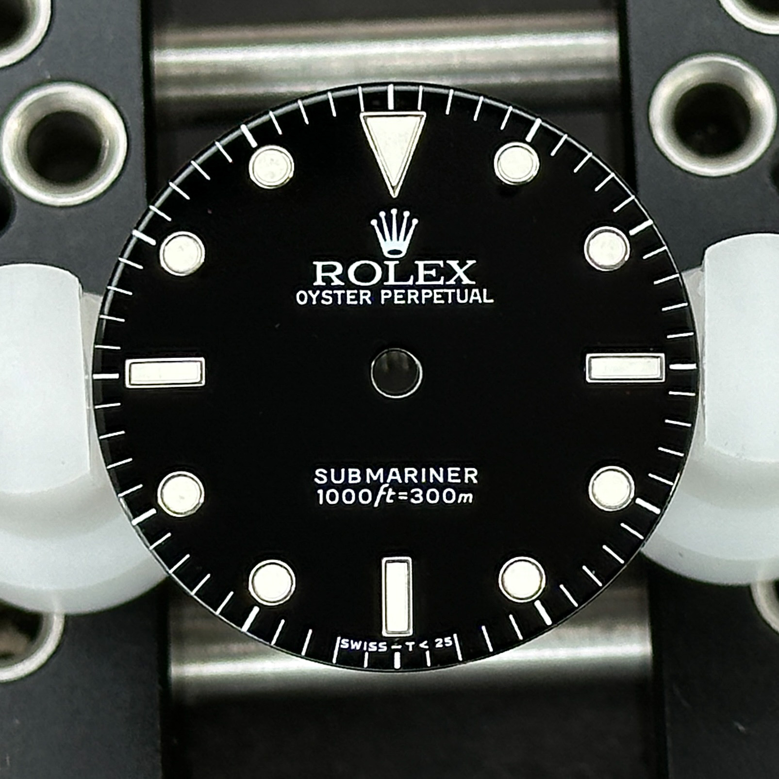 Original Rolex Black Dial for 14060 Submariner No Date, Swiss-T<25. White hour indexes do not glow in the dark.