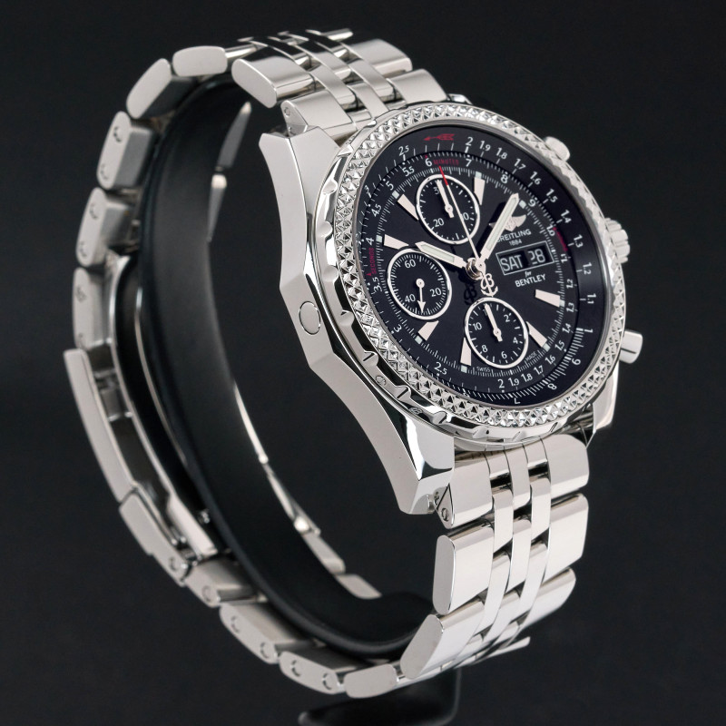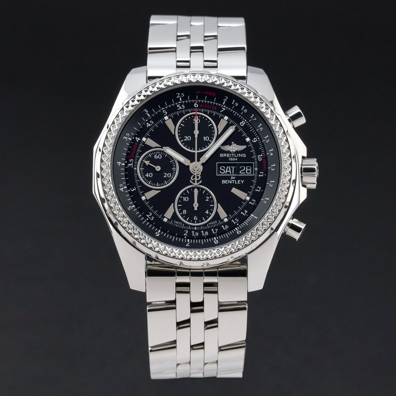 This Breitling Bentley GT A13362 features a Black dial and is crafted from stainless steel, with a production year of 2015.