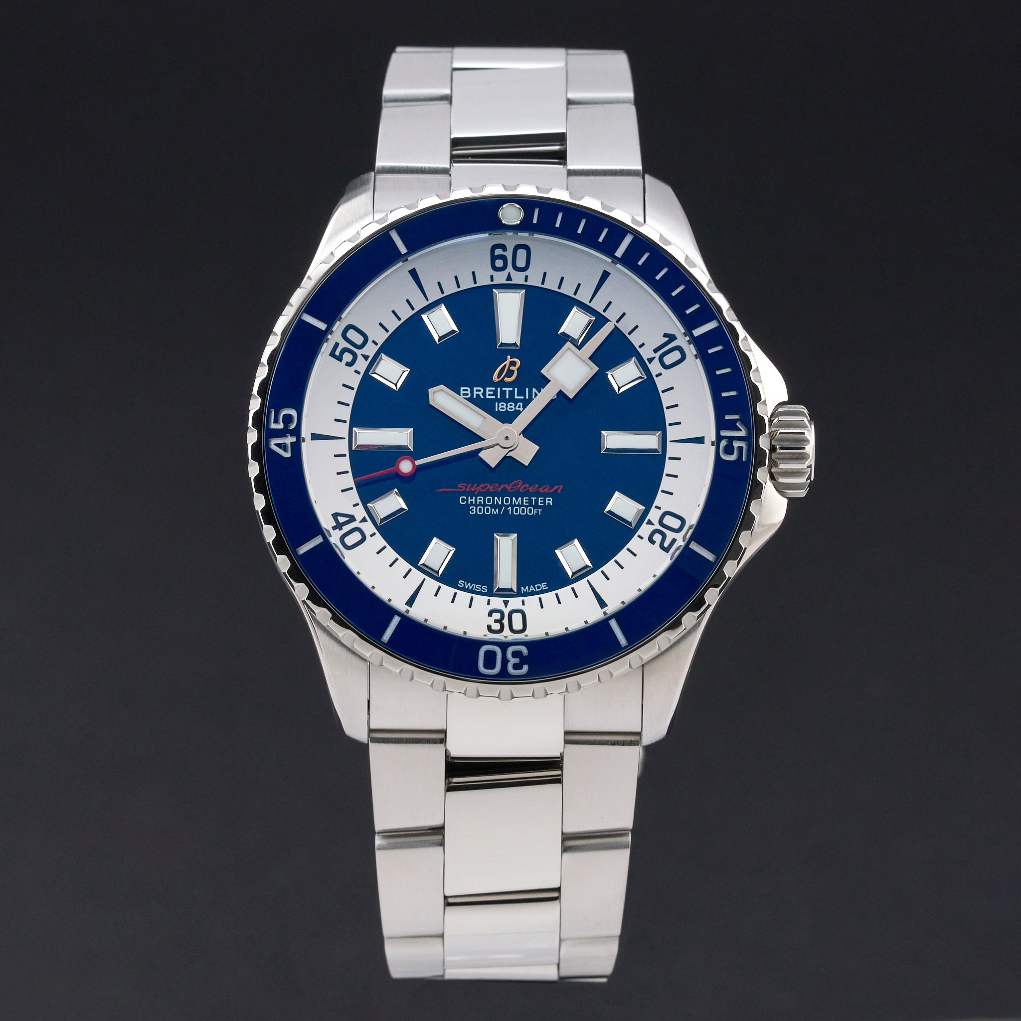 This Breitling Superocean A17375E71C1A1 features a Blue dial and is crafted from stainless steel, with a production year of 2022.