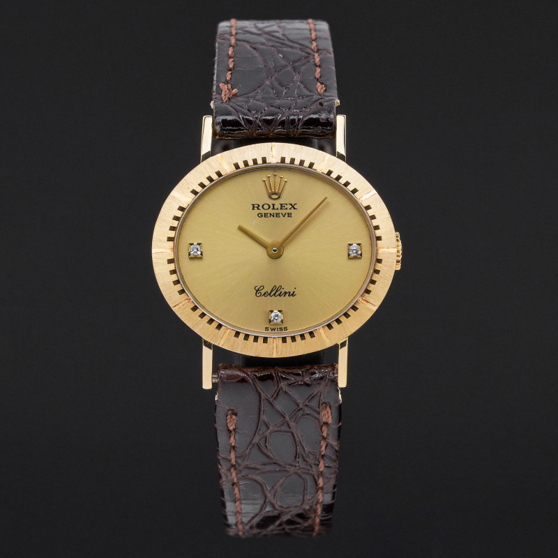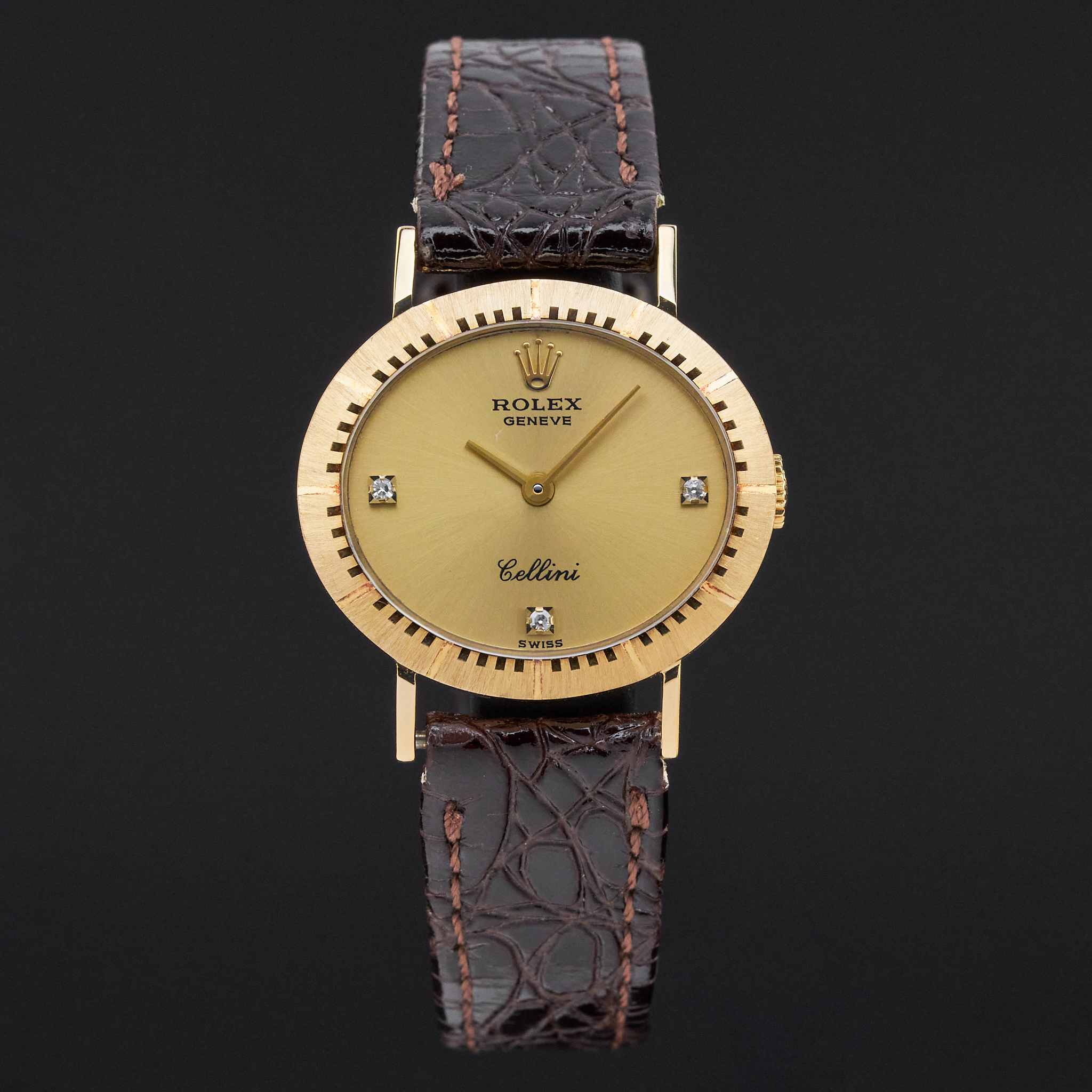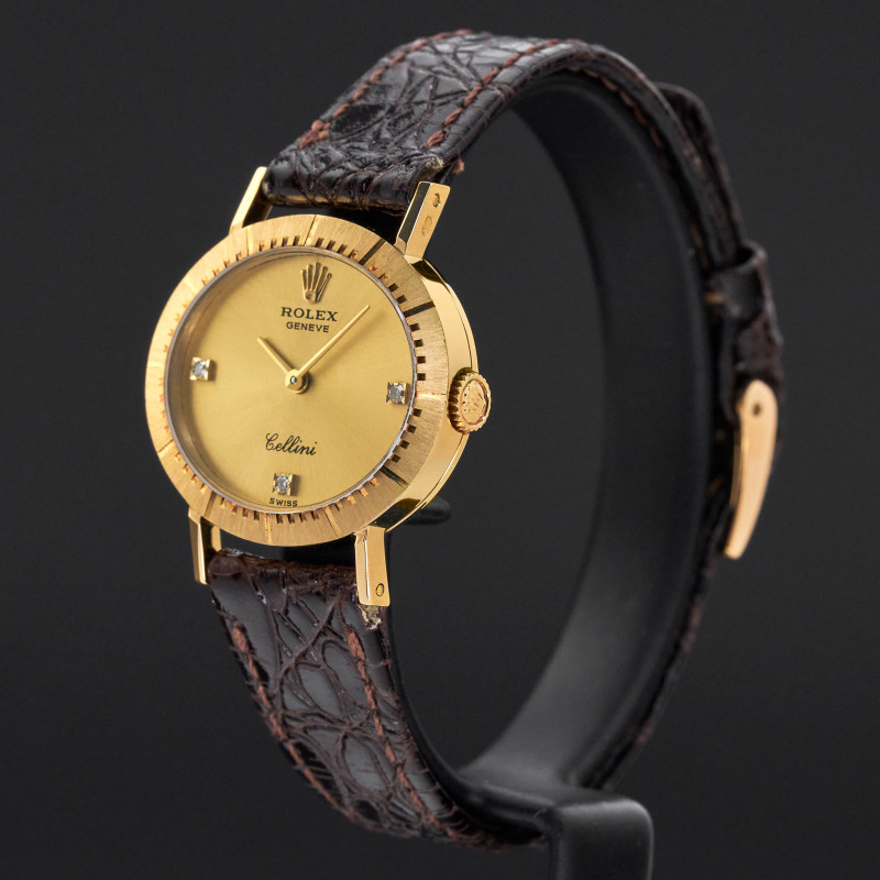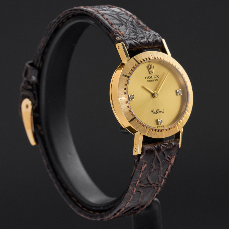 This Rolex Cellini 4081 features a Champagne diamond dial and is crafted from 18K yellow gold, with a production year of 1981.