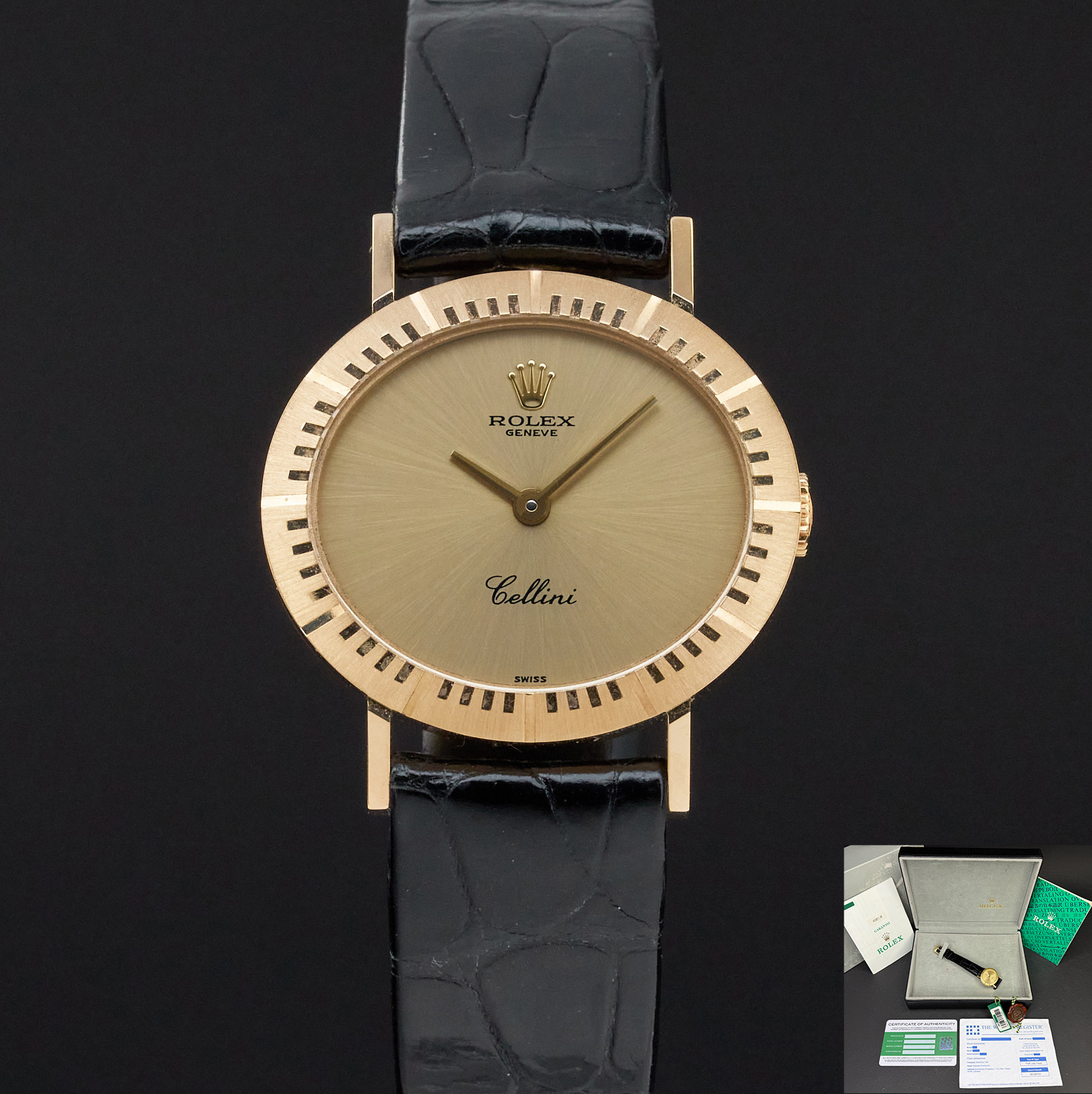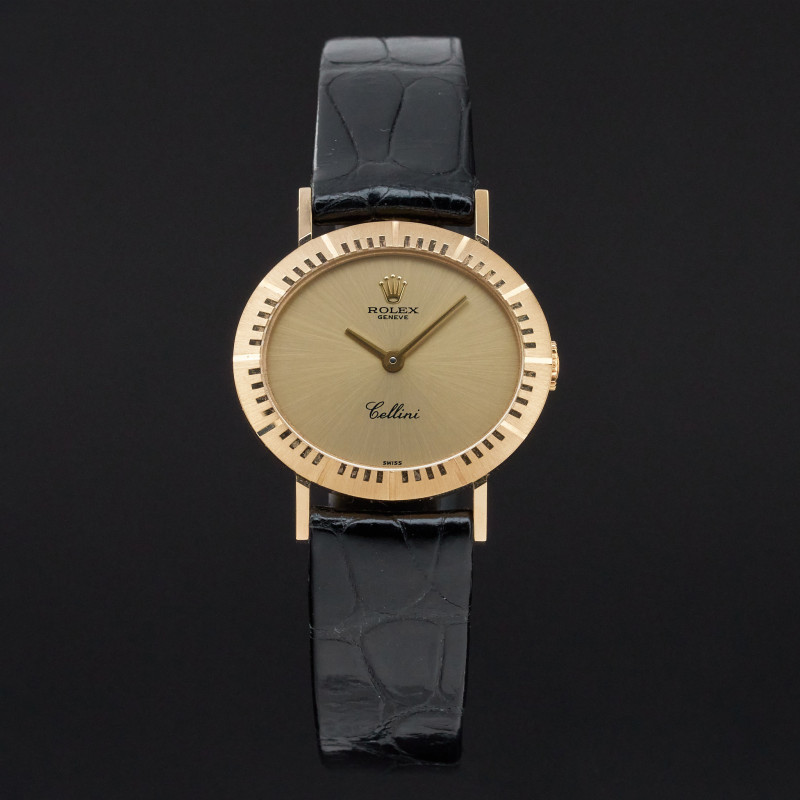 This Rolex Cellini 4081 features a Champagne dial and is crafted from 18K yellow gold, with a production year of 1995.