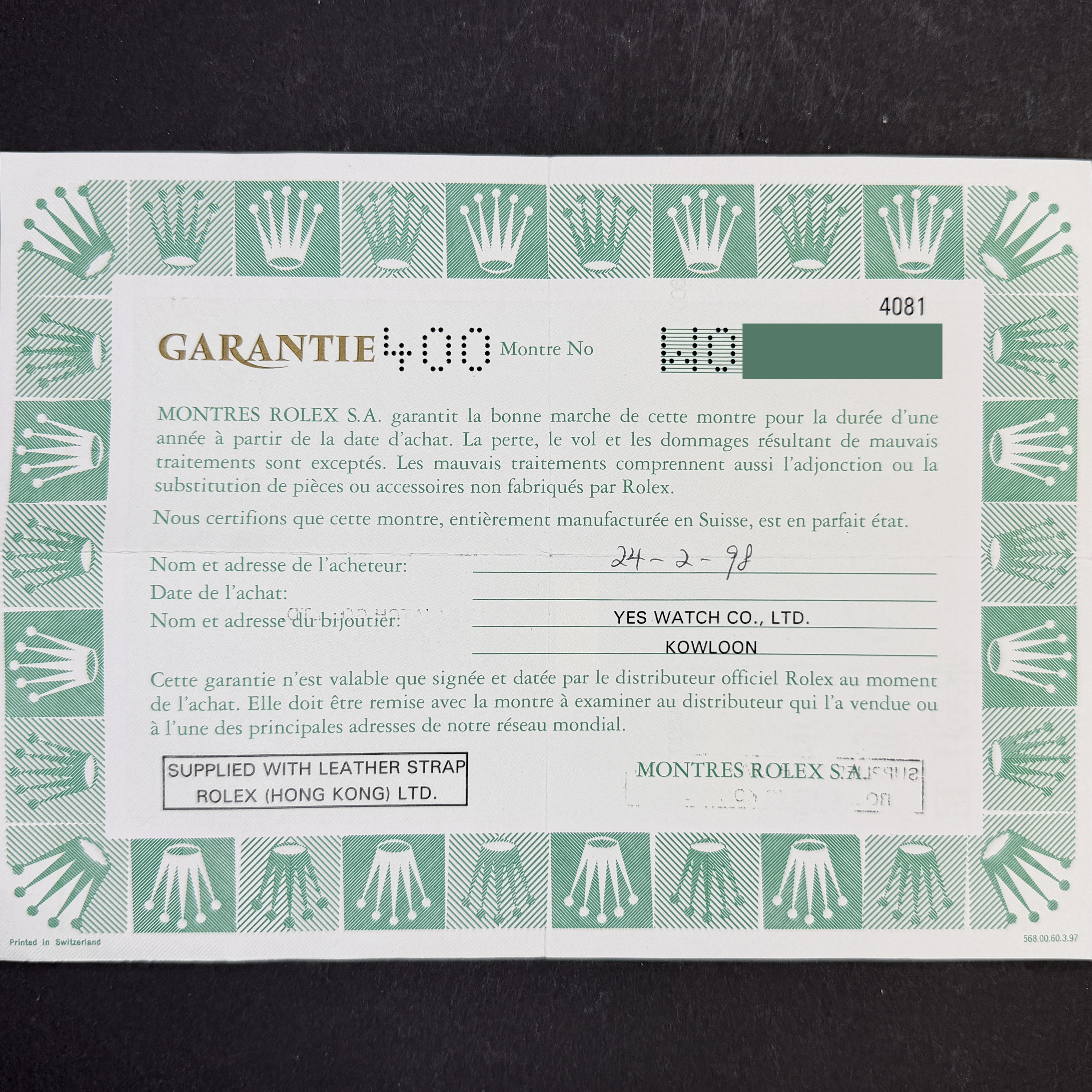 • Watches are serviced in our own workshop by our 12 experienced watchmakers.