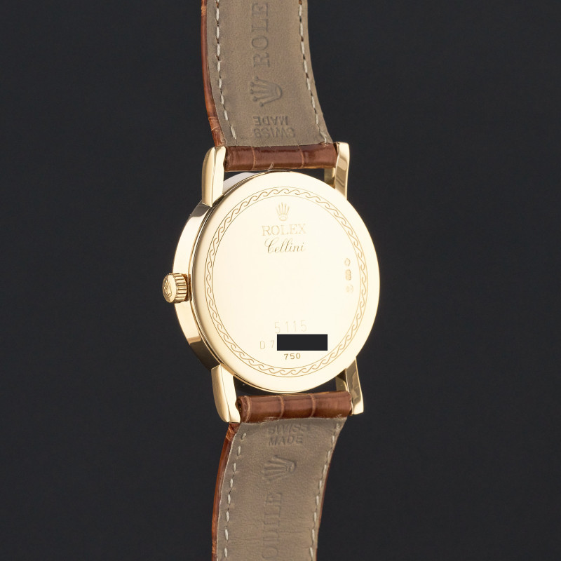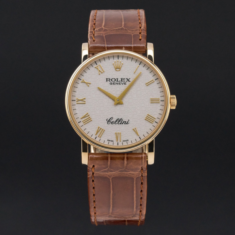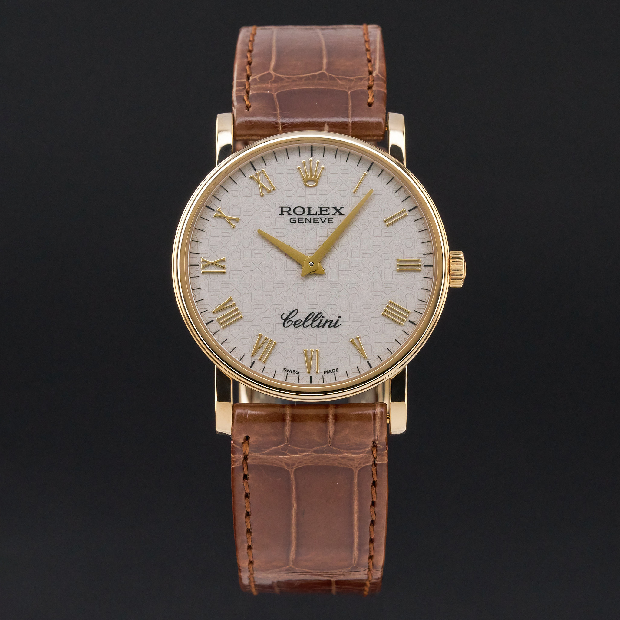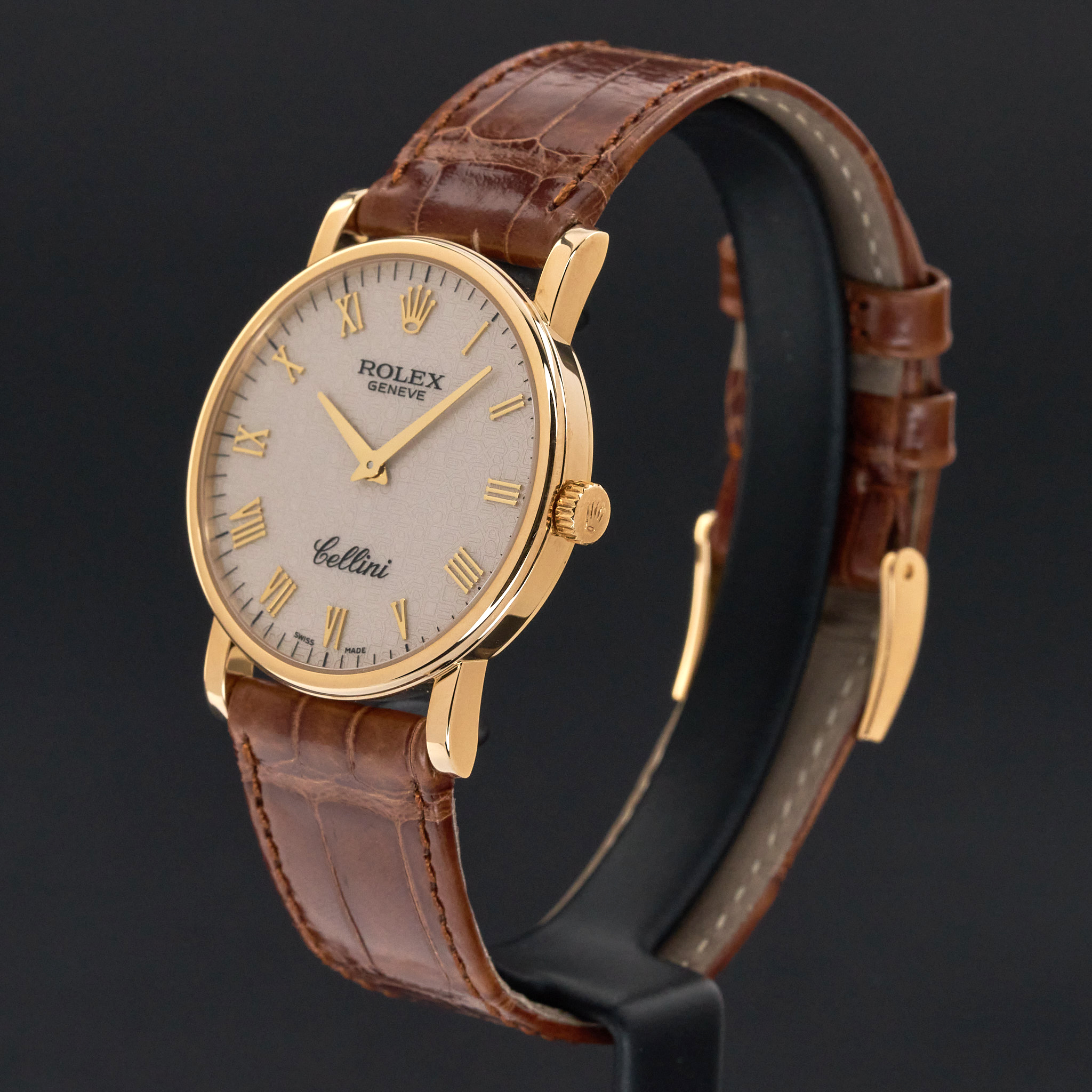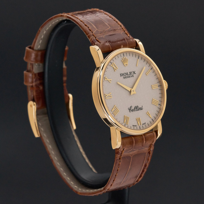 This Rolex Cellini 5115/8 features a Ivory jubilee Roman dial and is crafted from 18K yellow gold, with a production year of 2006.
