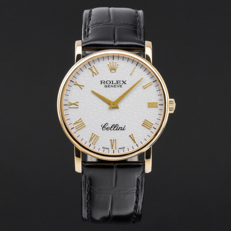 This Rolex Cellini 5115/8 features a Ivory jubilee Roman dial and is crafted from 18K yellow gold, with a production year of 2007.