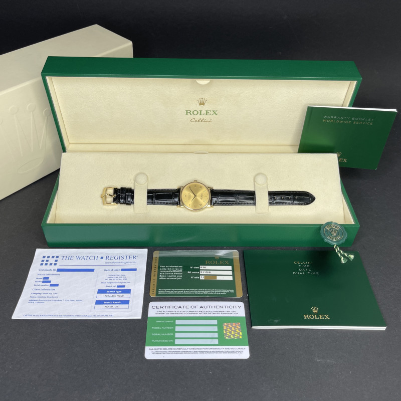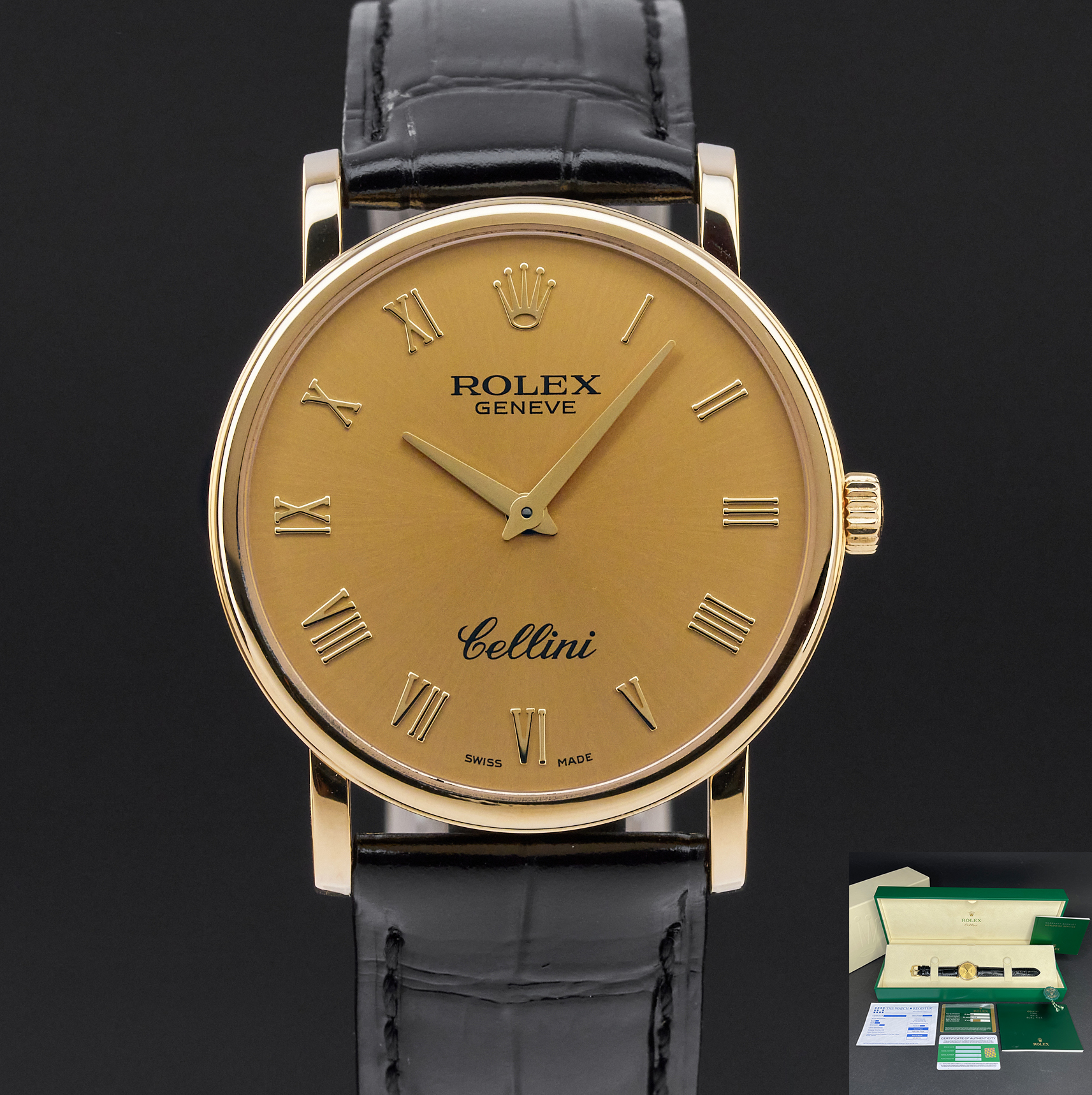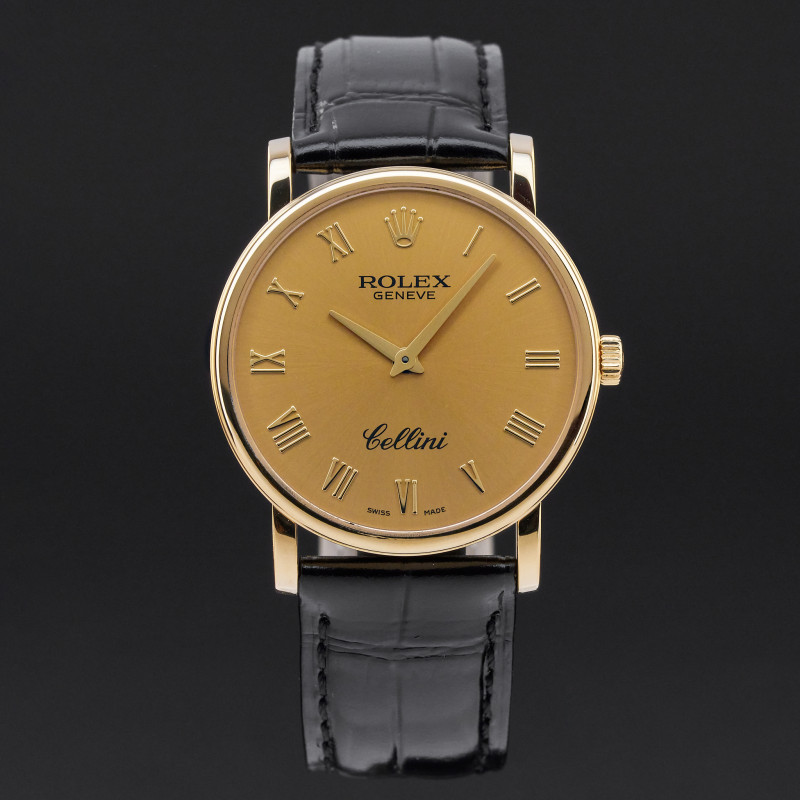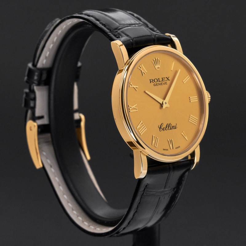 This Rolex Cellini 5115/8 features a Champagne Roman dial and is crafted from 18K yellow gold, with a production year of 2013.