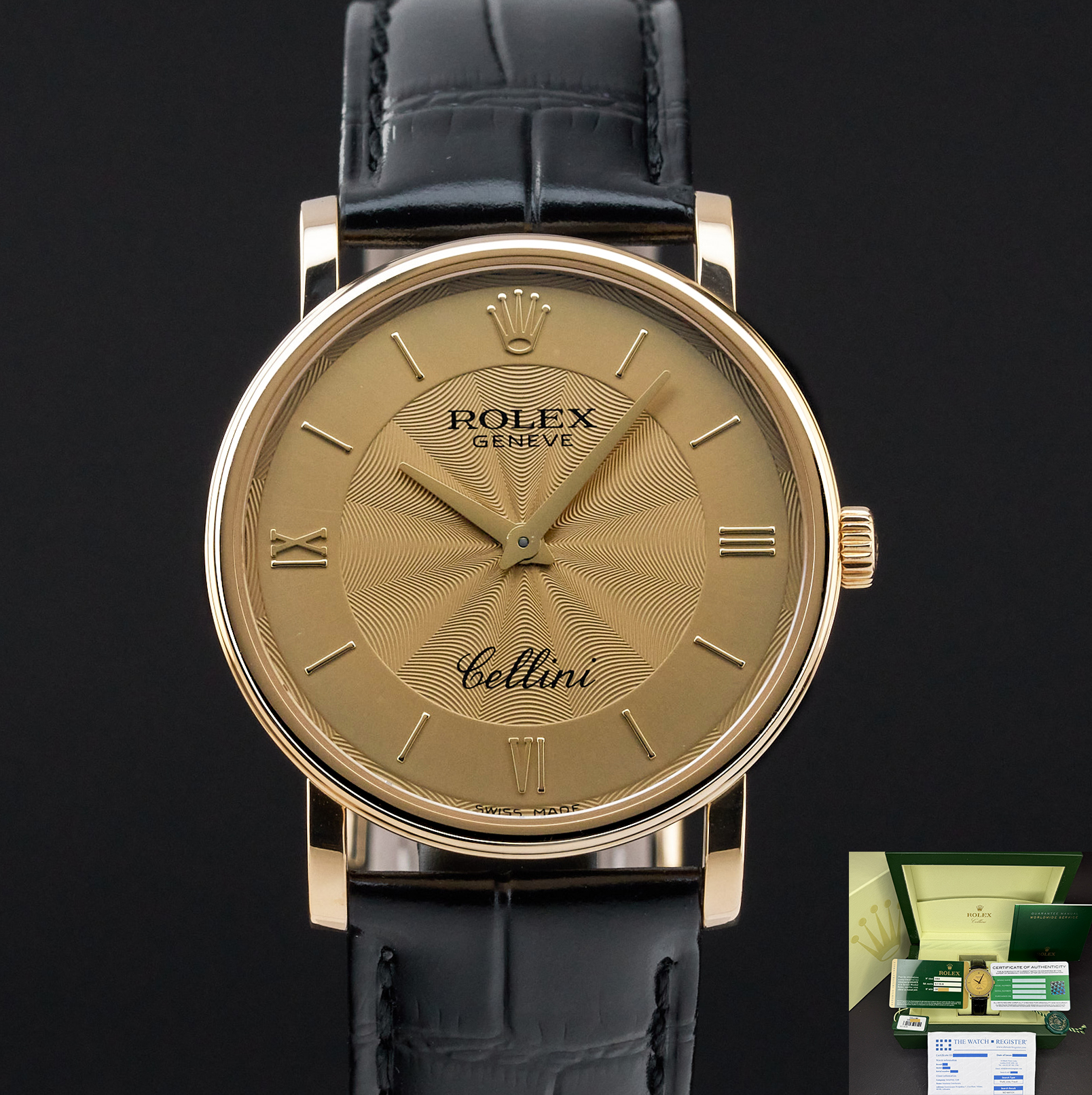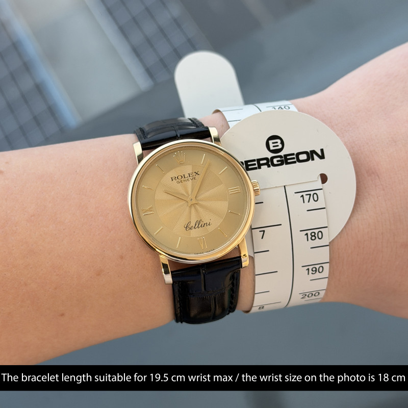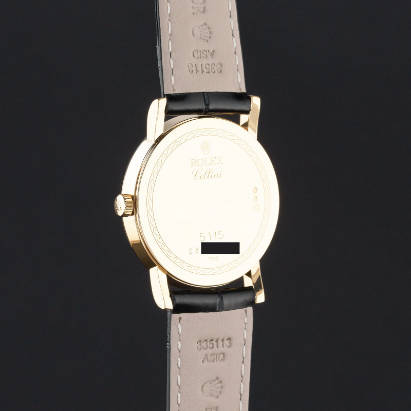 This Rolex Cellini 5115/8 features a Champagne Roman dial and is crafted from 18K yellow gold, with a production year of 2013.