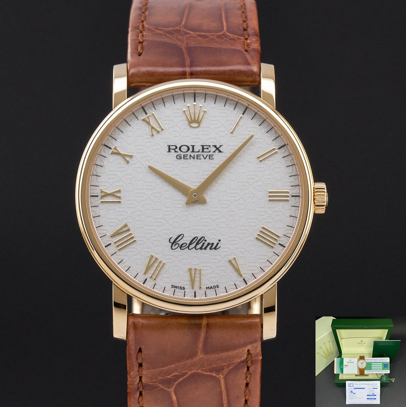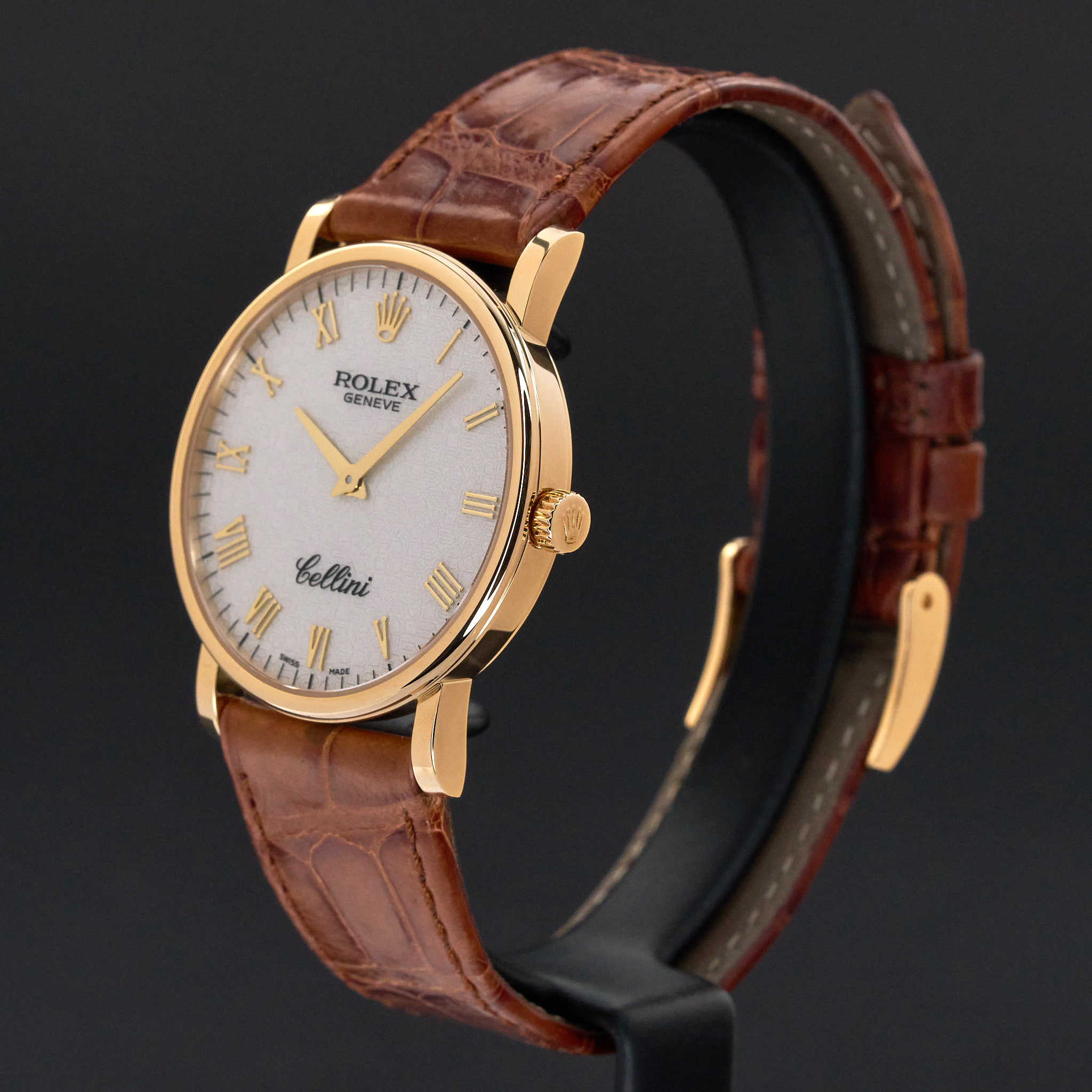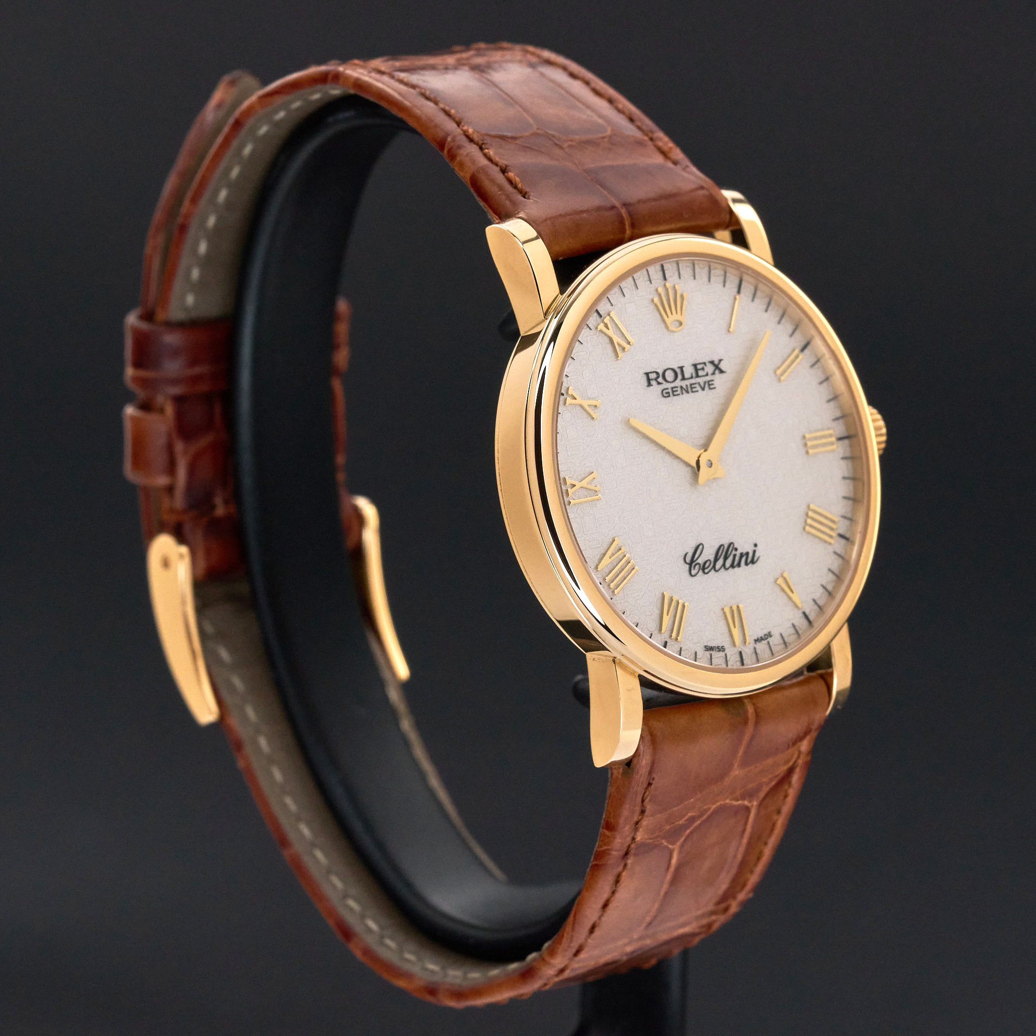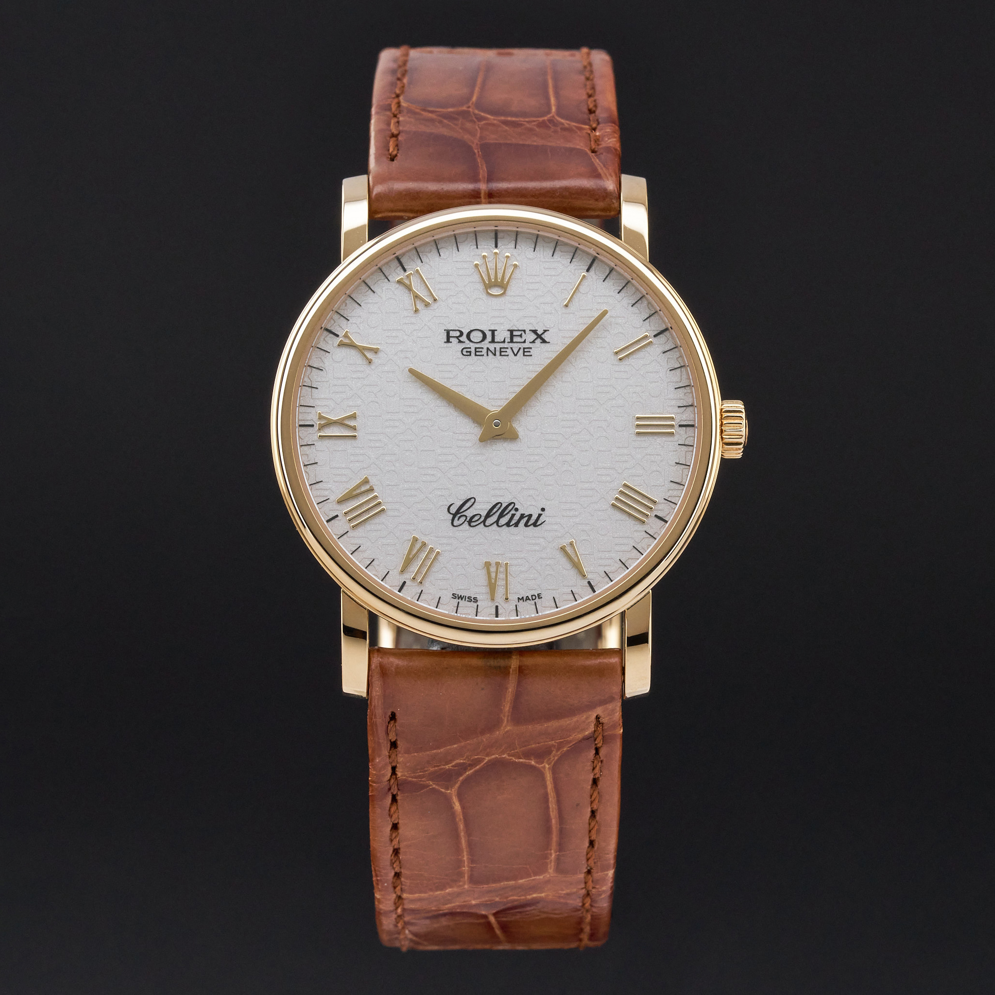 This Rolex Cellini 5115/8 features an Ivory jubilee Roman dial and is crafted from 18K yellow gold, with a production year of 2015.