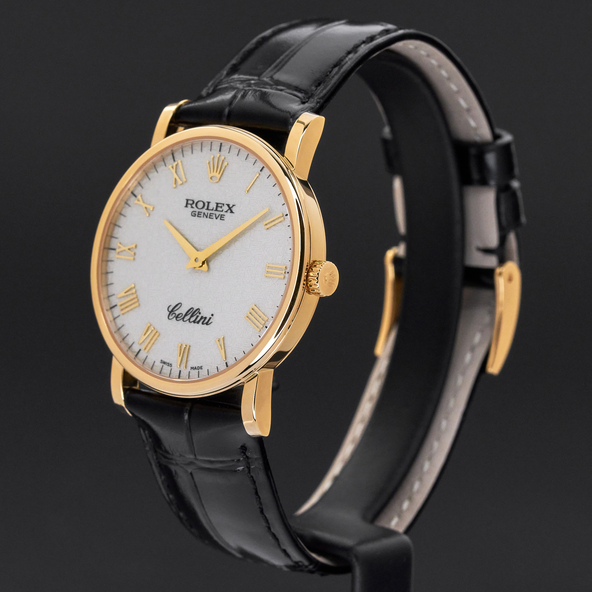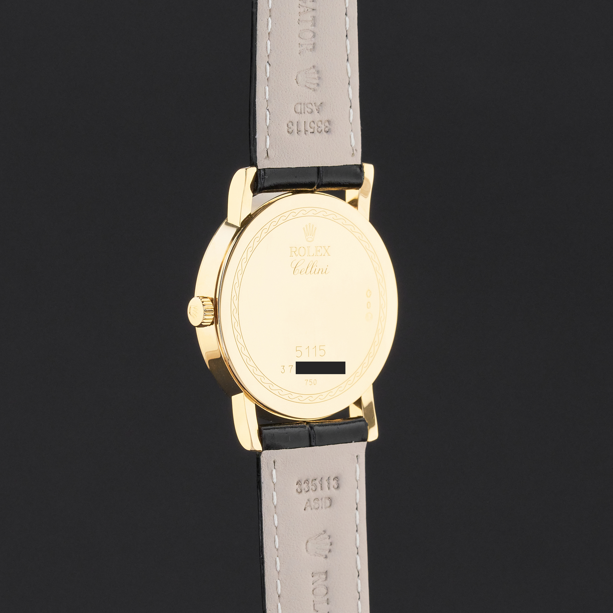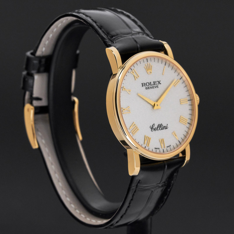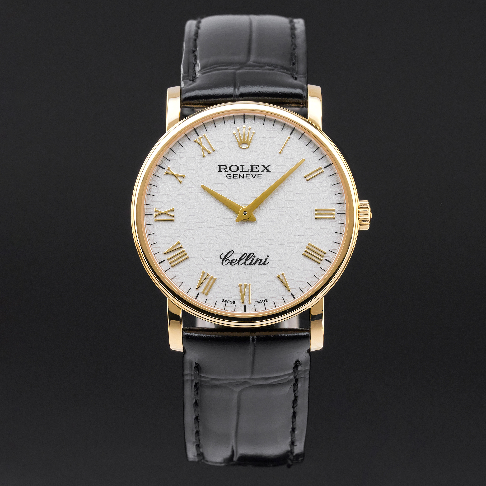 This Rolex Cellini 5115/8 features an Ivory jubilee Roman dial and is crafted from 18K yellow gold.