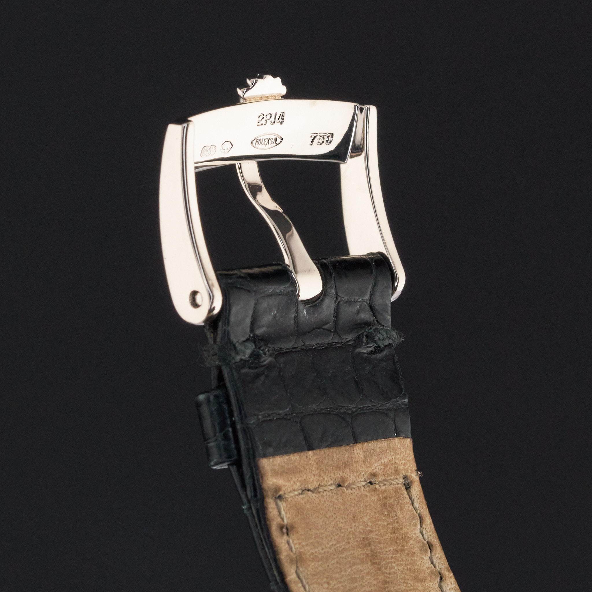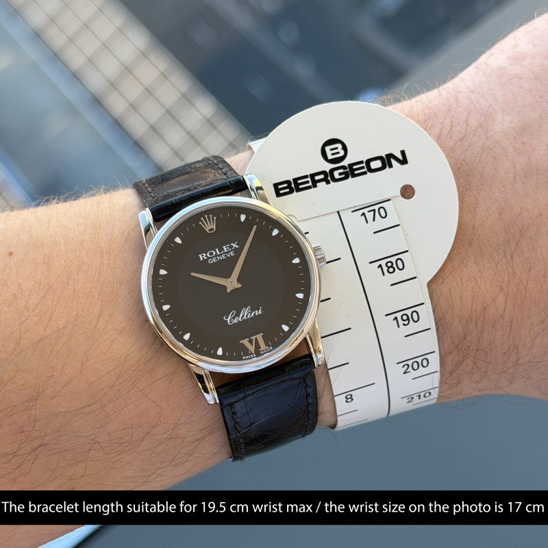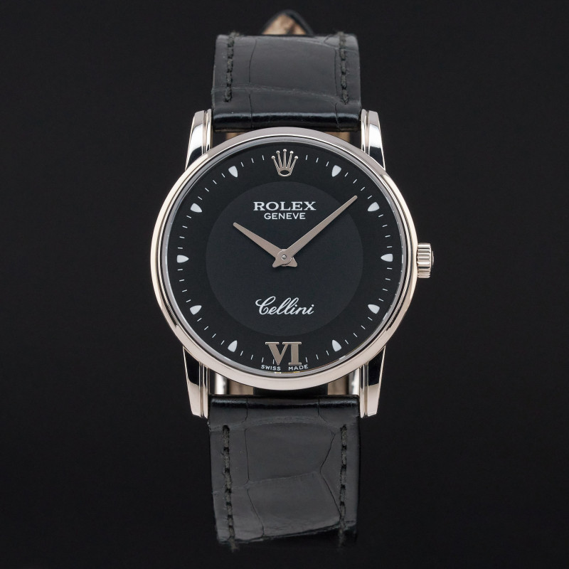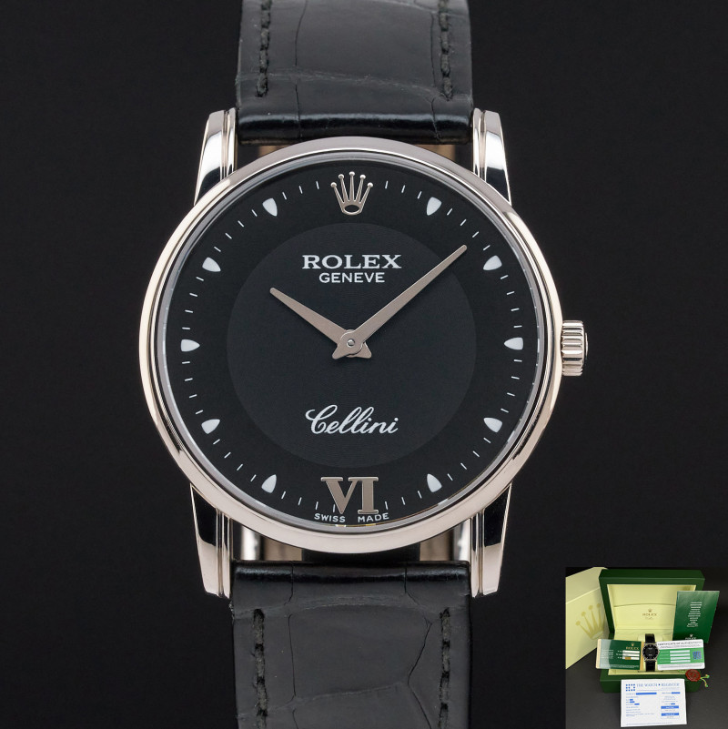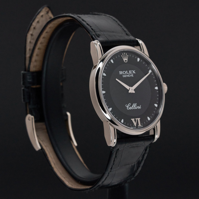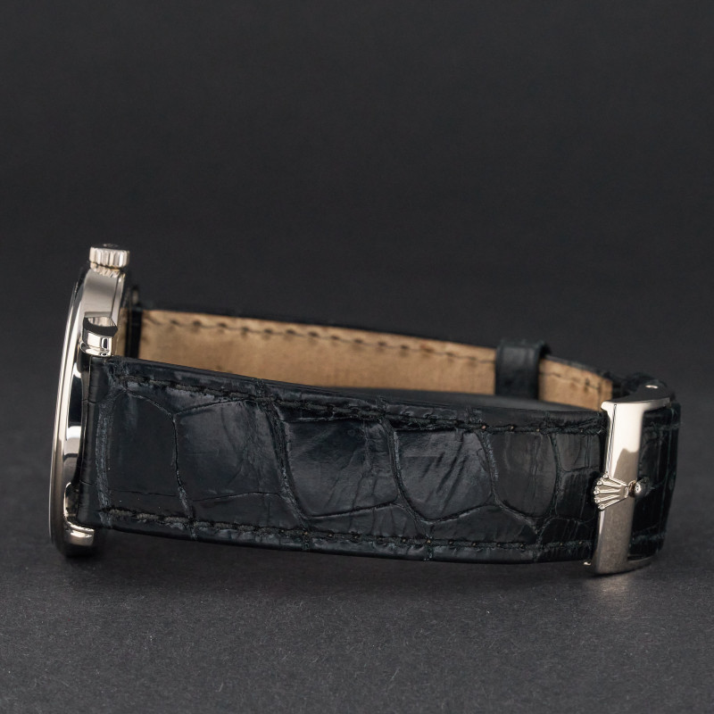 This Rolex Cellini 5116/9 features a Black Roman dial and is crafted from 18K white gold, with a production year of 2008.