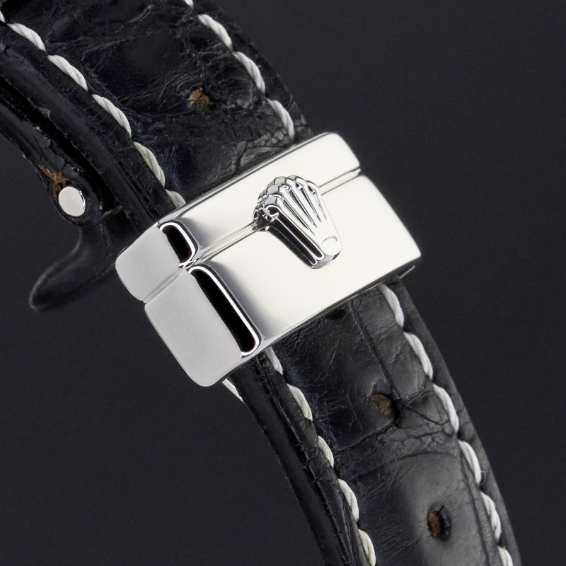 This particular Rolex Cellini introduced in 2001, stands out with its minimalist silhouette and rare glacier blue dial – a color seldom seen in the Cellini line, making this piece especially sought after among collectors. Slim hour markers and a clean layout emphasize balance and clarity, allowing the cool-toned dial to take center stage.
