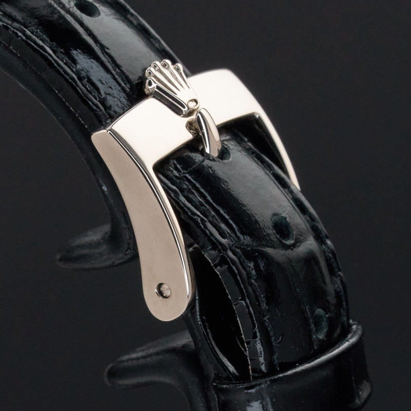 This particular Rolex Cellini introduced in 2011, presents a perfect balance of elegance and precision. It's black dial, marked with crisp Roman numerals, delivers a classic look with strong visual clarity. The streamlined case and minimalist layout underscore the Cellini line’s devotion to timeless dress watch aesthetics.