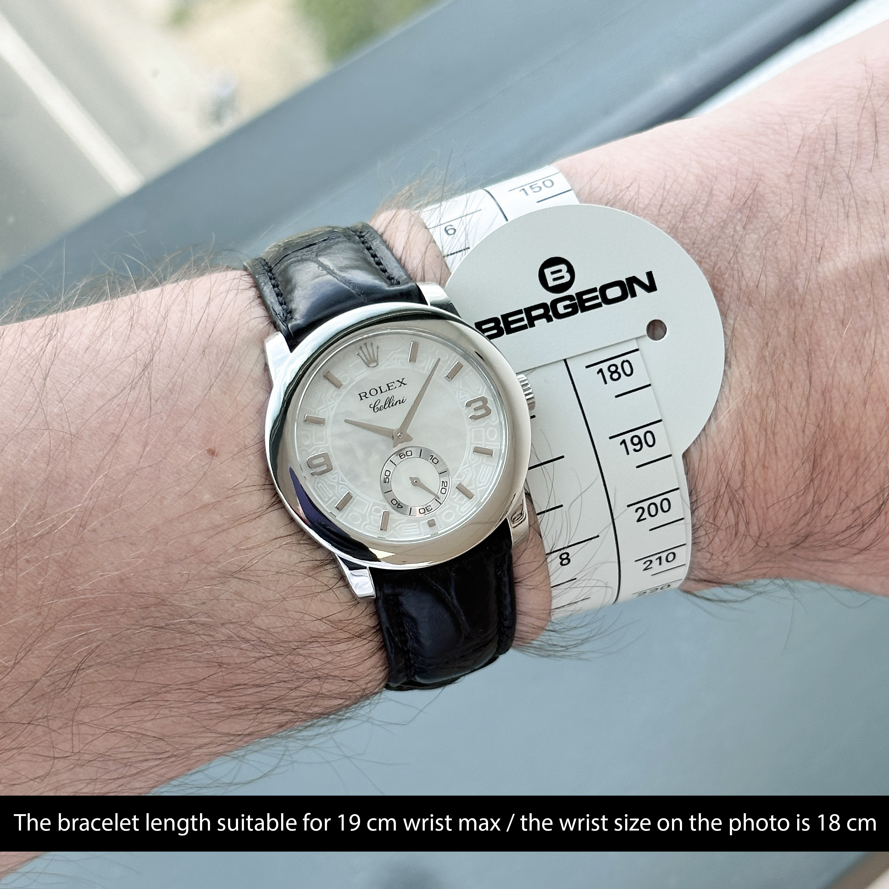 This particular Rolex Cellini Cellinium introduced in 2001, offers a refined expression of the brand’s dress watch heritage. It's white mother-of-pearl dial displays a soft iridescence, complemented by elegant Arabic numerals that add a modern touch to the classic design. Encased in luxurious platinum, this piece reflects quiet prestige and exceptional craftsmanship.