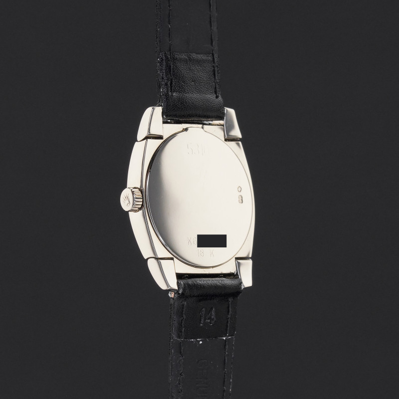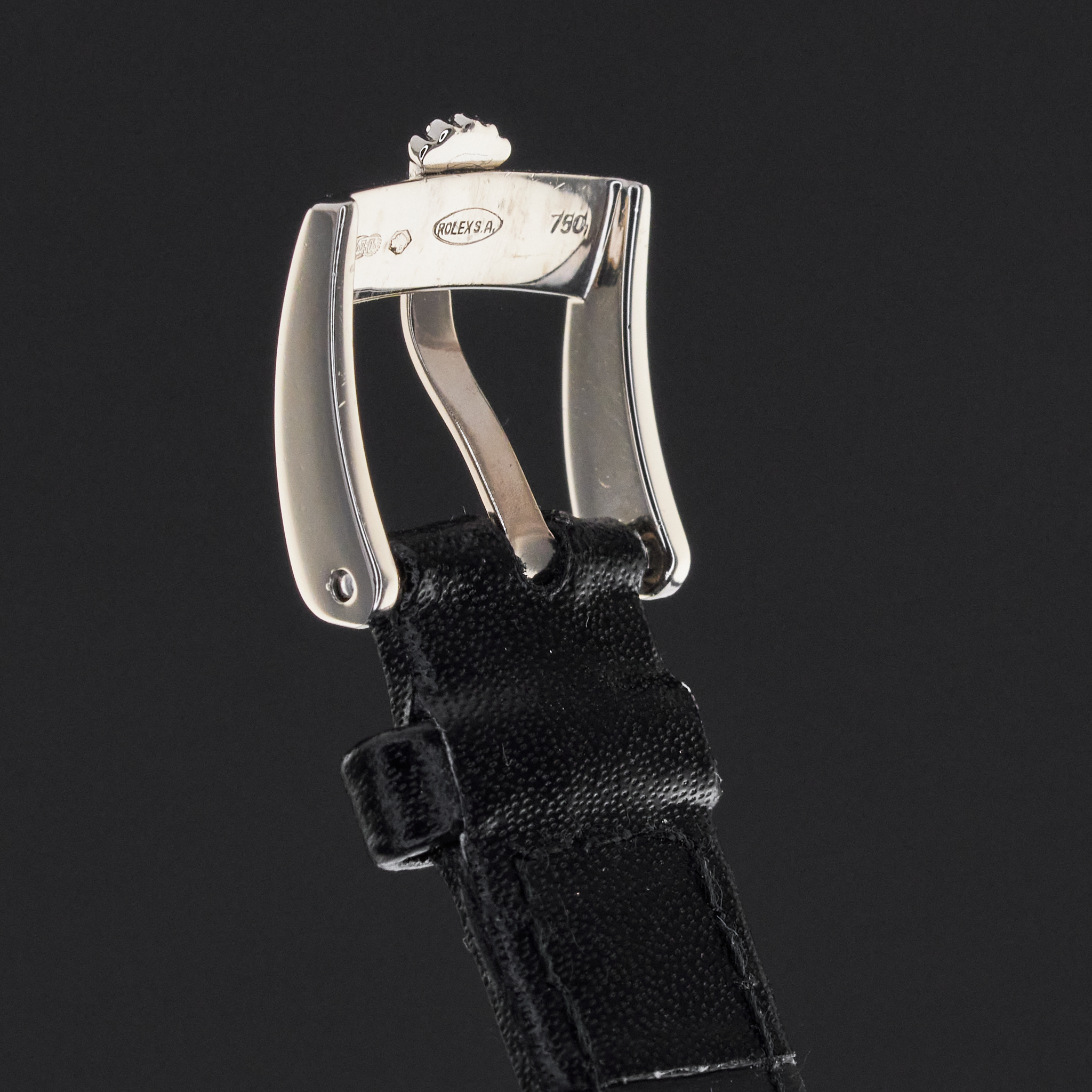 This Rolex Cellini Cestello 5310 features a White Roman dial and is crafted from 18K white gold, with a production year of 2001.