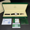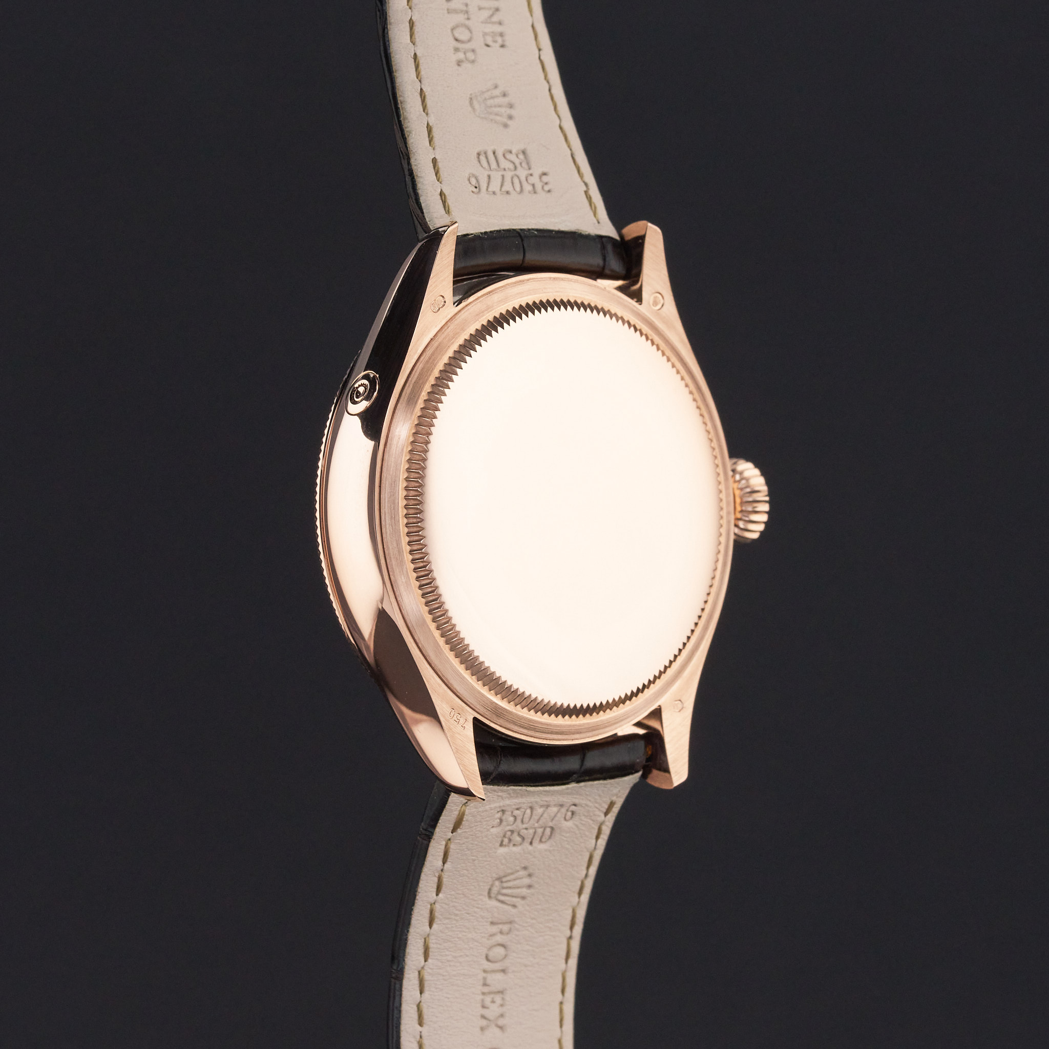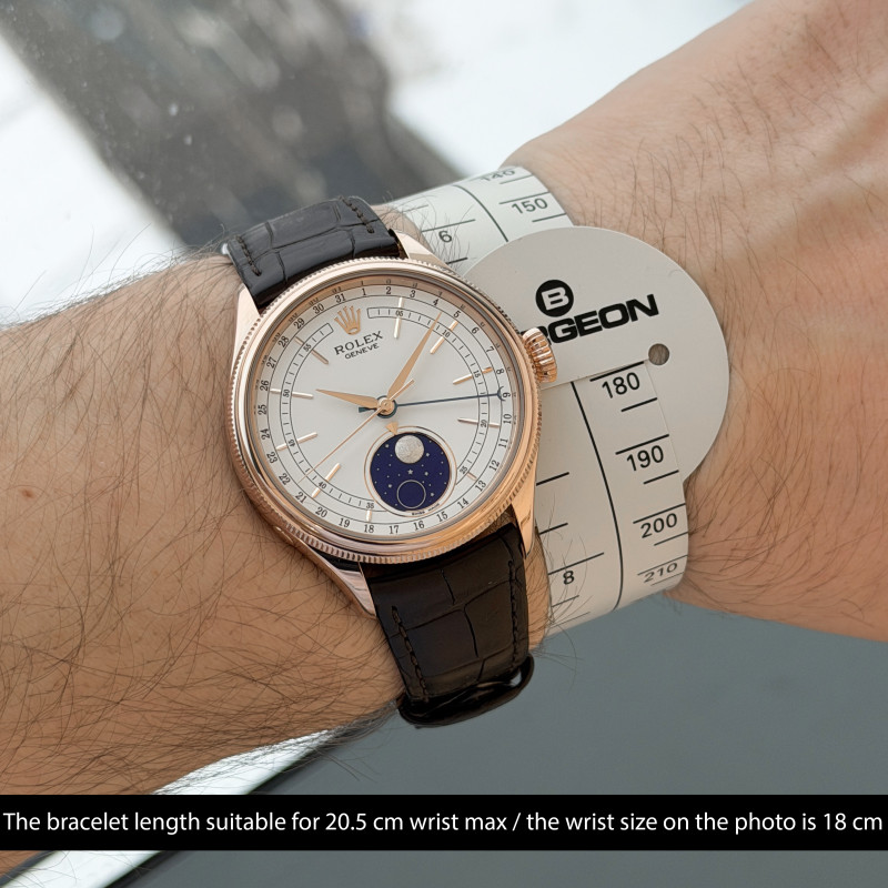 This particular Rolex Cellini Moonphase introduced in 2019, is a refined expression of classic watchmaking infused with poetic charm. The clean white dial provides a serene backdrop for the beautifully detailed moonphase display, adding depth and emotion to the design. Elegant and harmonious, the watch reflects a balance between traditional aesthetics and artistic detail.
