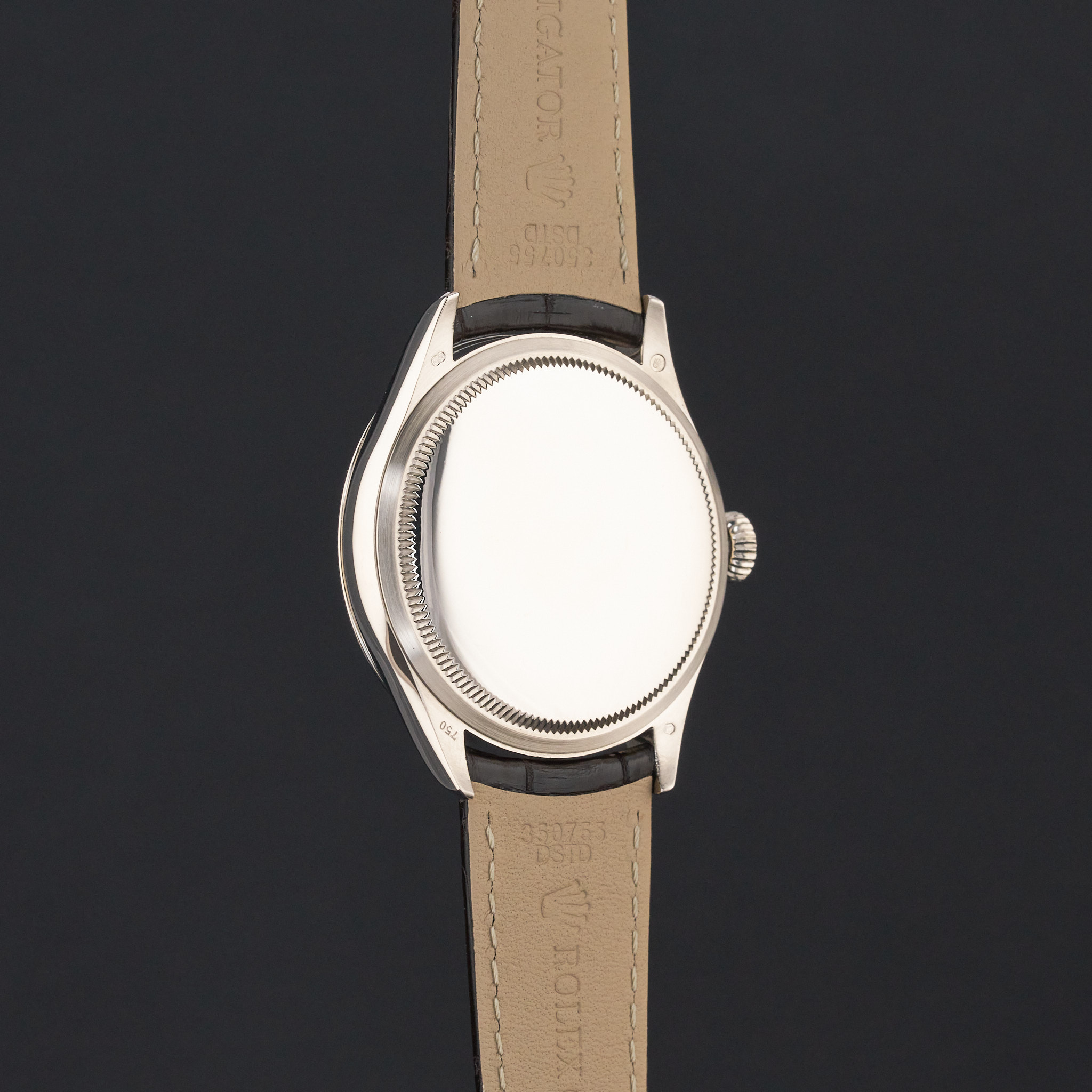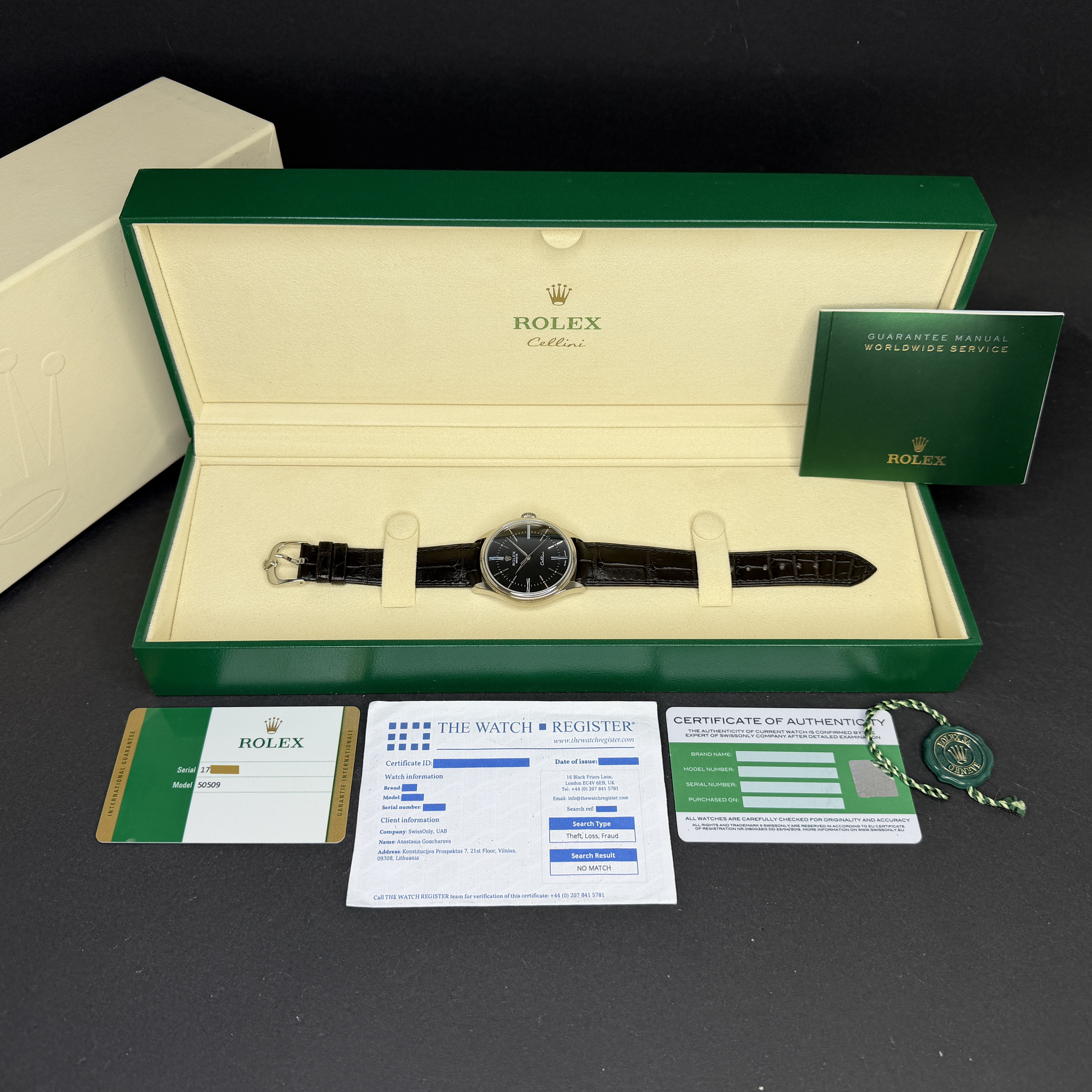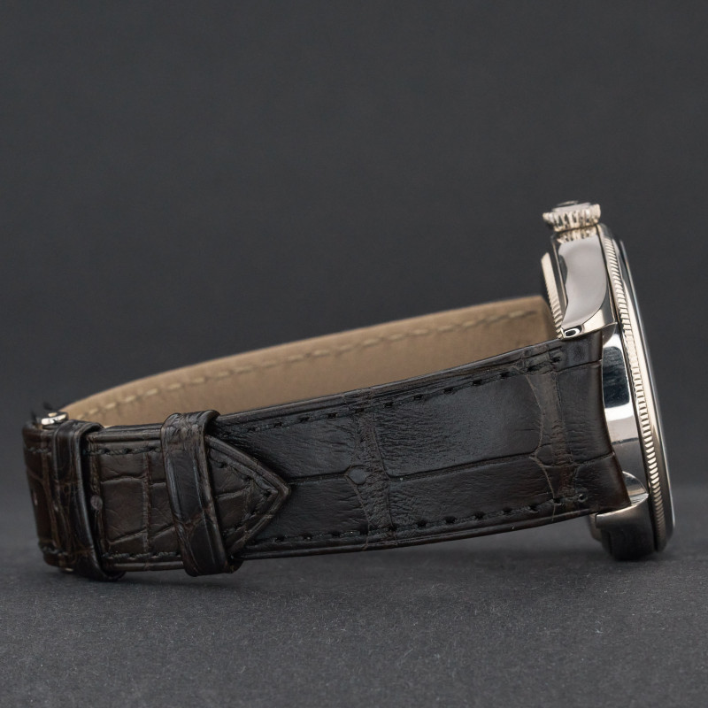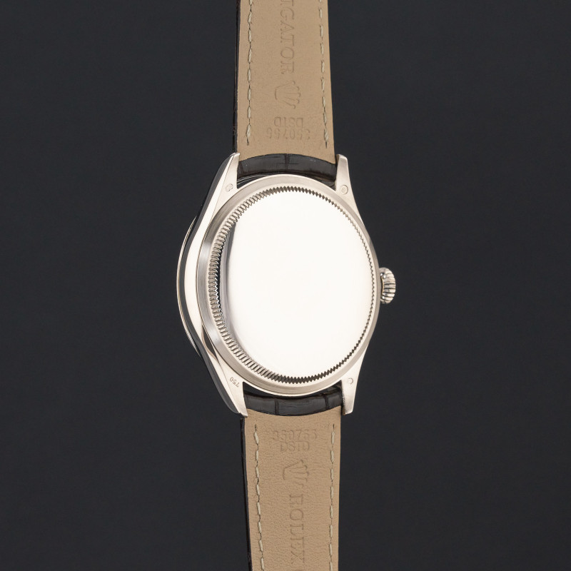 This Rolex Cellini Time 50509 features a Black Roman dial and is crafted from 18K white gold, with a production year of 2018.