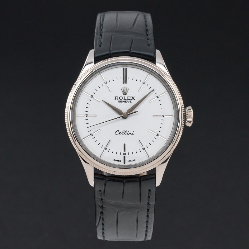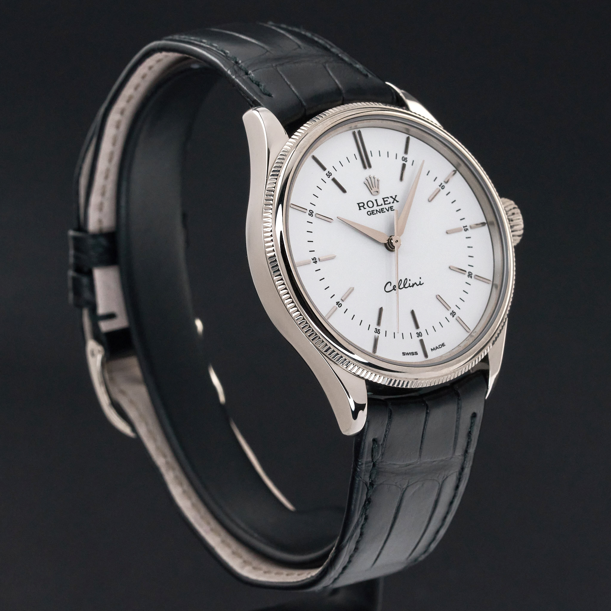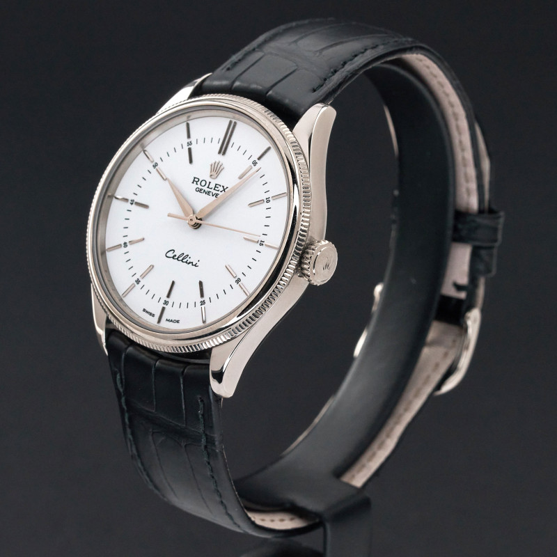This Rolex Cellini Time 50509 features a White dial and is crafted from 18K white gold, with a production year of 2018.