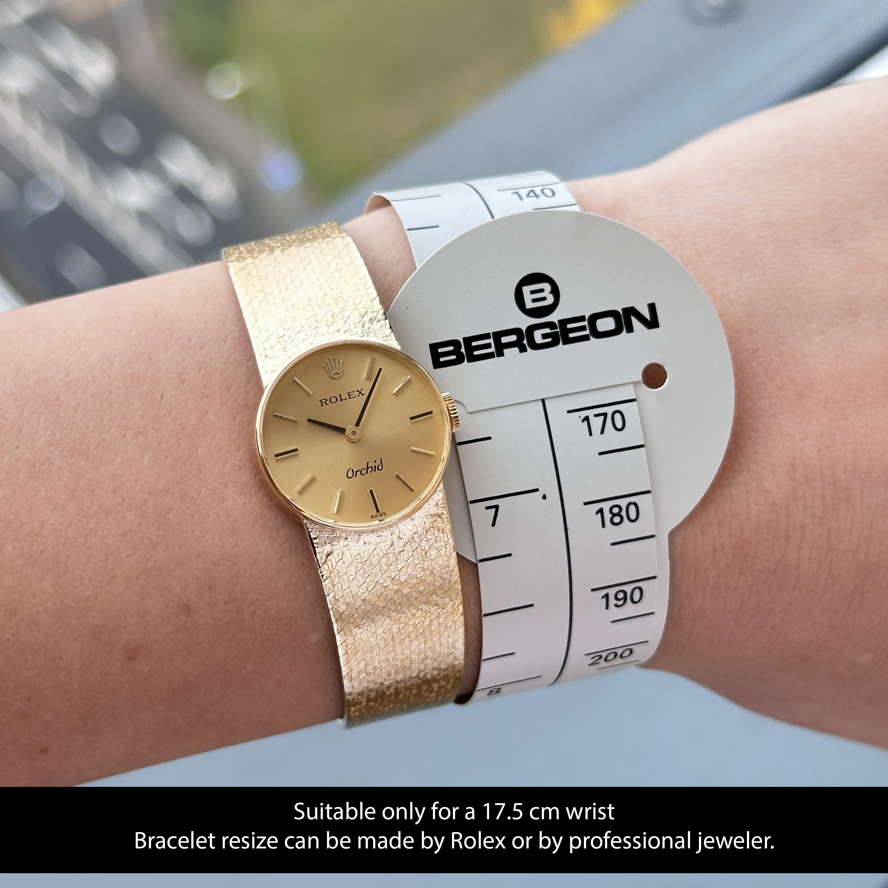Suitable only for a 17,5 cm wrist. Bracelet resize can be made by Rolex or by professional jeweler.