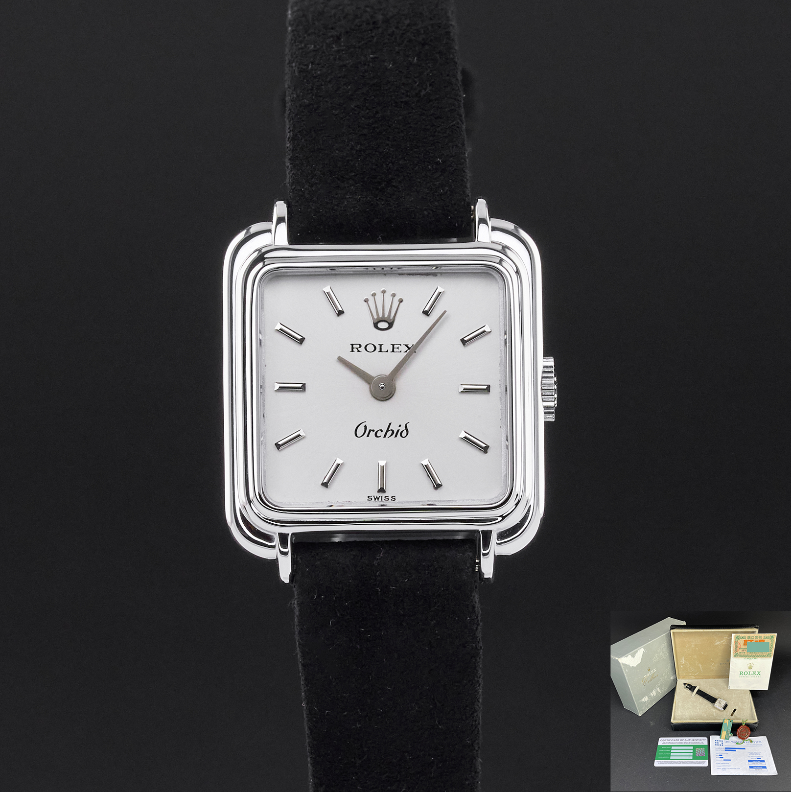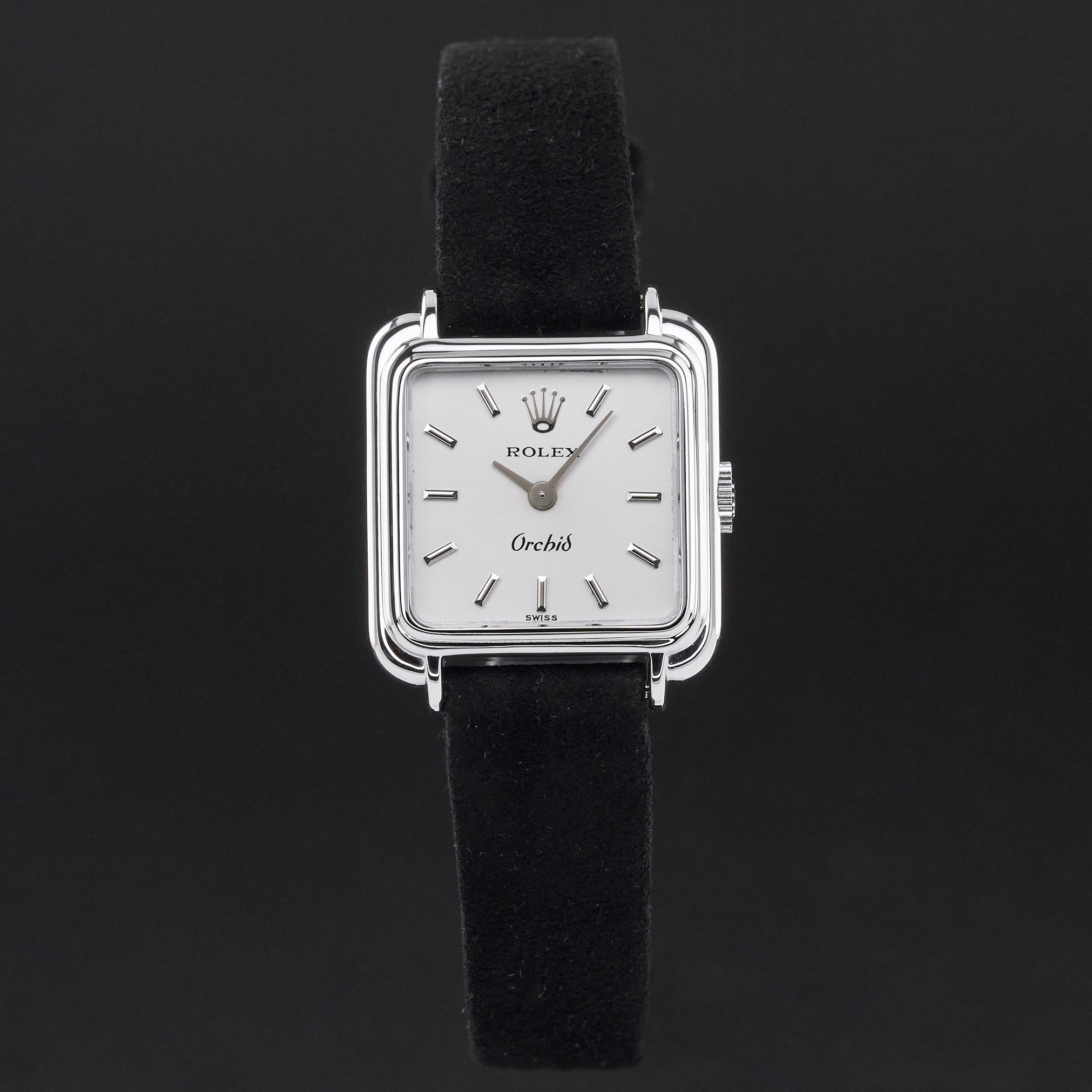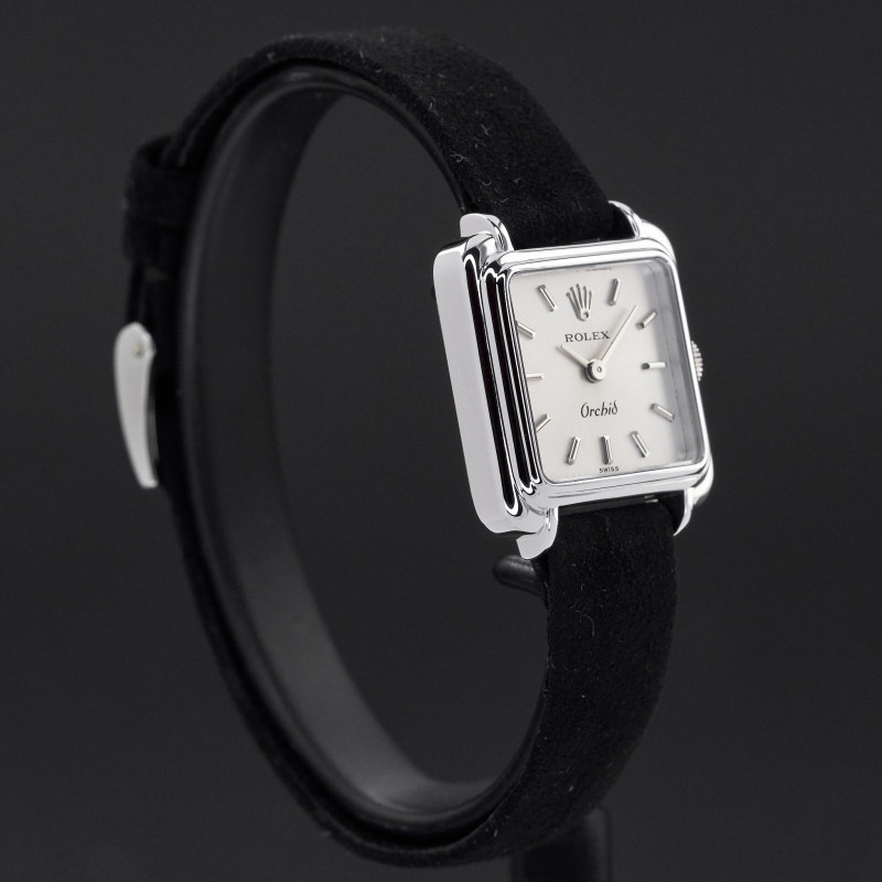 This Rolex Orchid 2682 features a Silver dial and is crafted from 18K white gold, with a production year of 1976.
