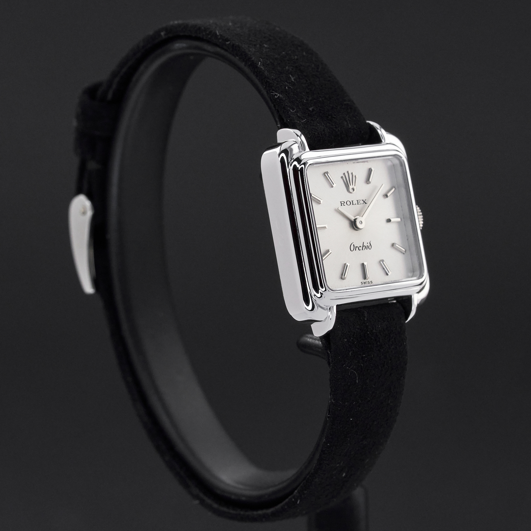 This particular Rolex Orchid introduced in 1976, is a graceful expression of vintage femininity. With it's petite case and minimalist silver dial, it embodies understated charm and refined elegance. Designed in an era when elegance was measured in subtlety, this timepiece stands out for its delicate proportions and timeless simplicity.