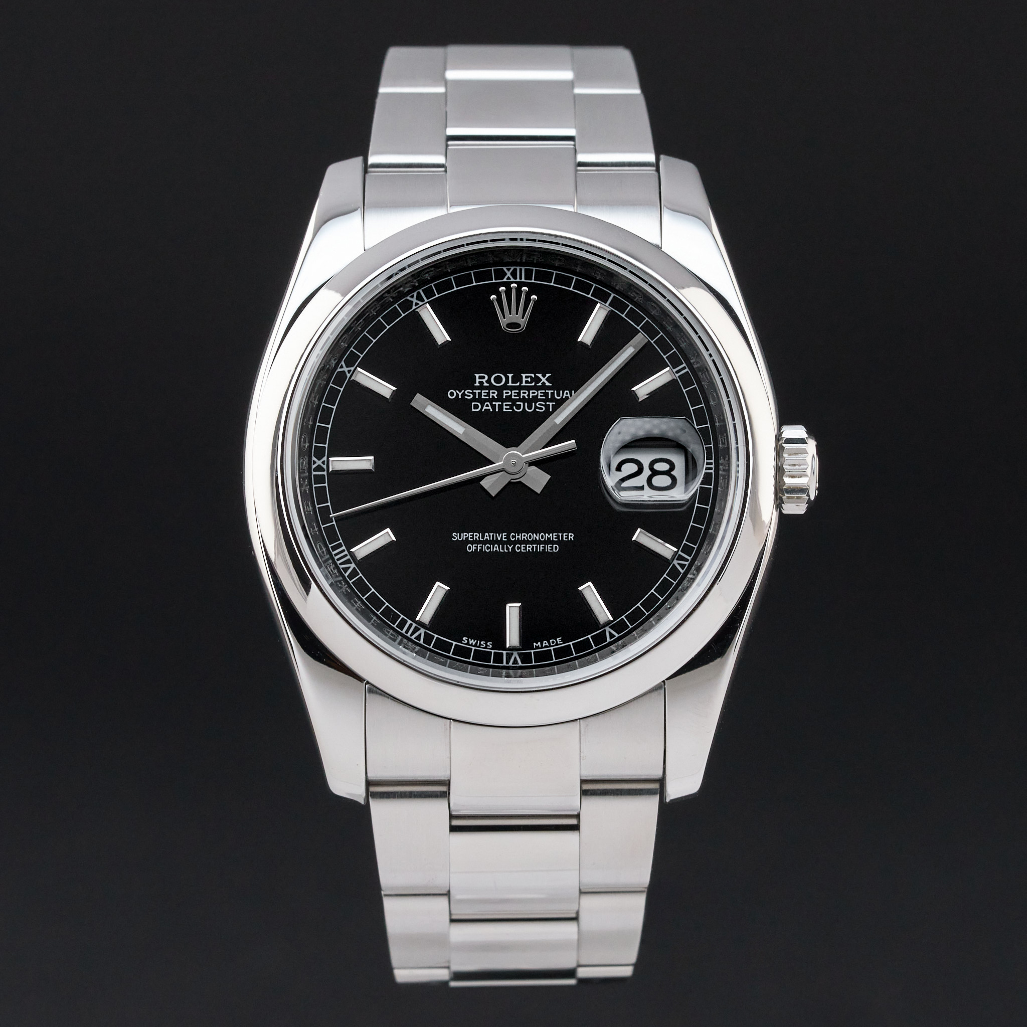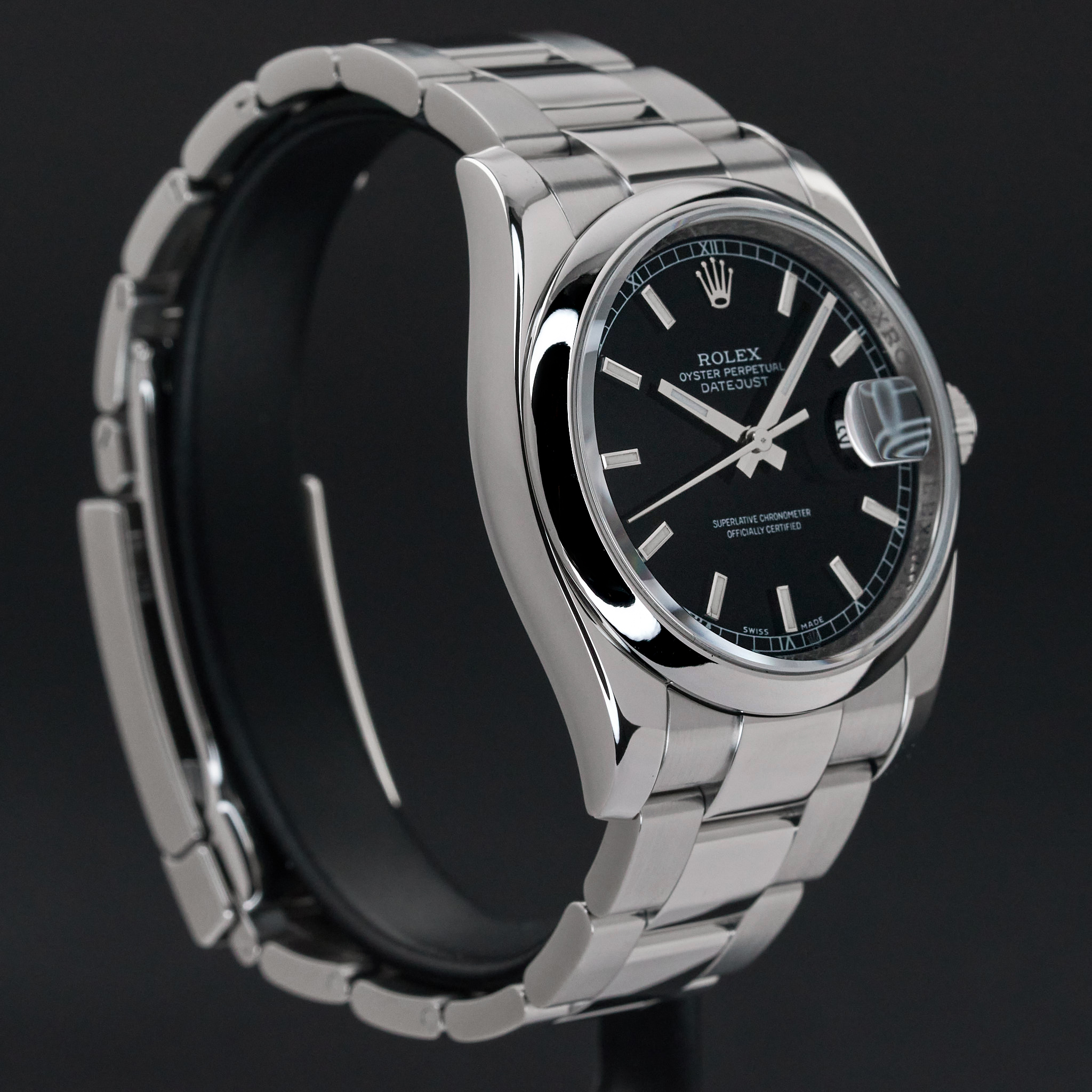 This Rolex Datejust 116200 features a Black dial and is crafted from stainless steel, with a production year of 2011.