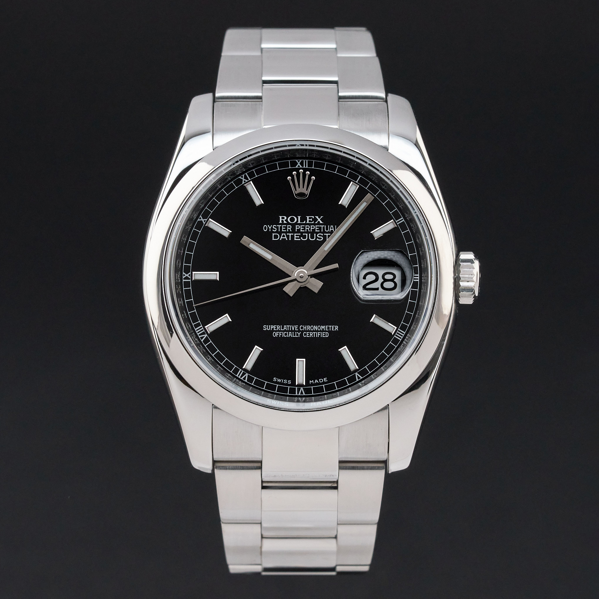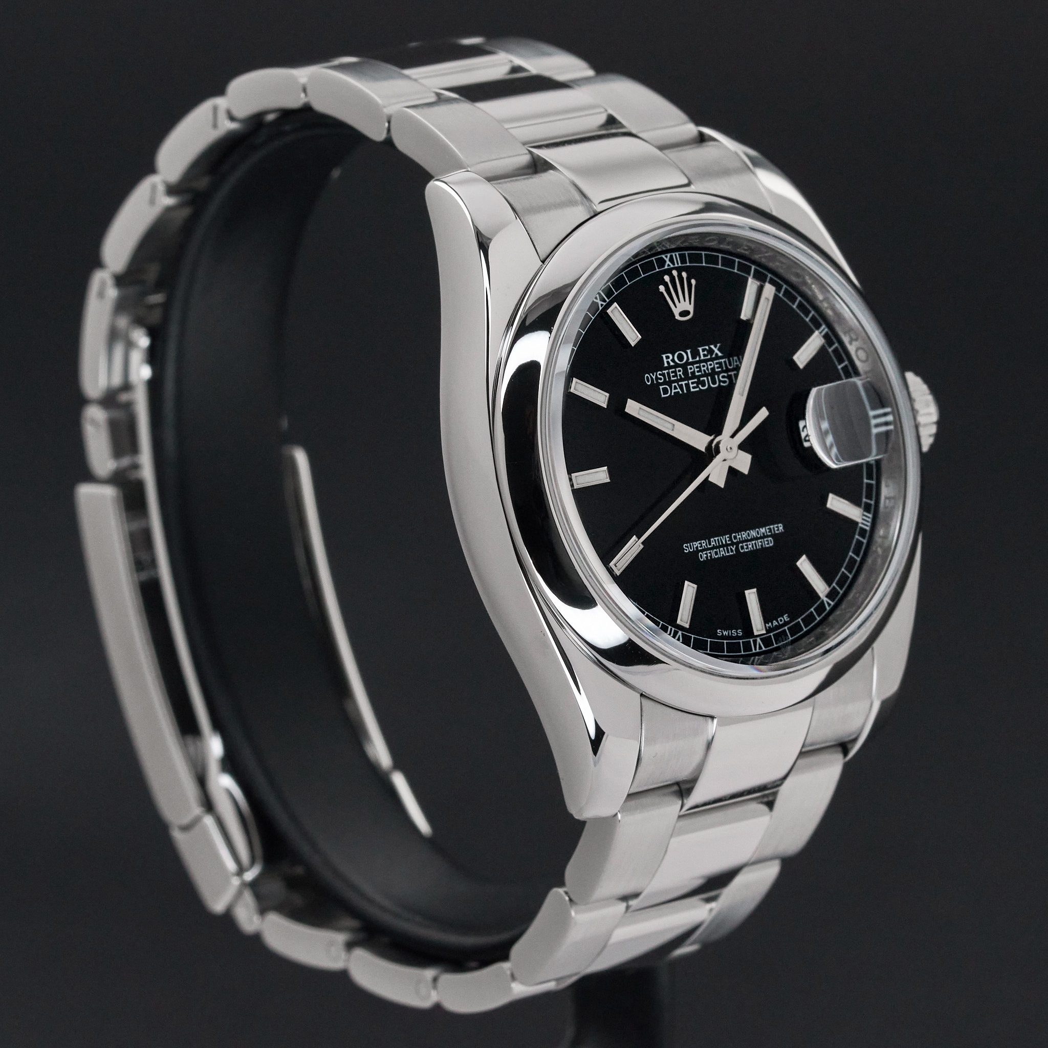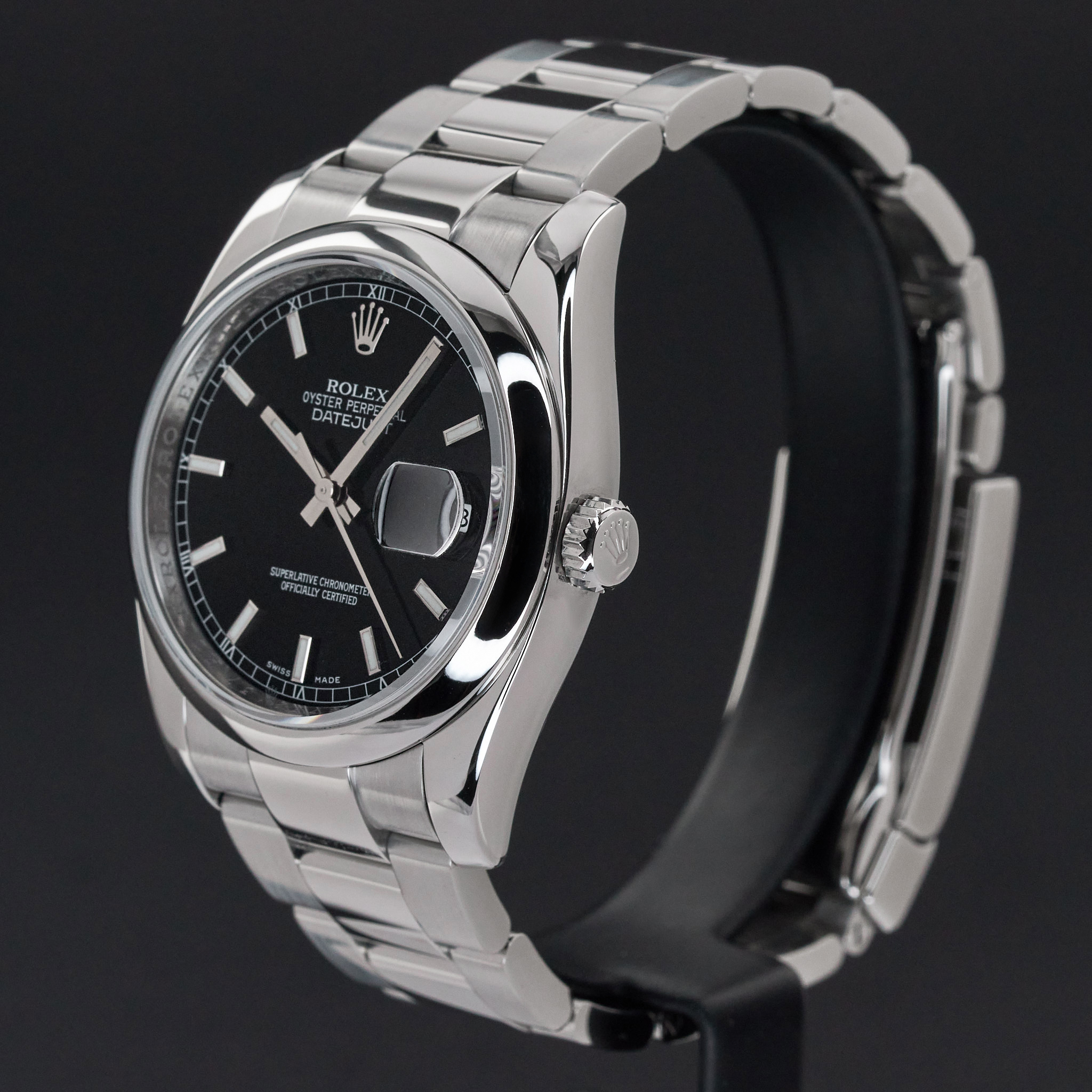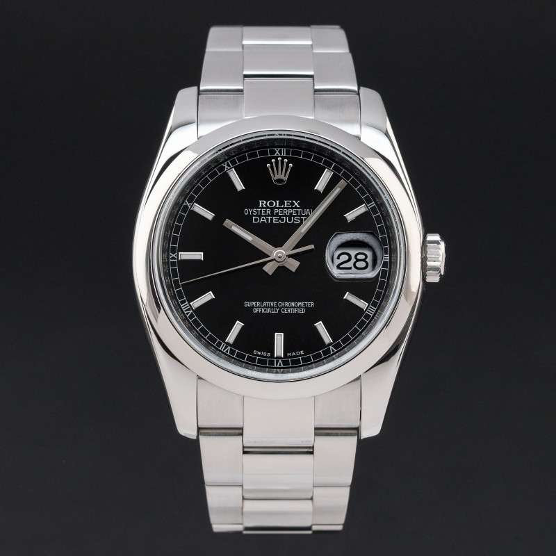 This Rolex Datejust 116200 features a Black dial and is crafted from stainless steel, with a production year of 2013.