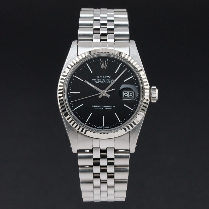 This Rolex Datejust 16014 features a Black dial and is crafted from stainless steel, with a production year of 1986.