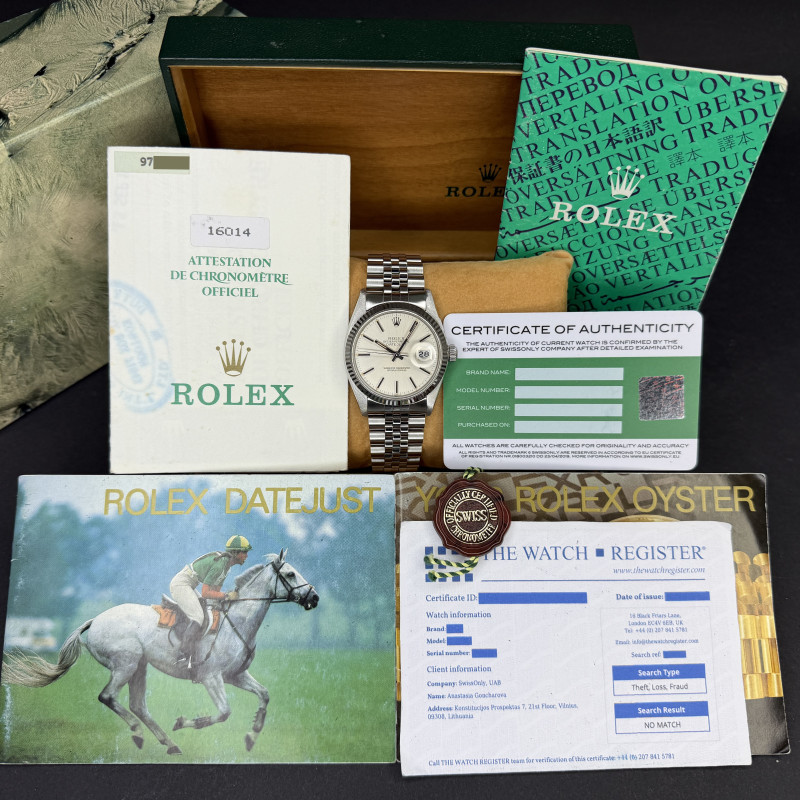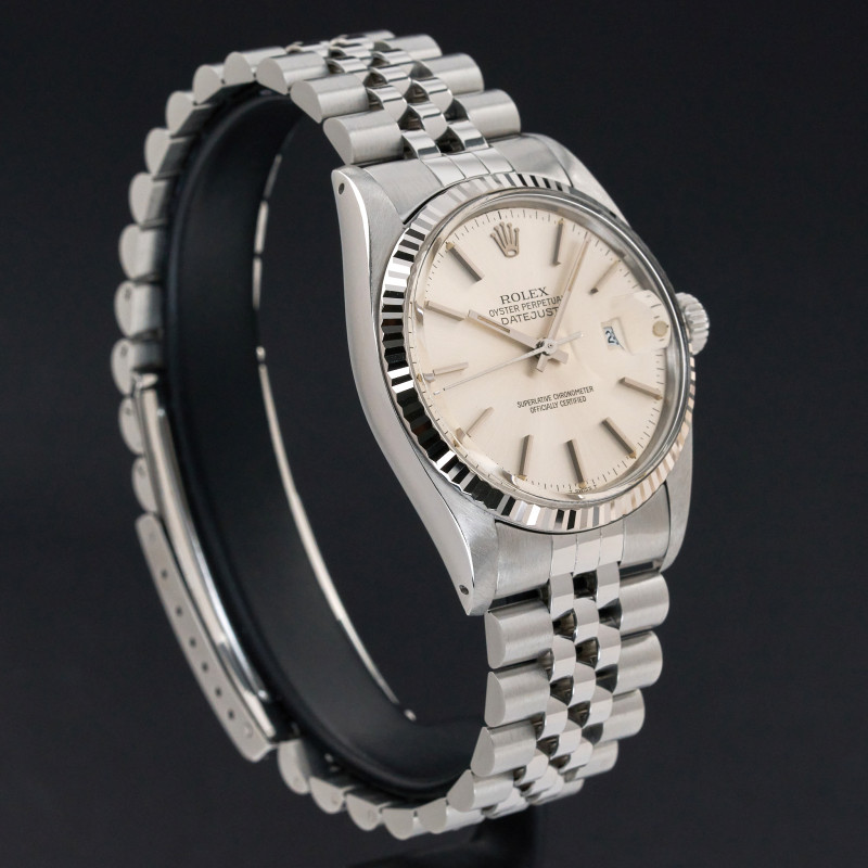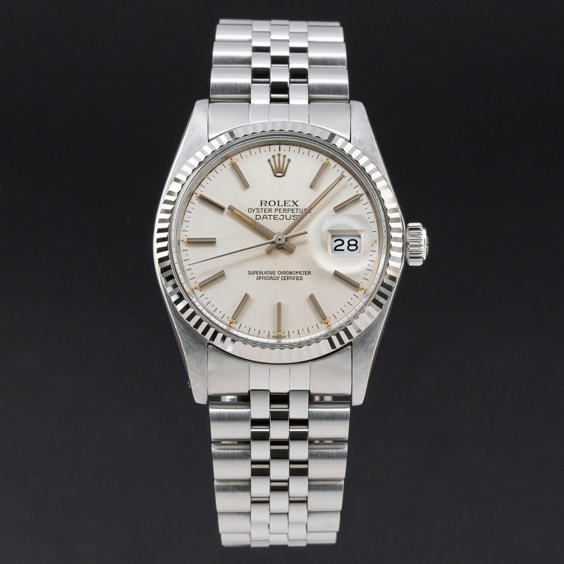 This Rolex Datejust 16014 features a Silver dial and is crafted from stainless steel, with a production year of 1987.