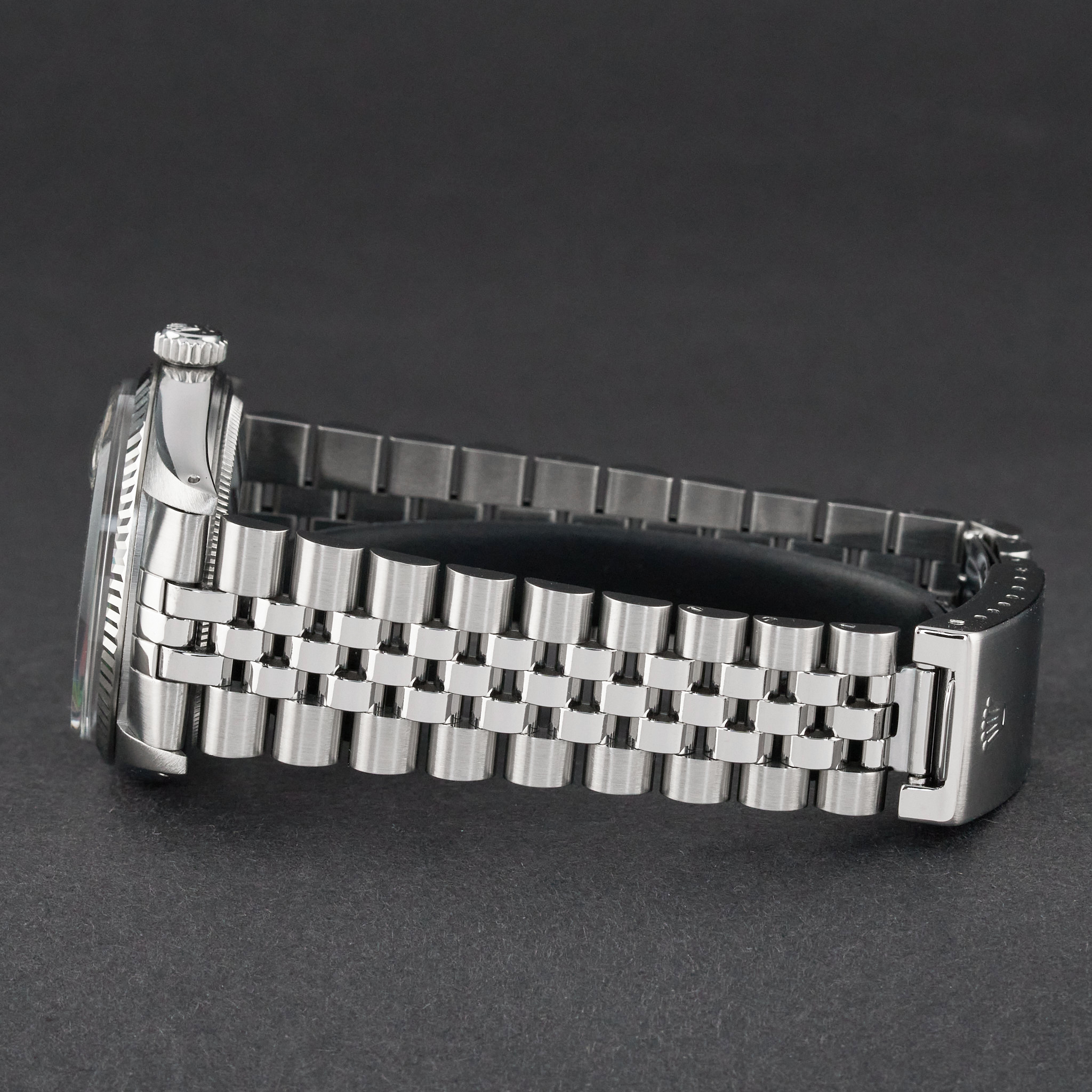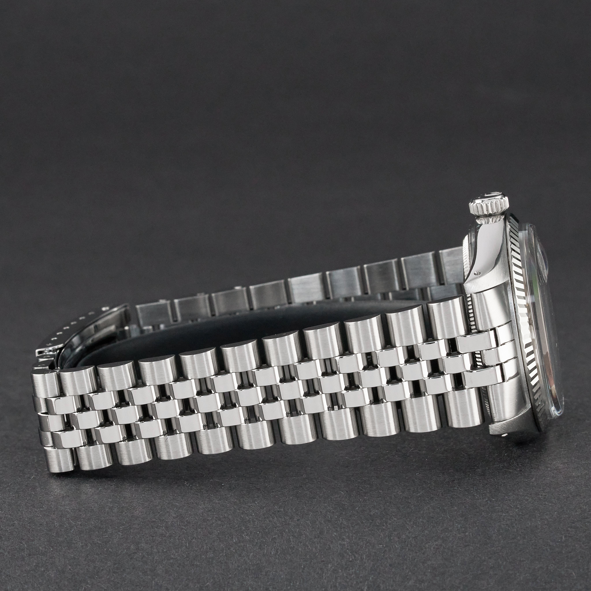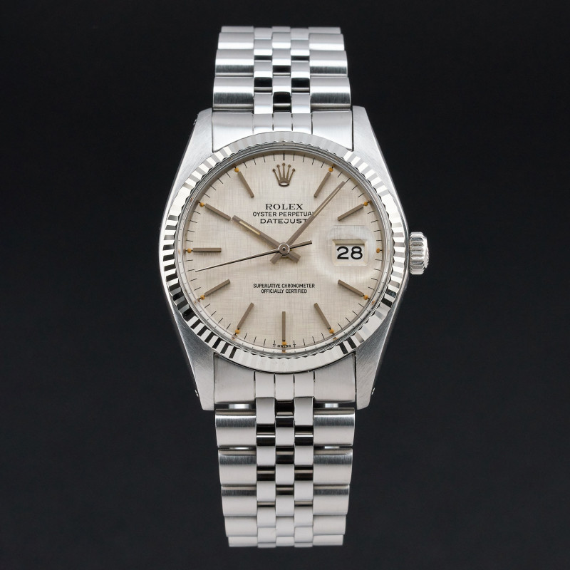 This Rolex Datejust 16014 features a Silver Linen dial and is crafted from stainless steel, with a production year of 1987.