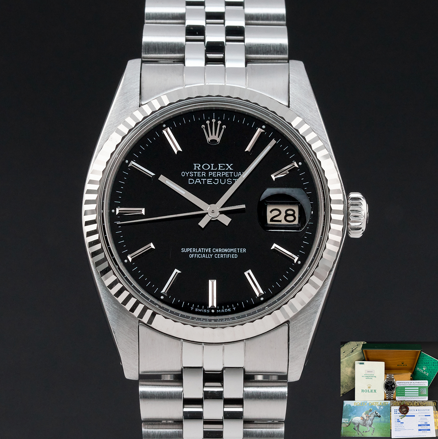 This Rolex Datejust 16014 features a Black dial and is crafted from stainless steel, with a production year of 1988.