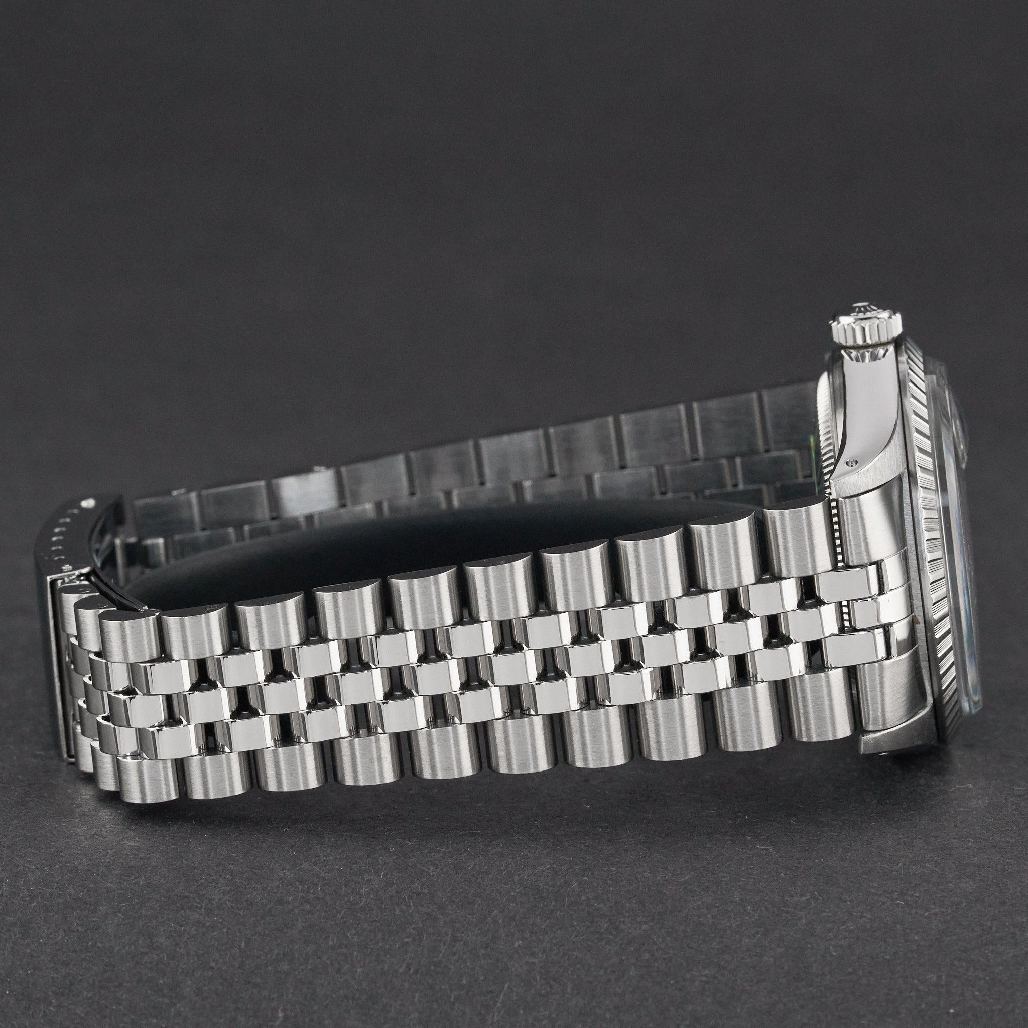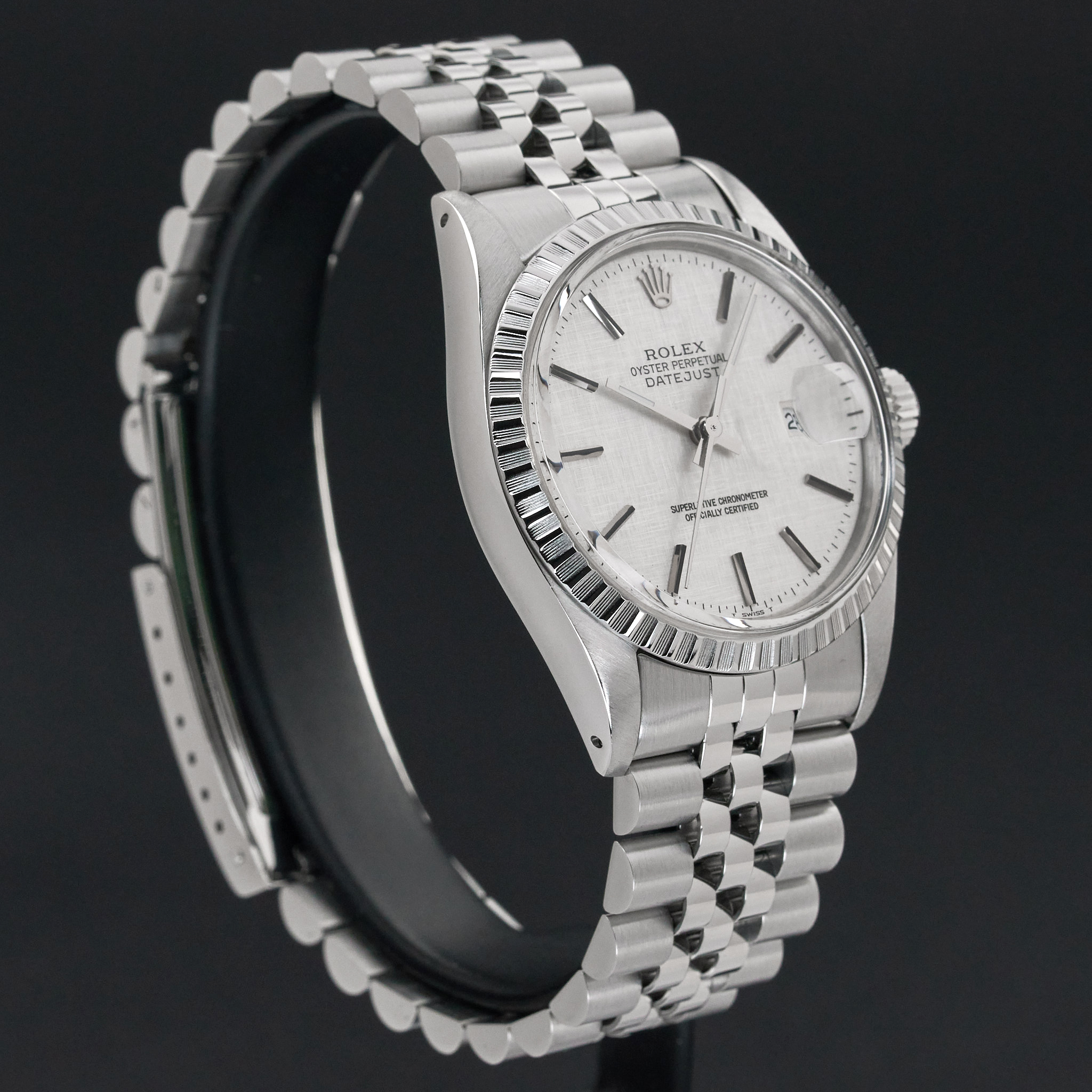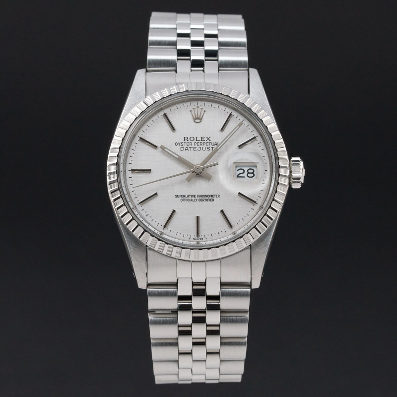 This Rolex Datejust 16030 features a Silver linen dial and is crafted from stainless steel, with a production year of 1986.