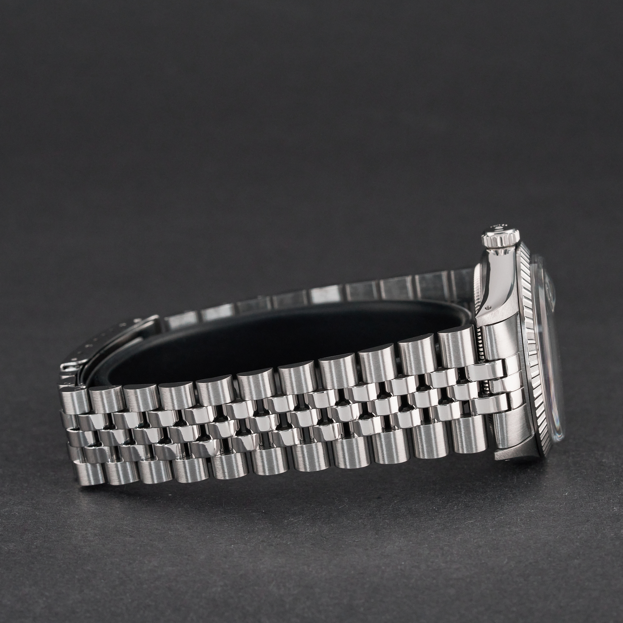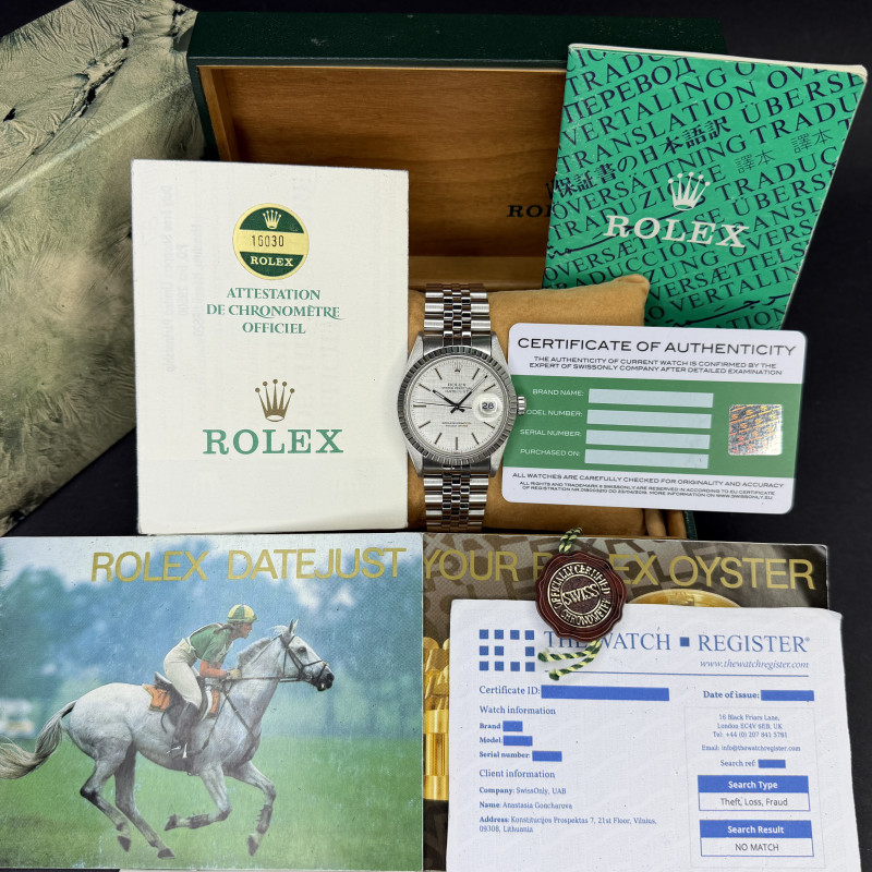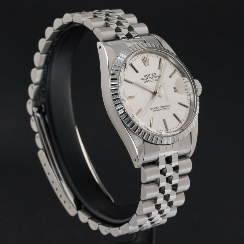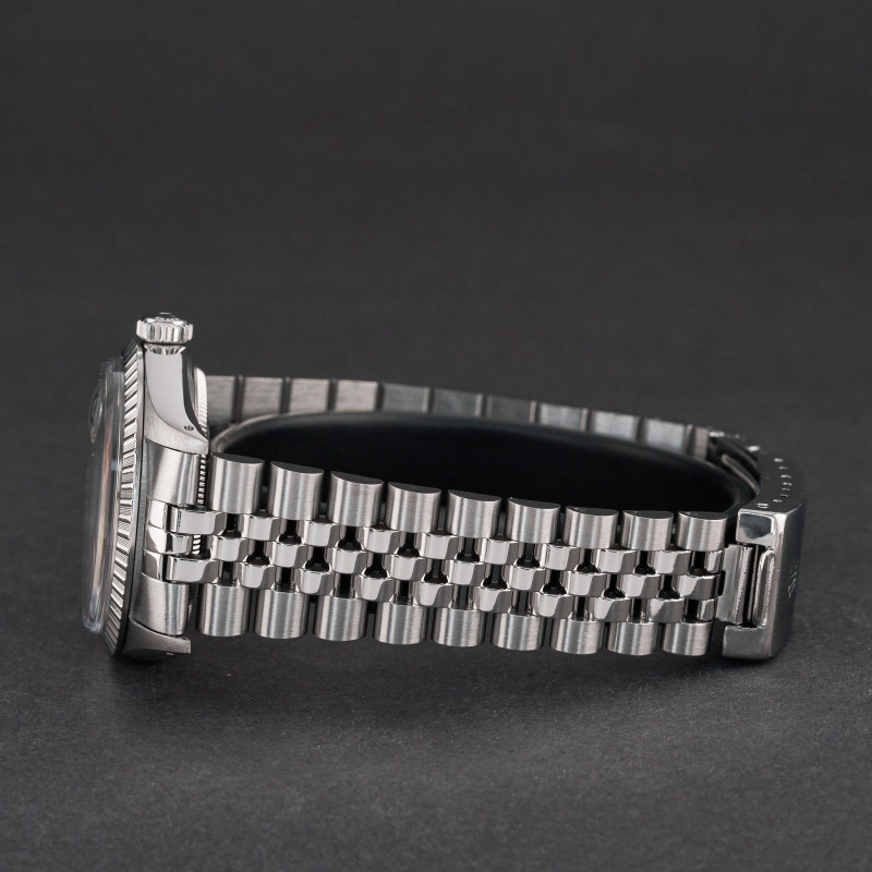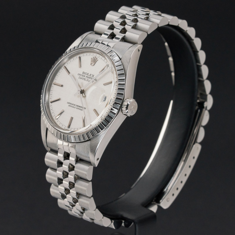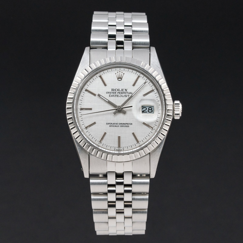 This Rolex Datejust 16030 features a Silver linen dial and is crafted from stainless steel, with a production year of 1986.