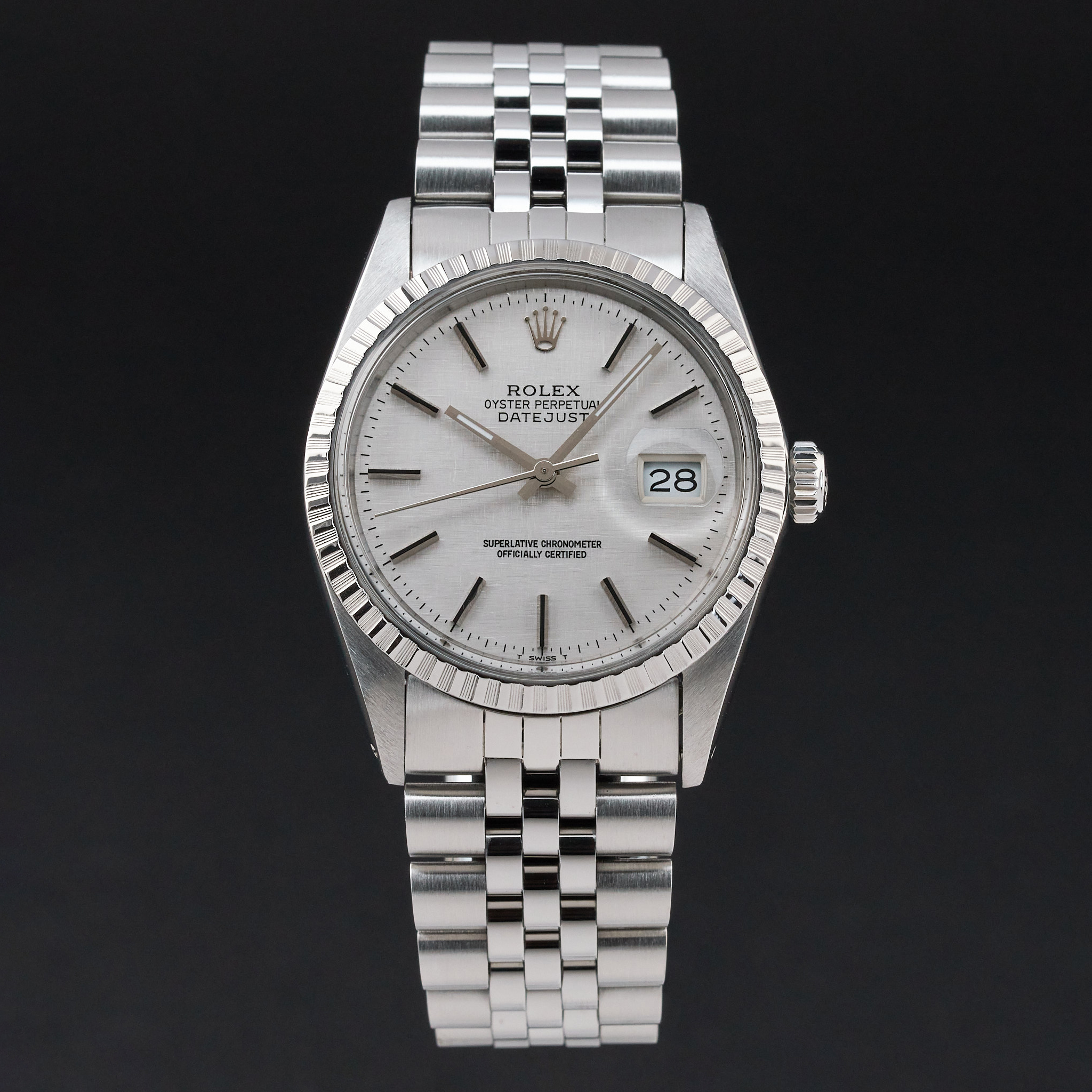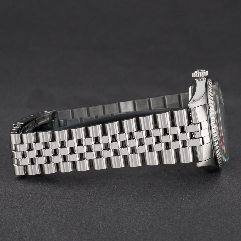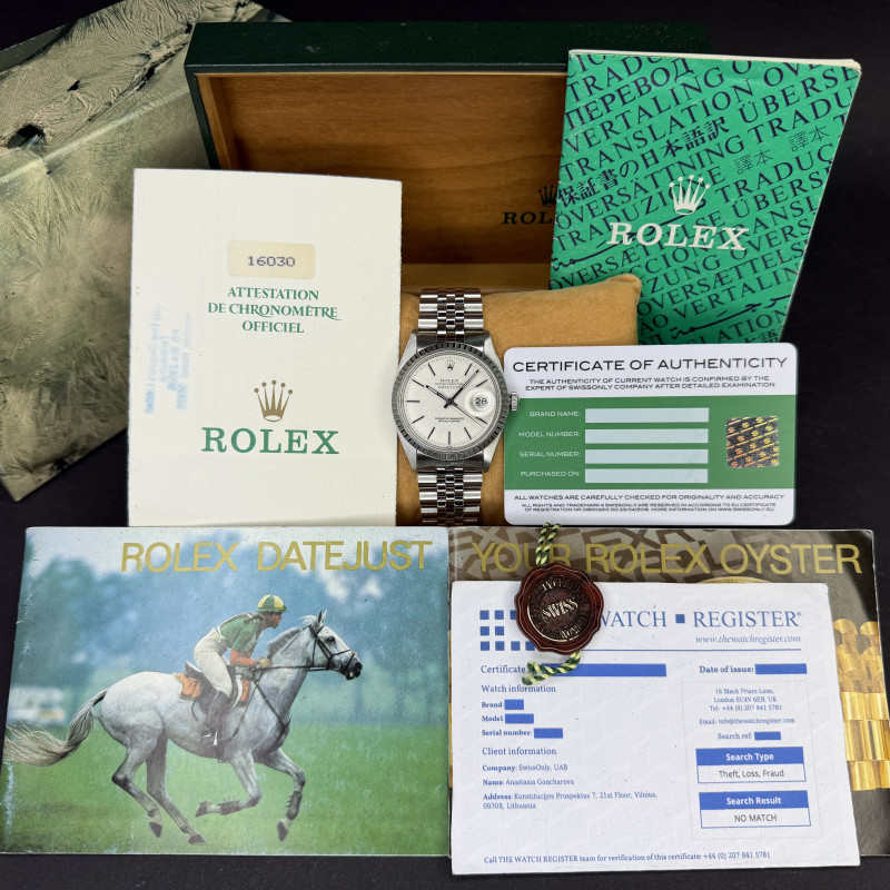 This Rolex Datejust 16030 features a Silver linen dial and is crafted from stainless steel, with a production year of 1988.