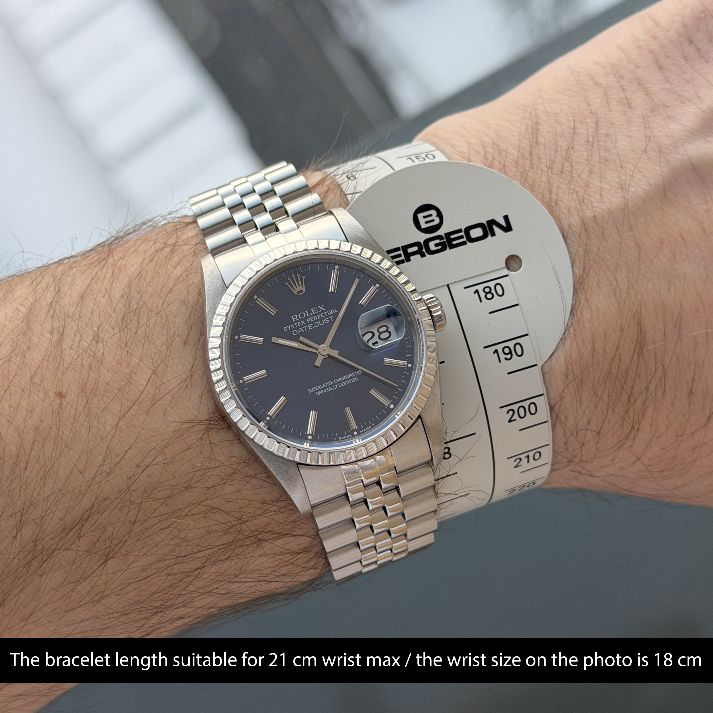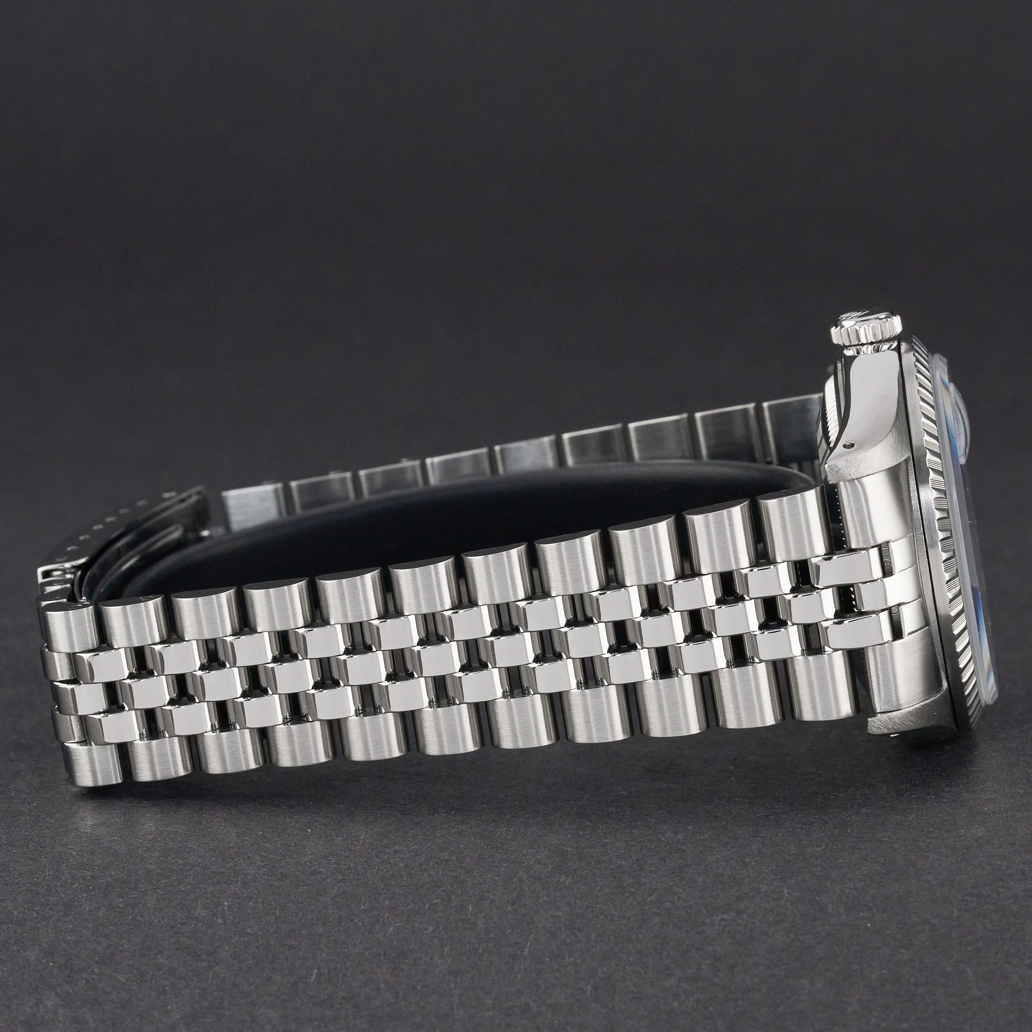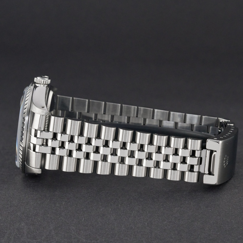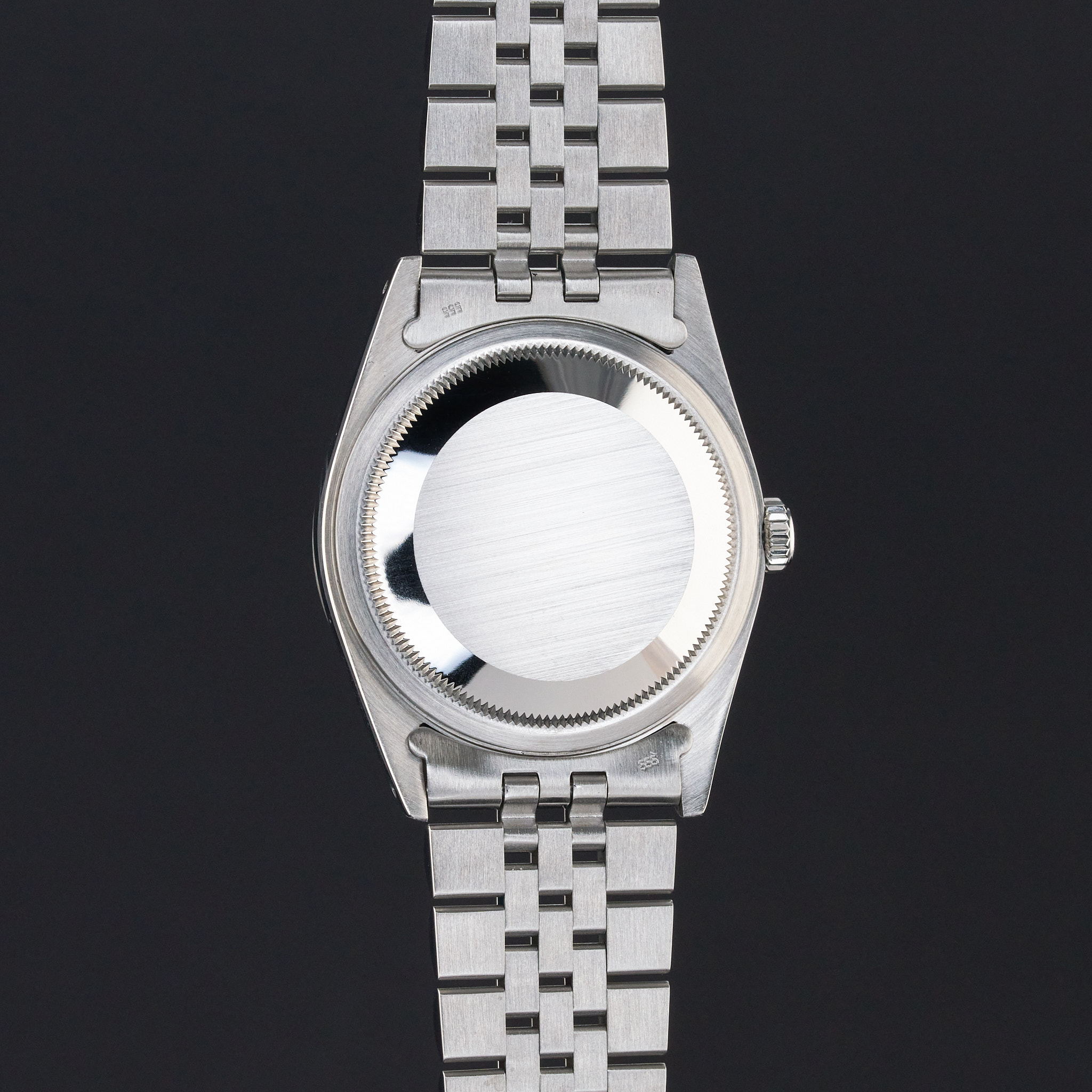 This Rolex Datejust 16220 features a Blue dial and is crafted from stainless steel, with a production year of 1988.