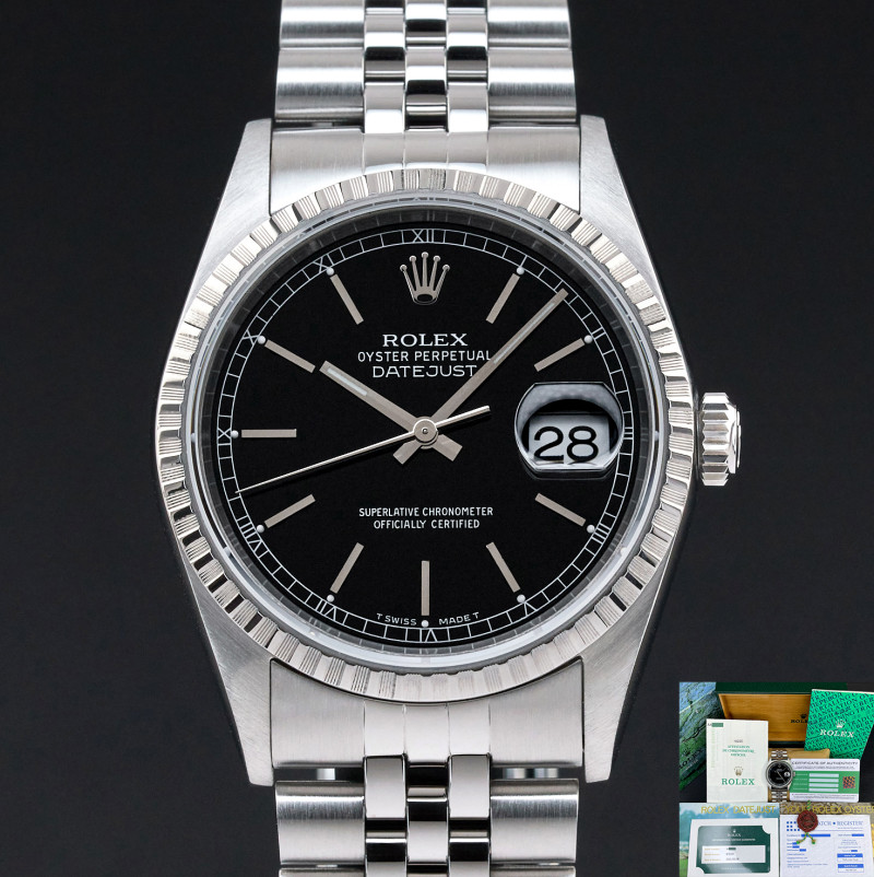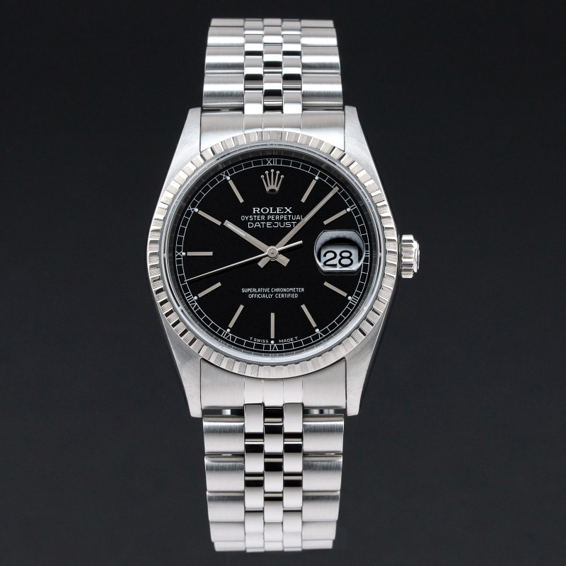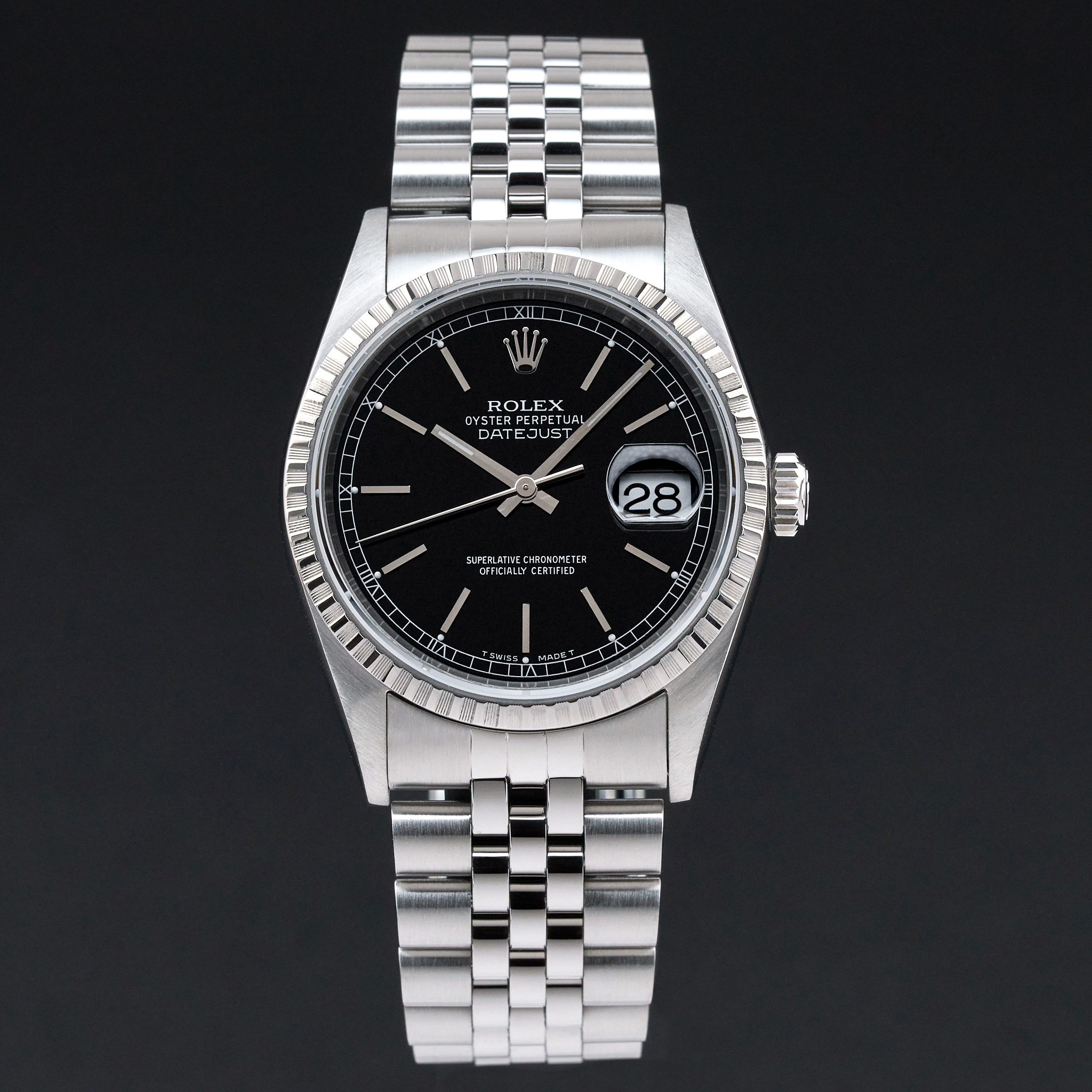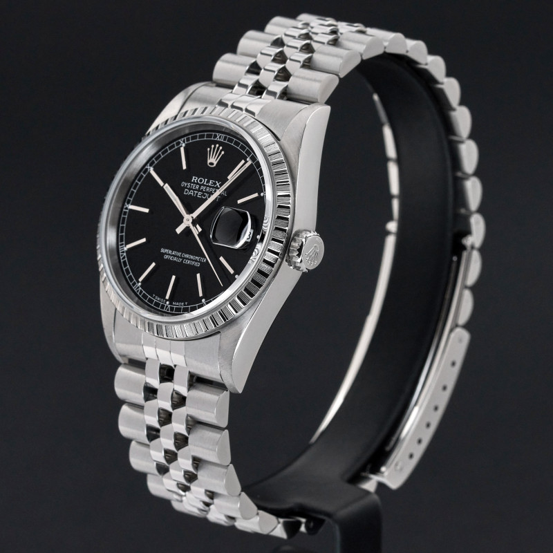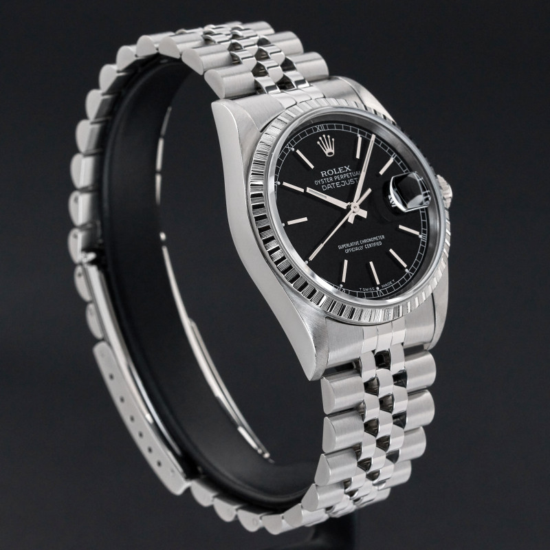 This Rolex Datejust 16220 features a Black dial and is crafted from stainless steel, with a production year of 1999.
