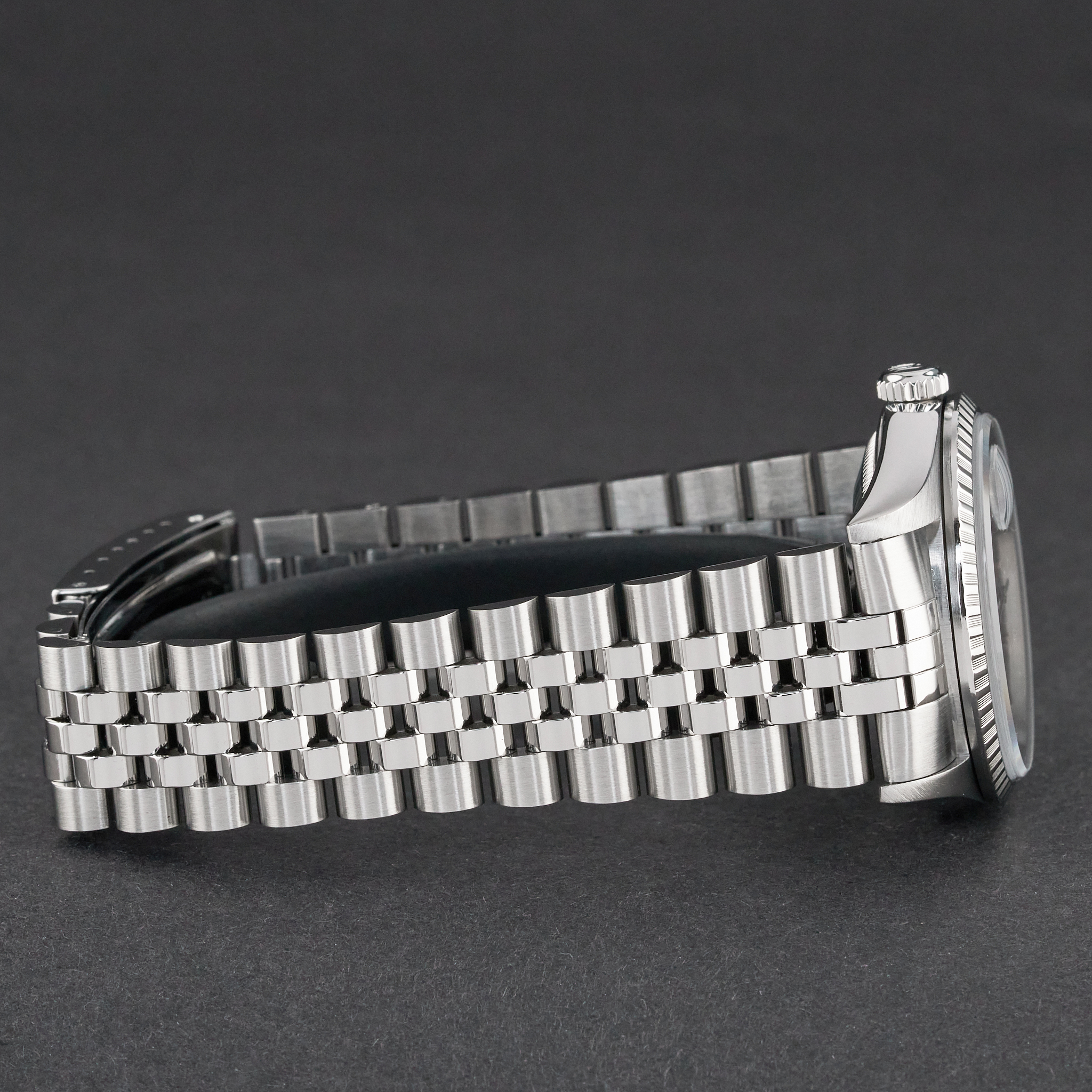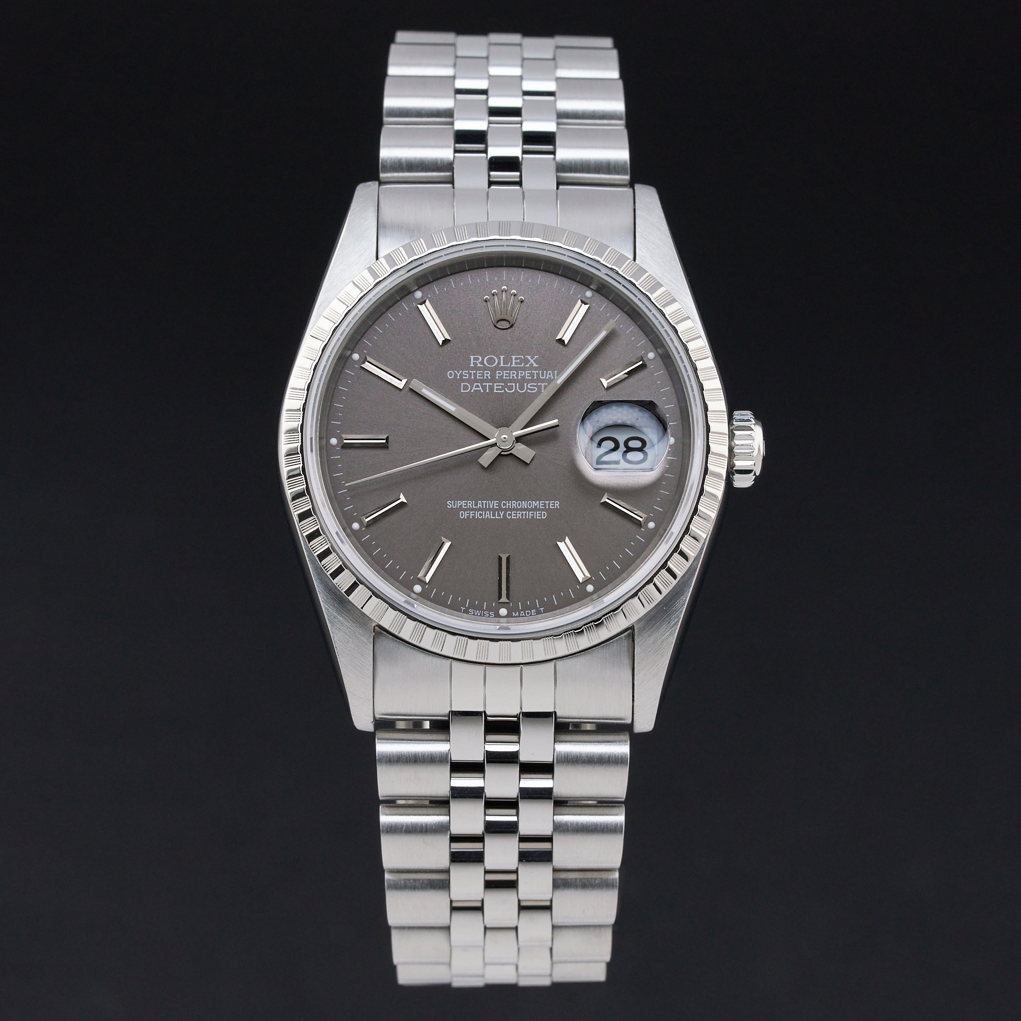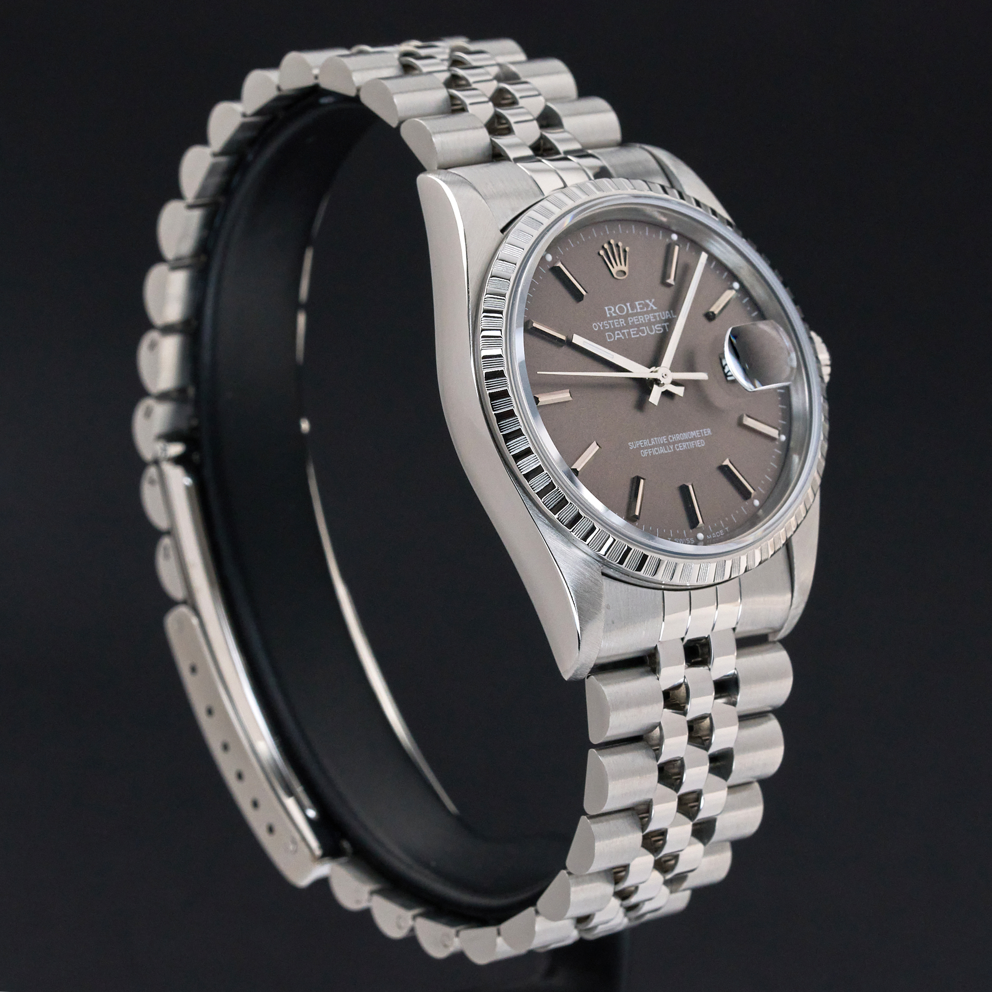 This Rolex Datejust 16220 features a Grey dial and is crafted from stainless steel, with a production year of 1999.