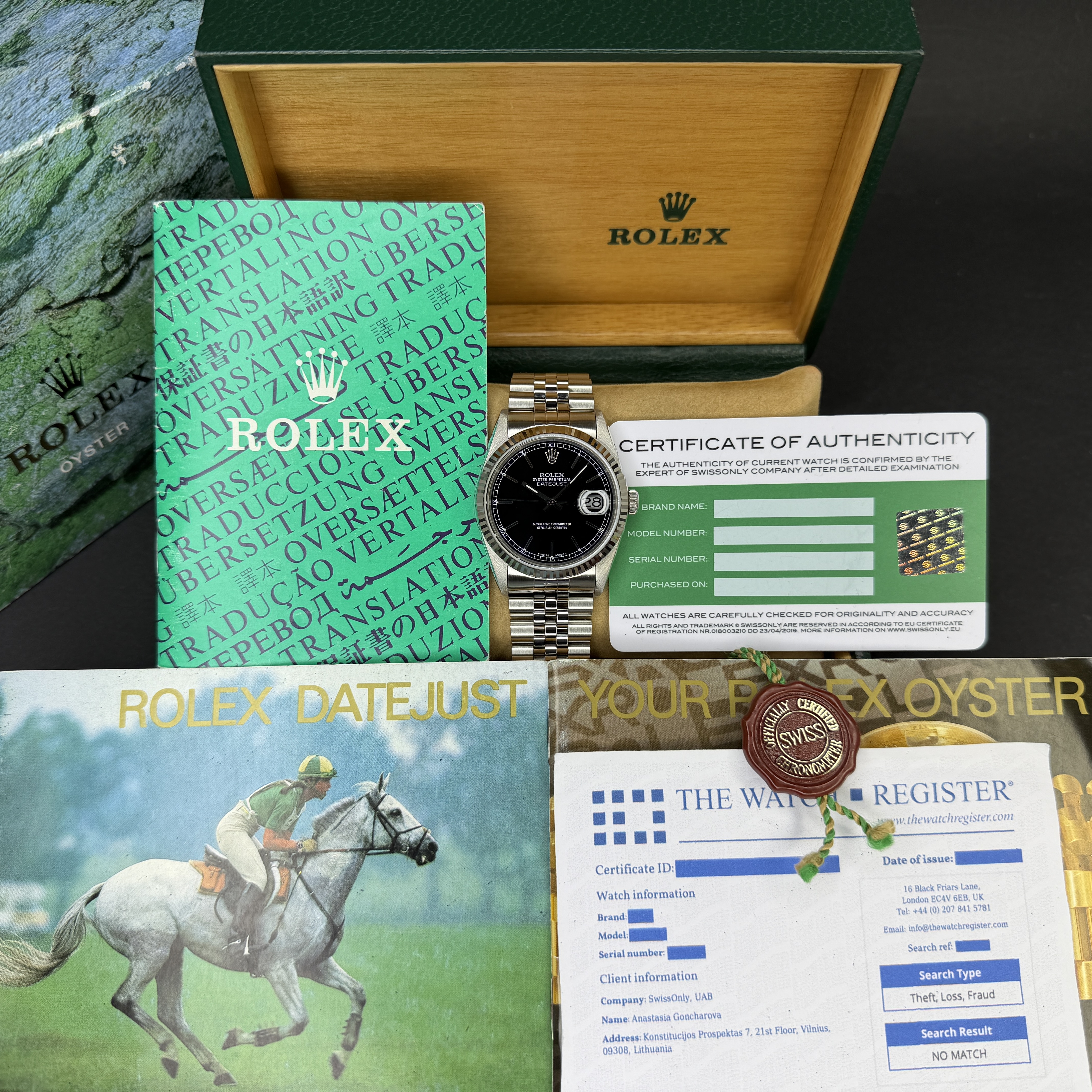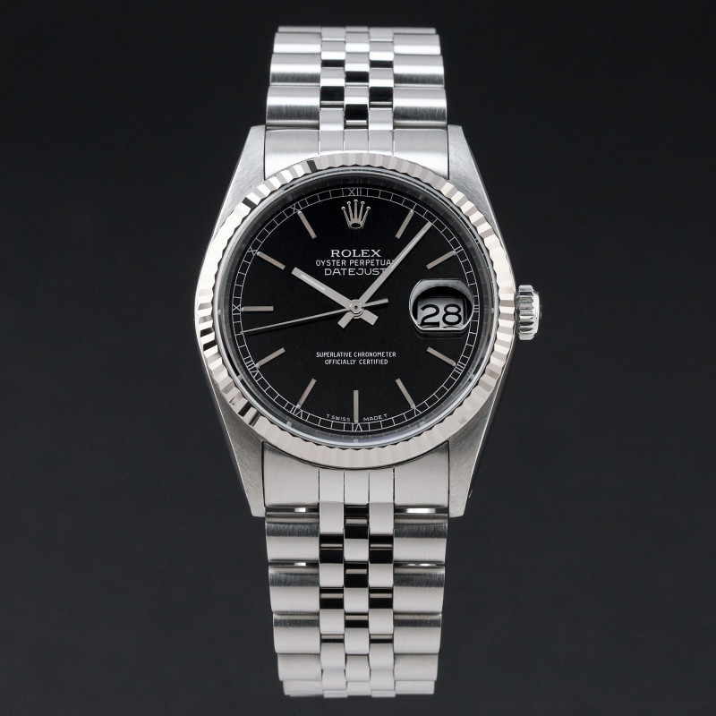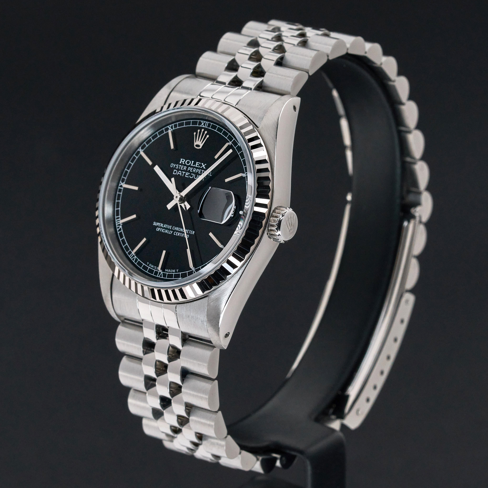 This Rolex Datejust 16234 features a Black dial and is crafted from stainless steel, with a production year of 1991.