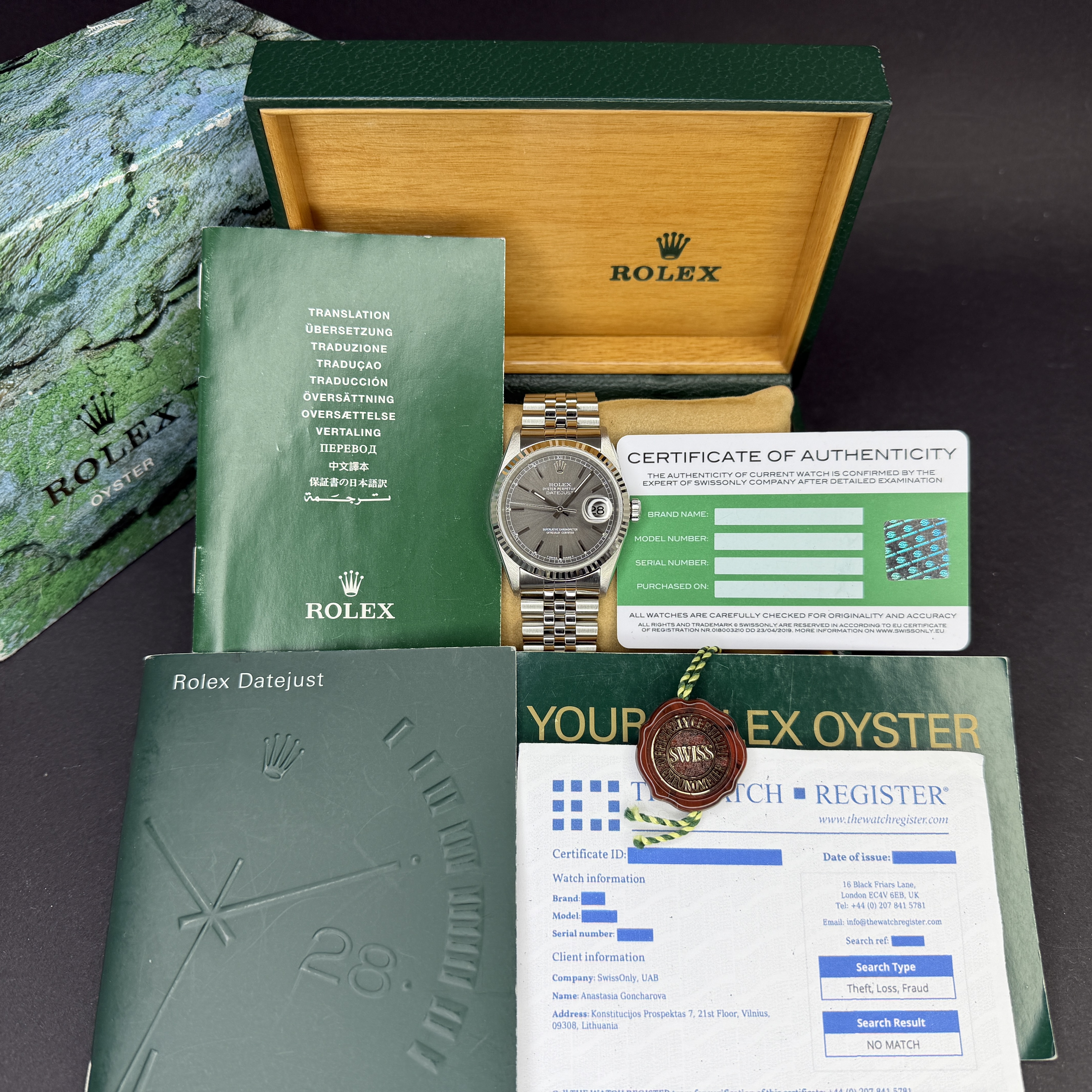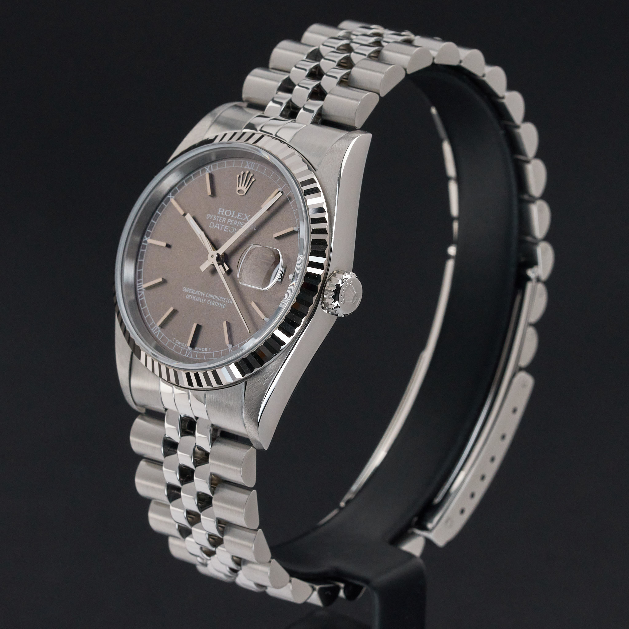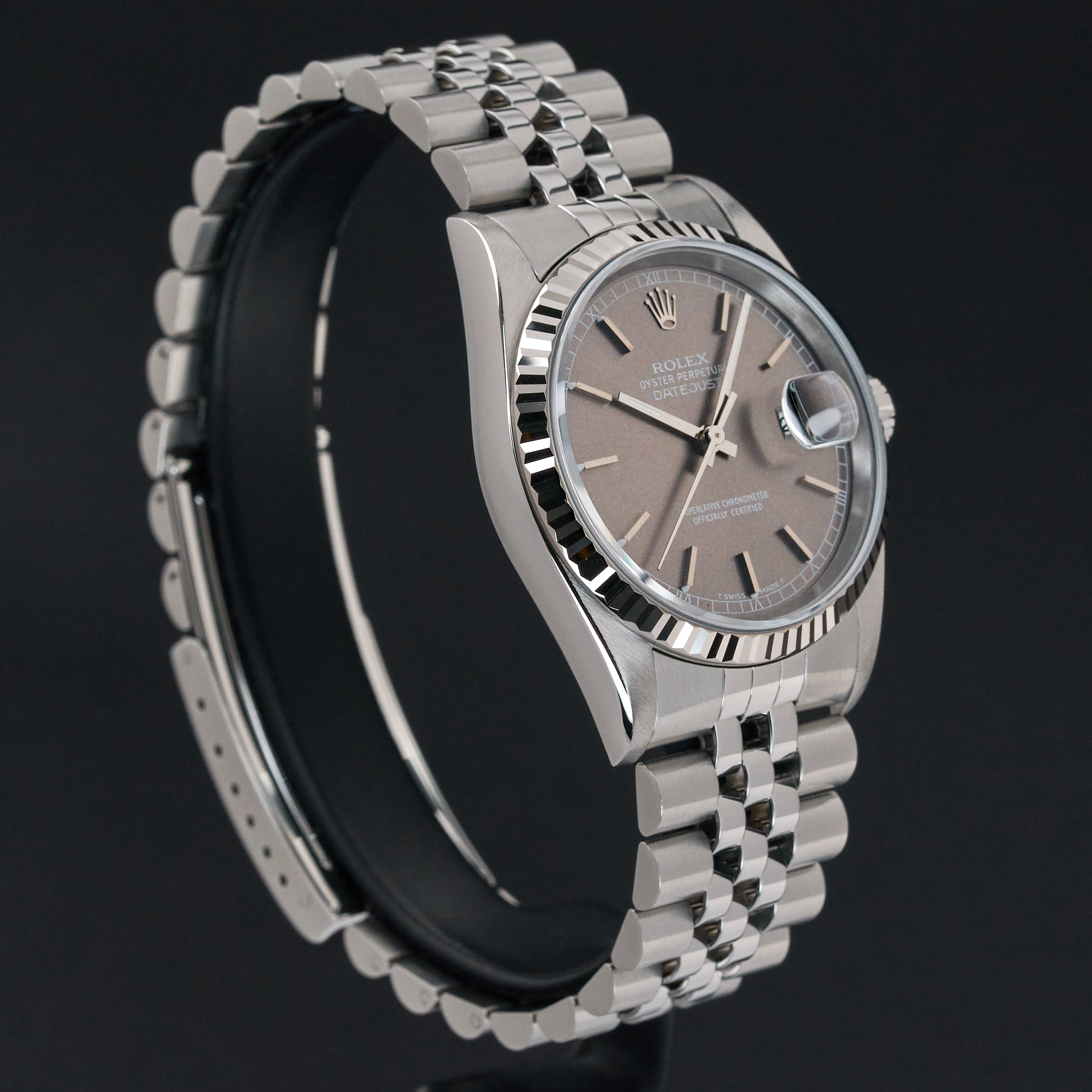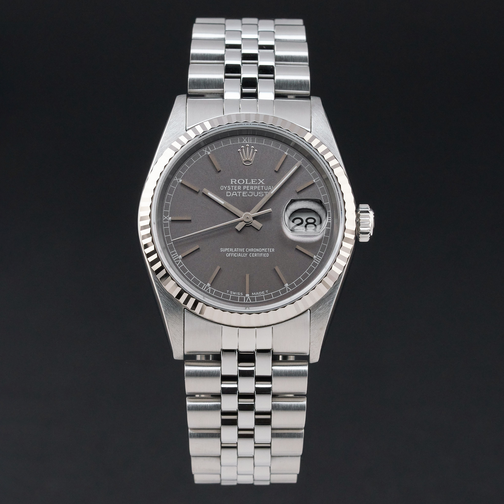 This Rolex Datejust 16234 features a Grey dial and is crafted from stainless steel, with a production year of 2000.