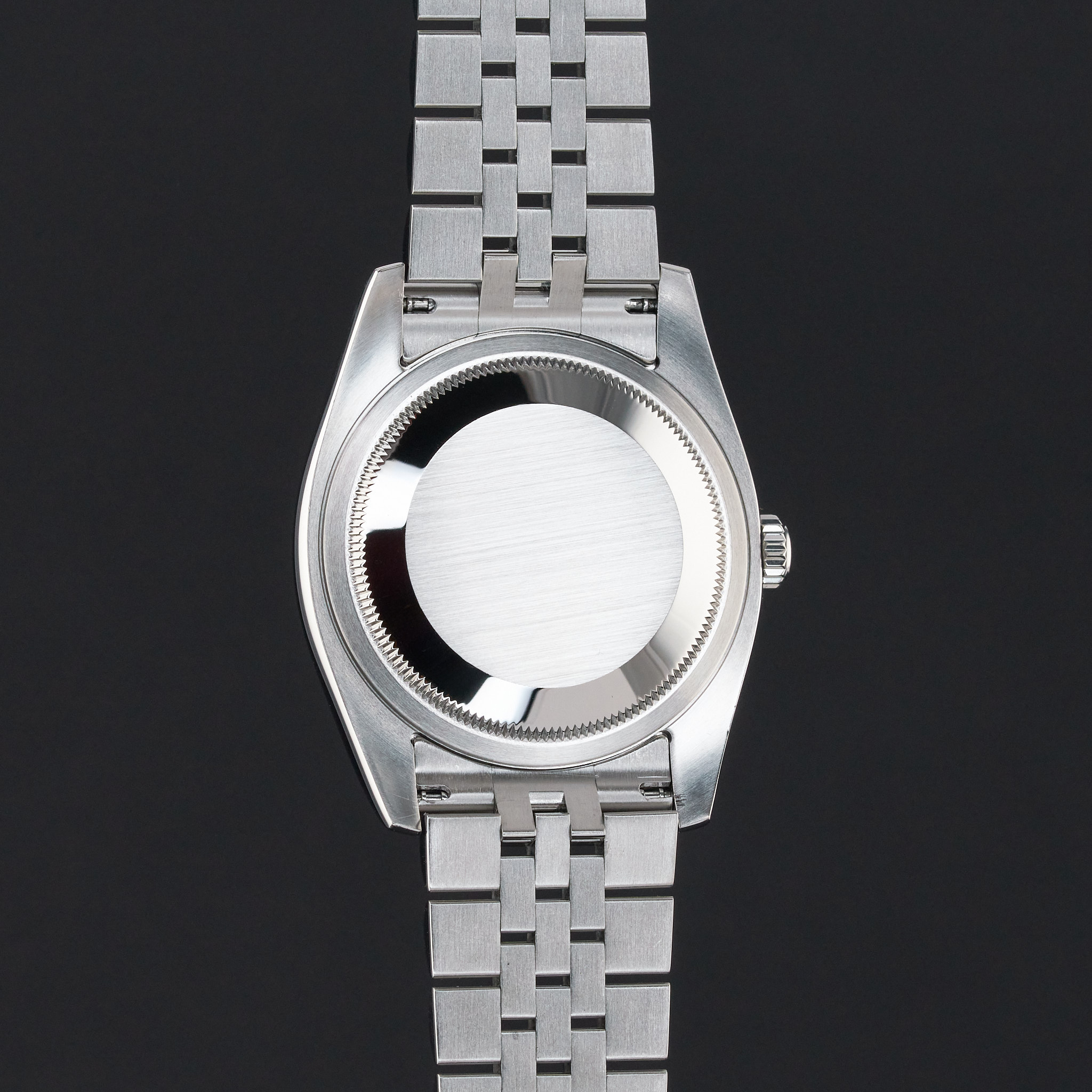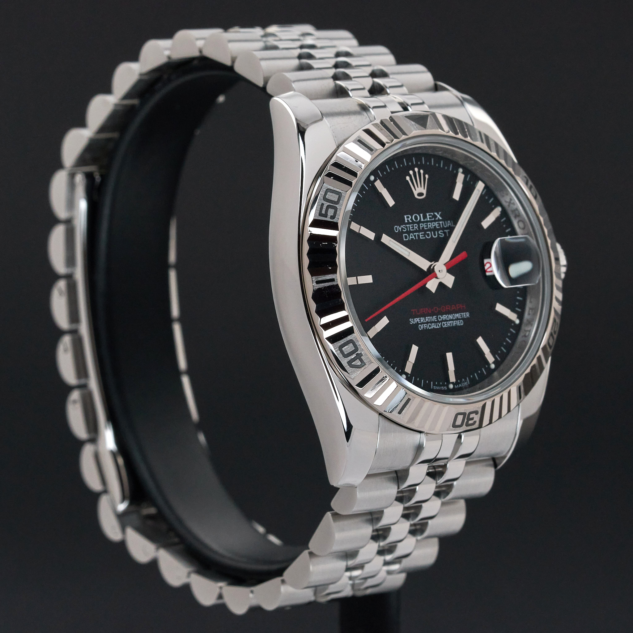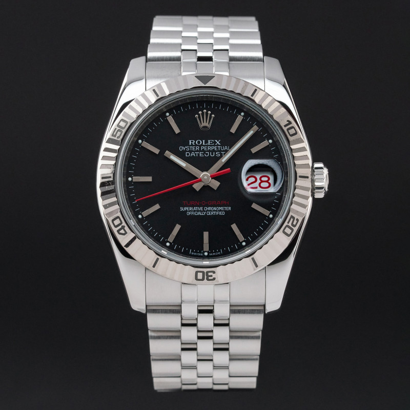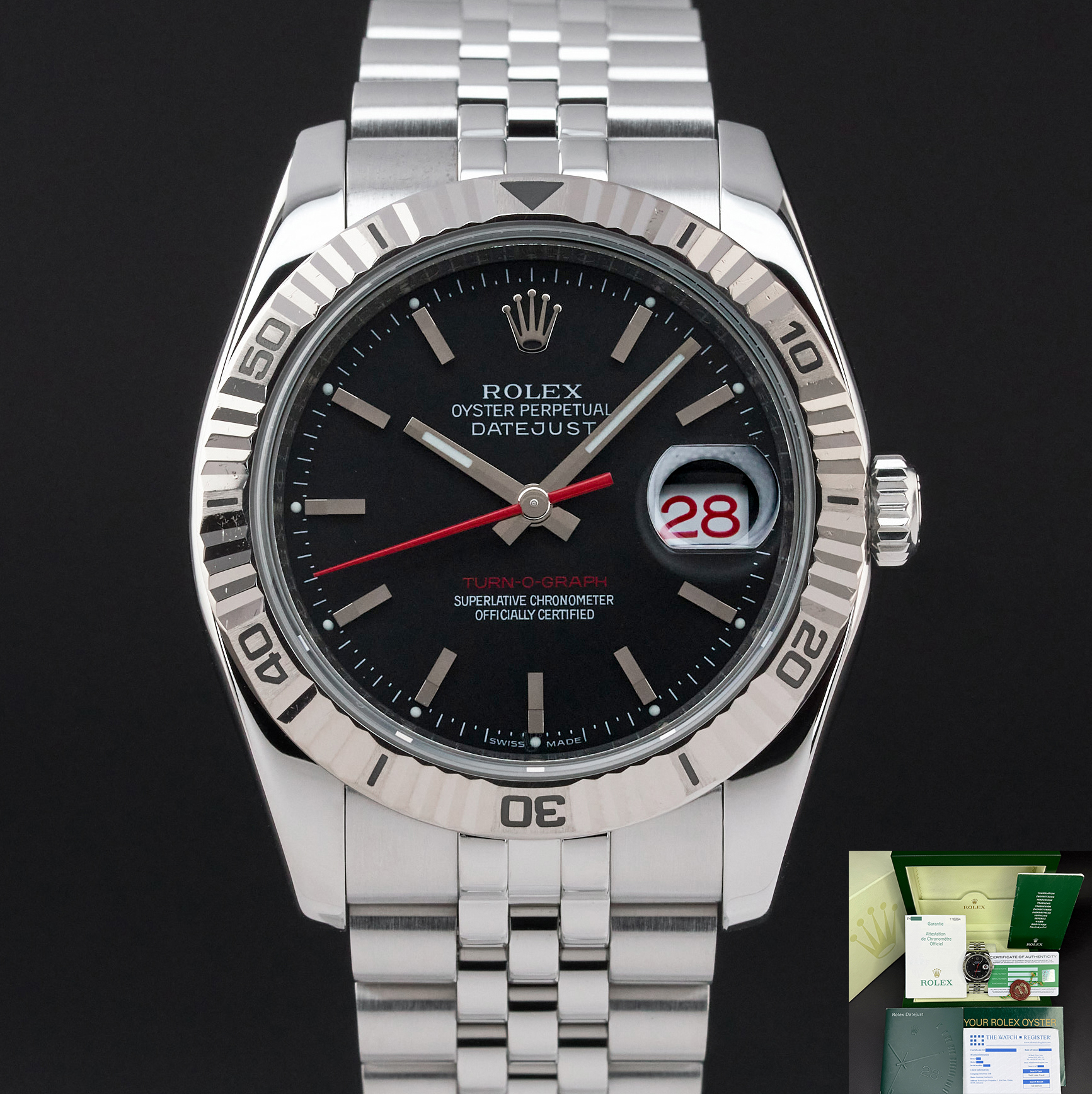 This Rolex Datejust Turn-O-Graph 116264 features a Black dial and is crafted from stainless steel, with a production year of 2005.