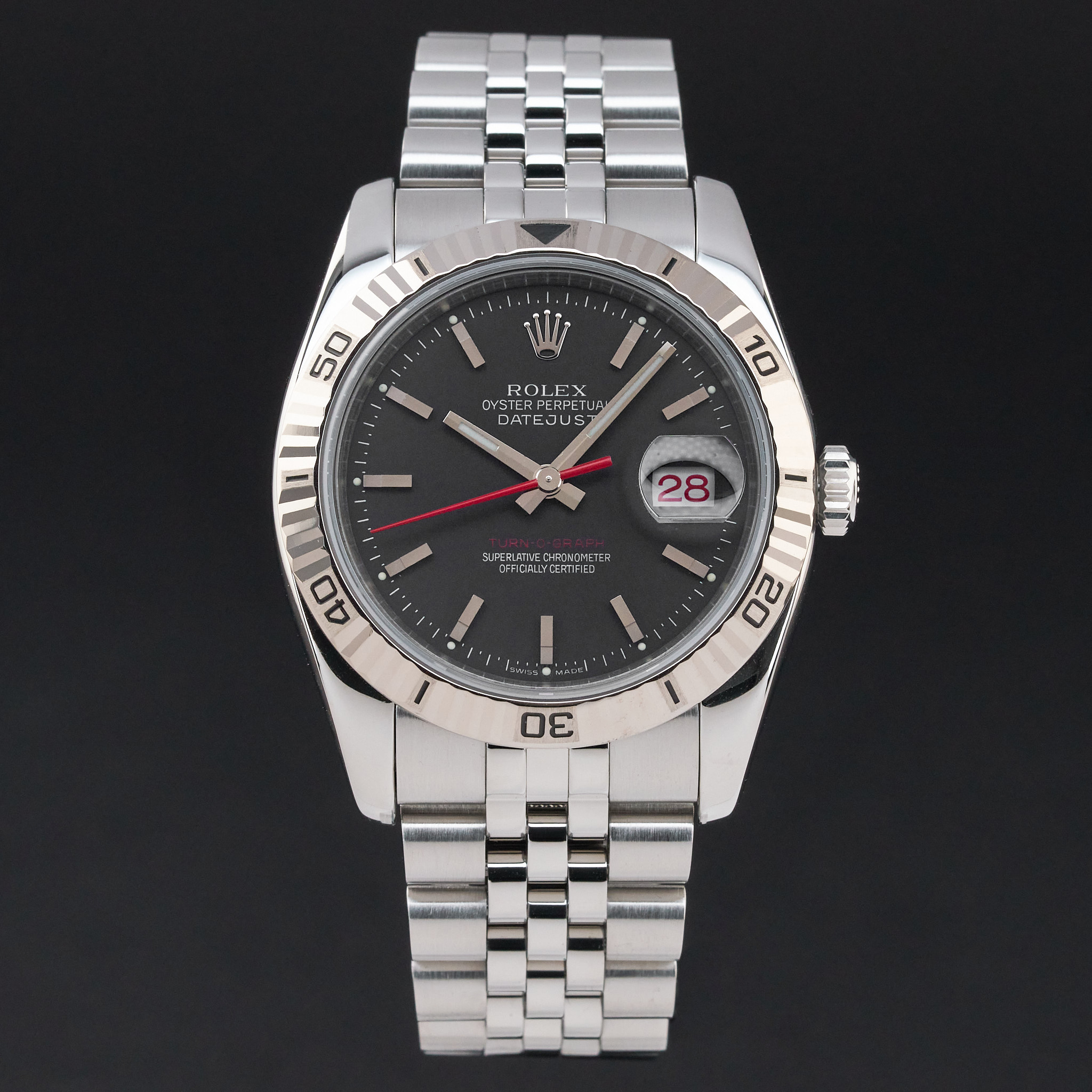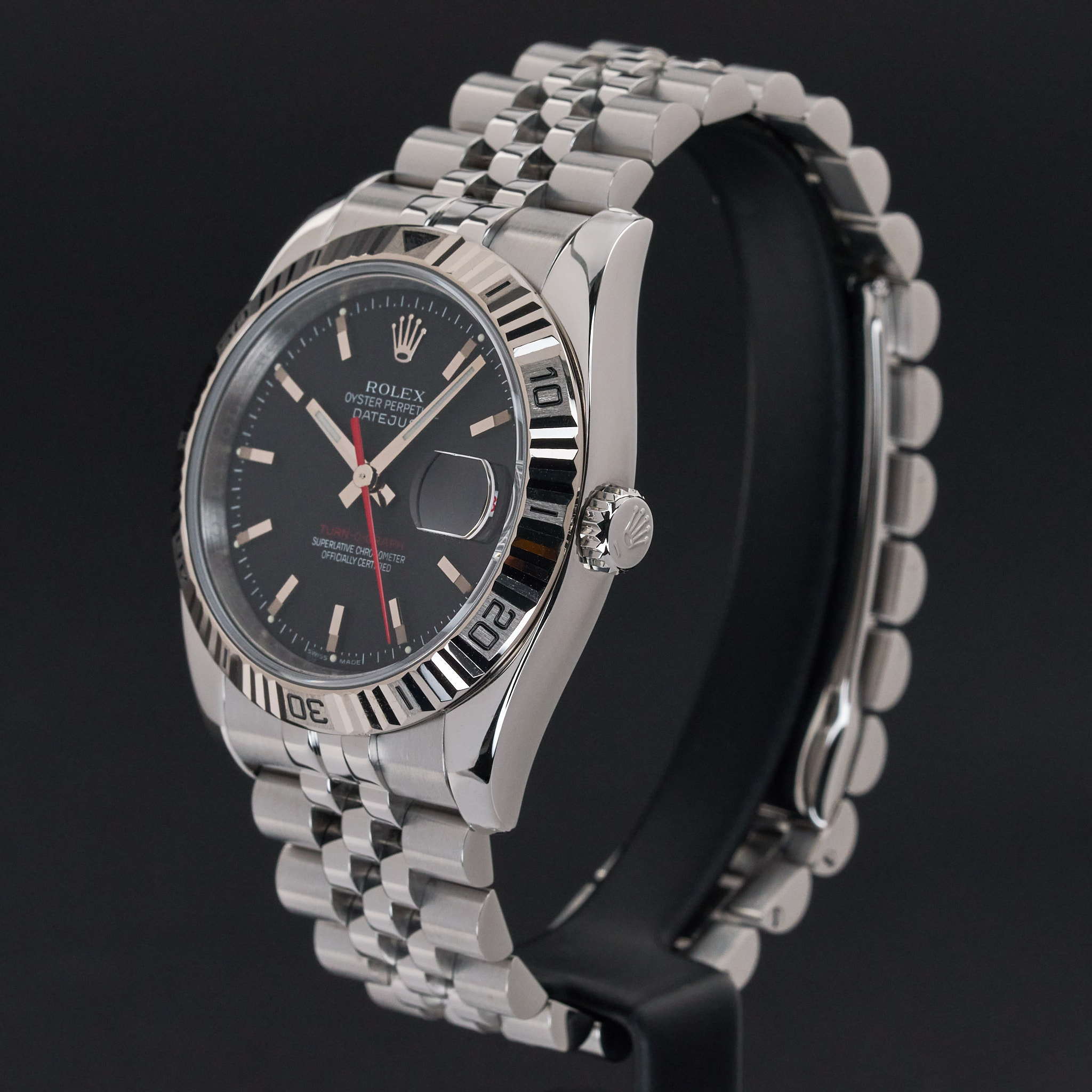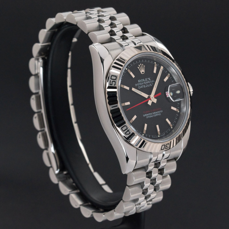 This Rolex Datejust Turn-O-Graph 116264 features a Black dial and is crafted from stainless steel, with a production year of 2006.