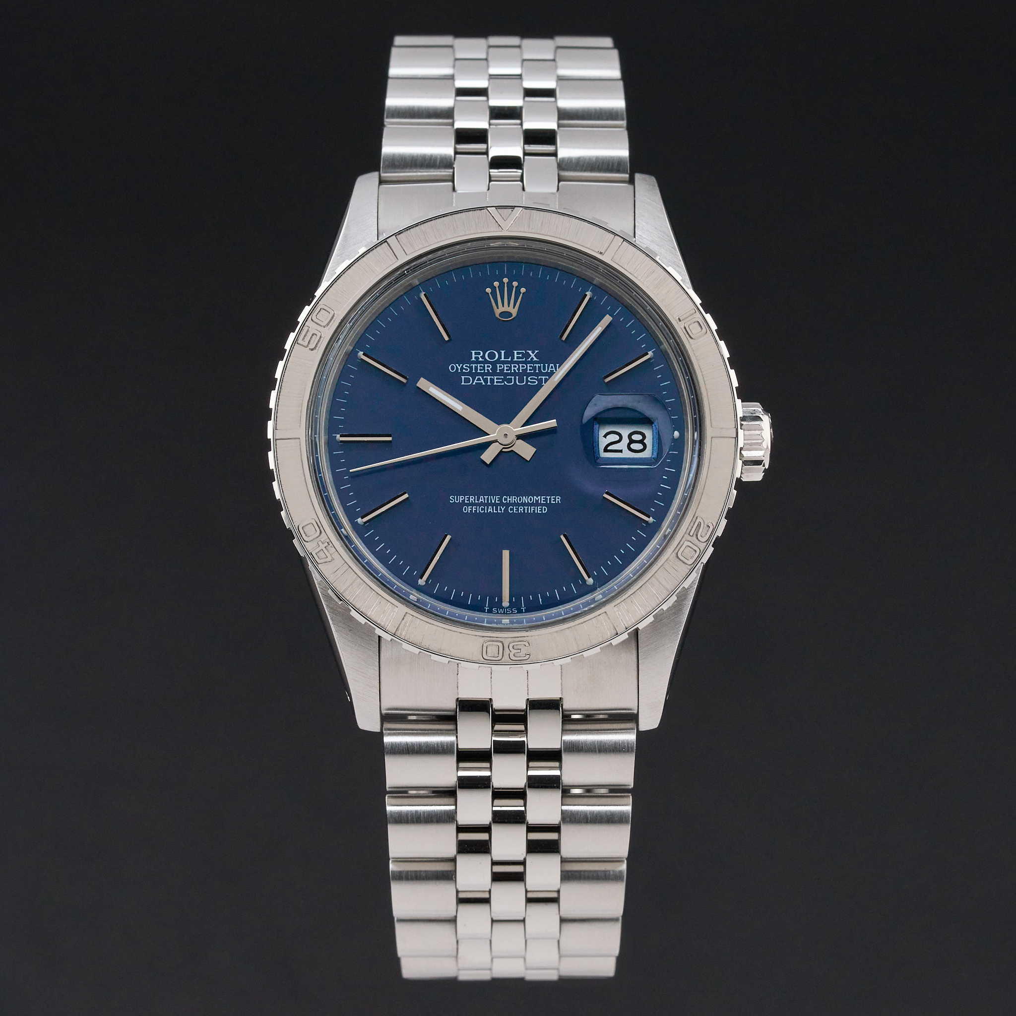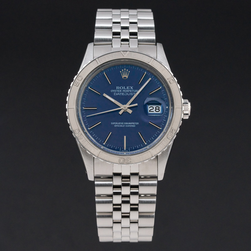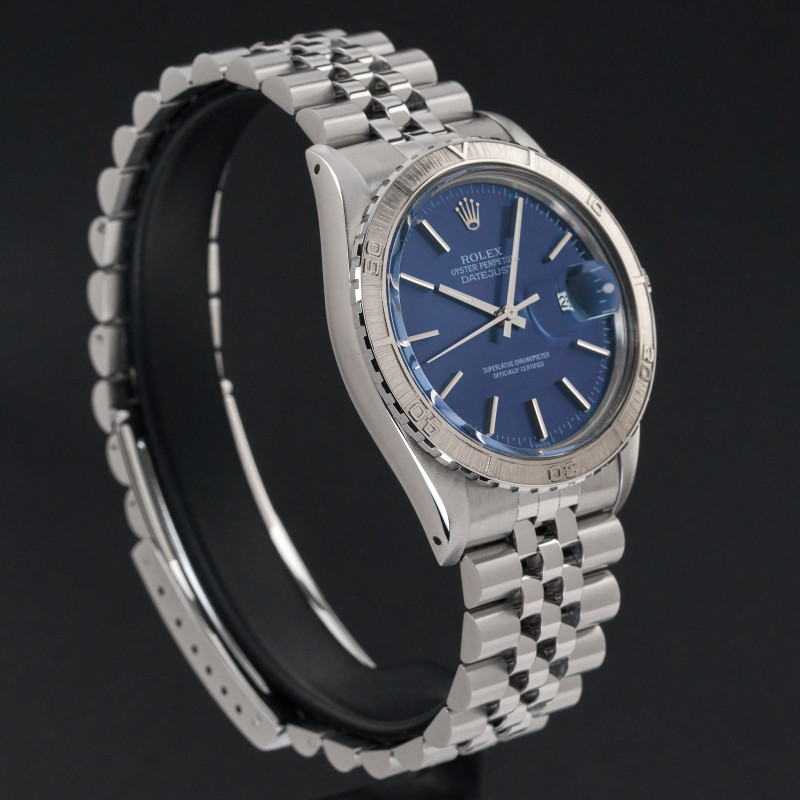 This Rolex Datejust Turn-O-Graph 16250 features a Blue dial and is crafted from stainless steel, with a production year of 1982.