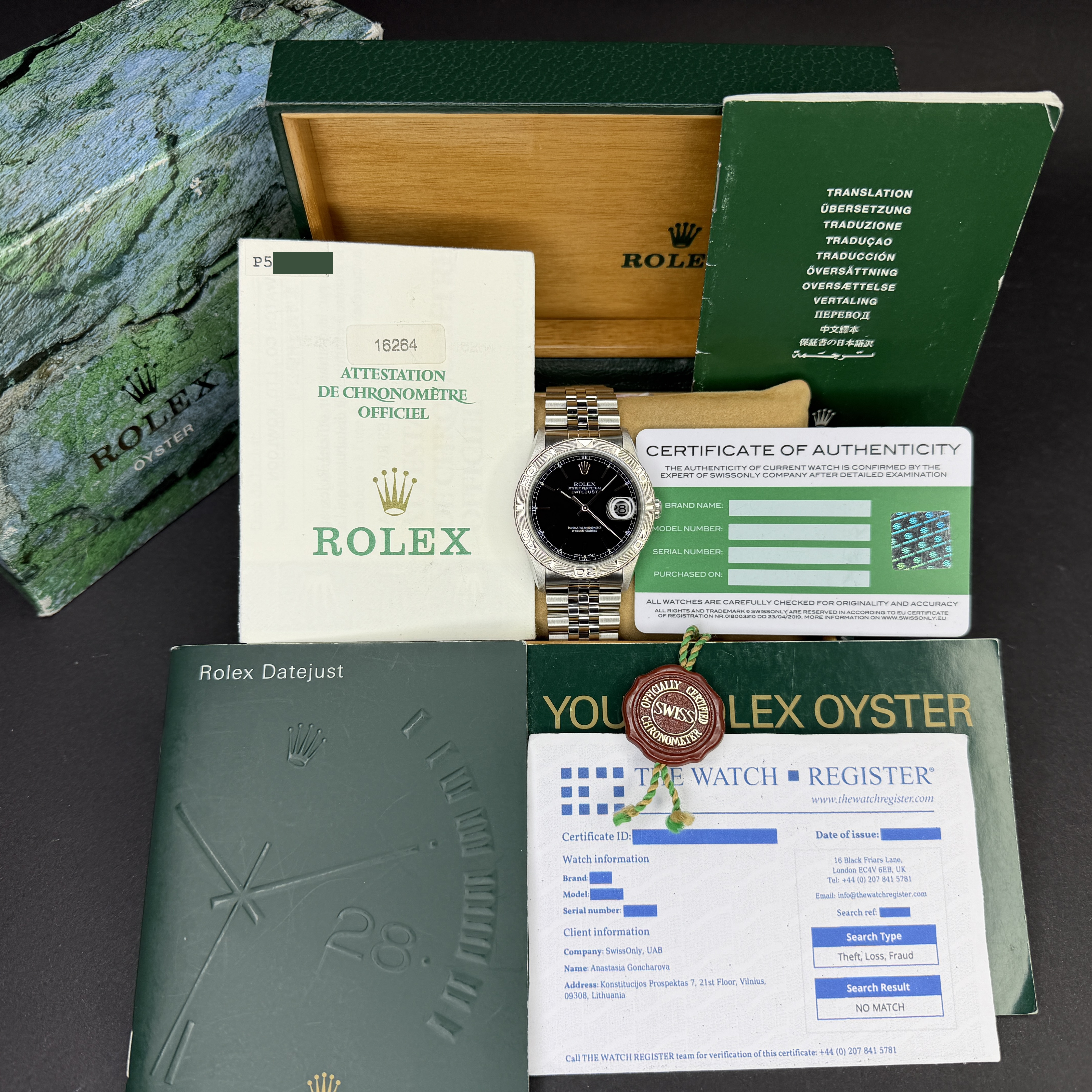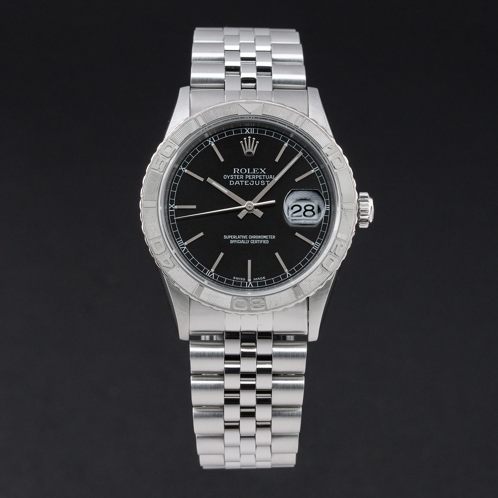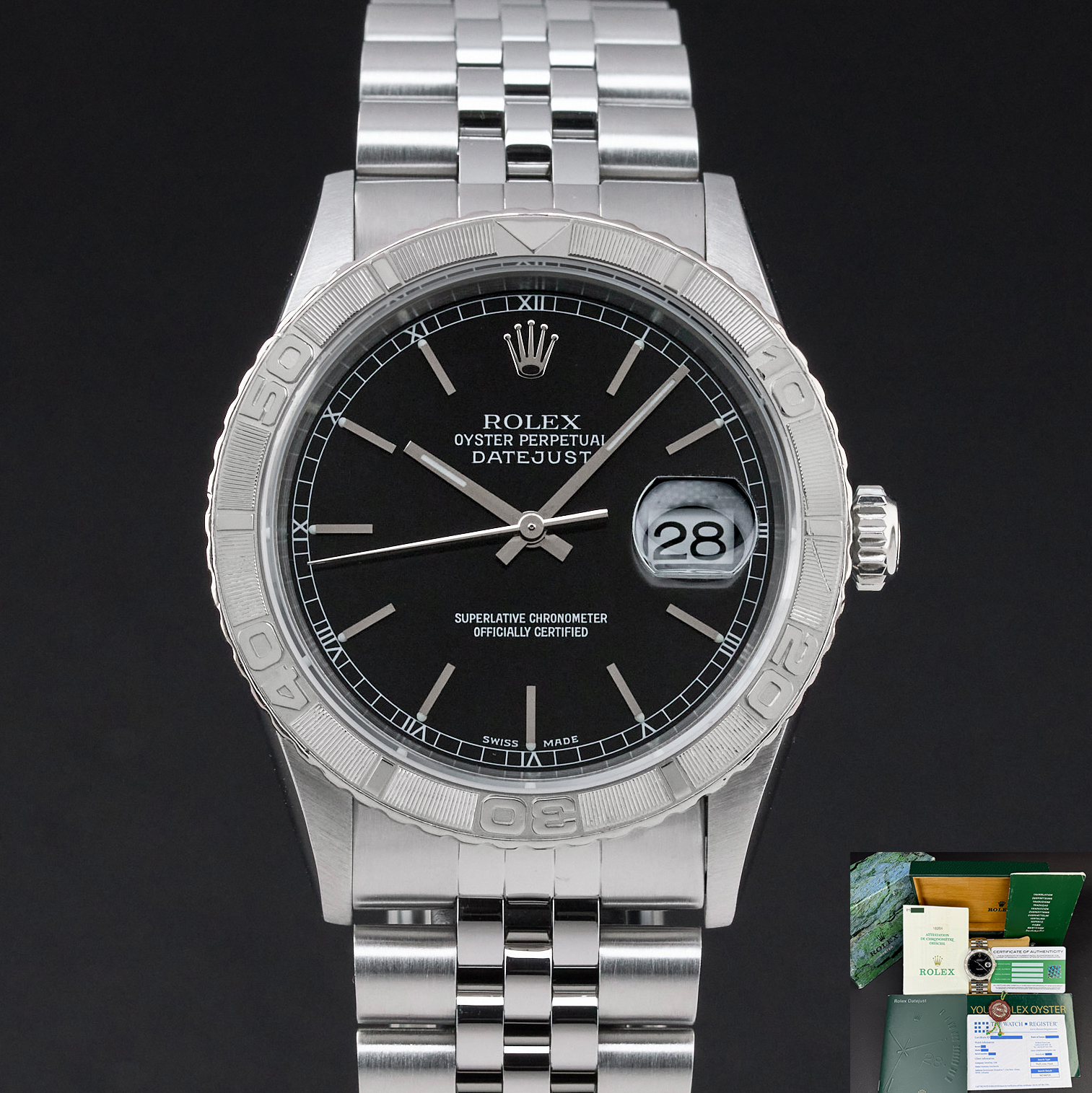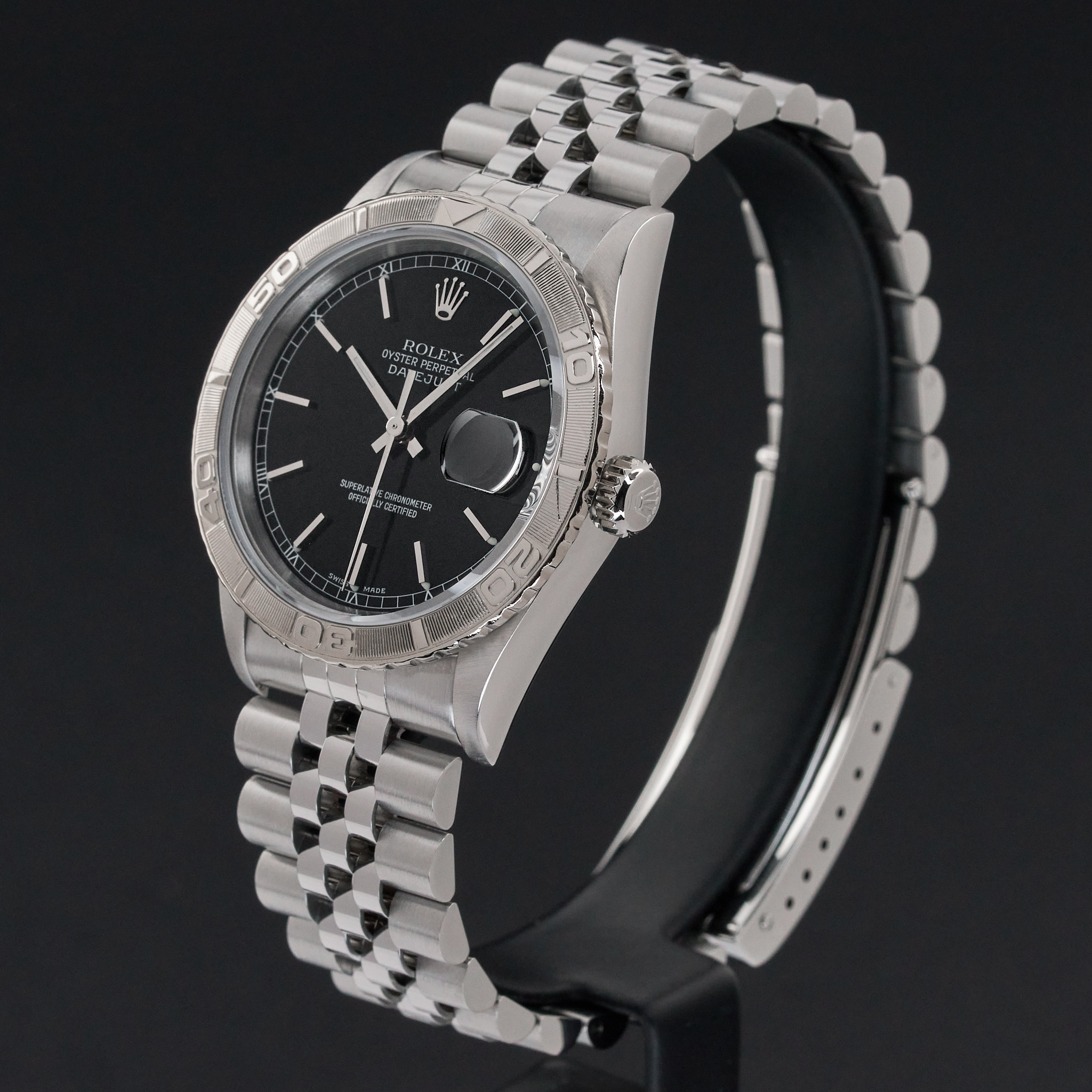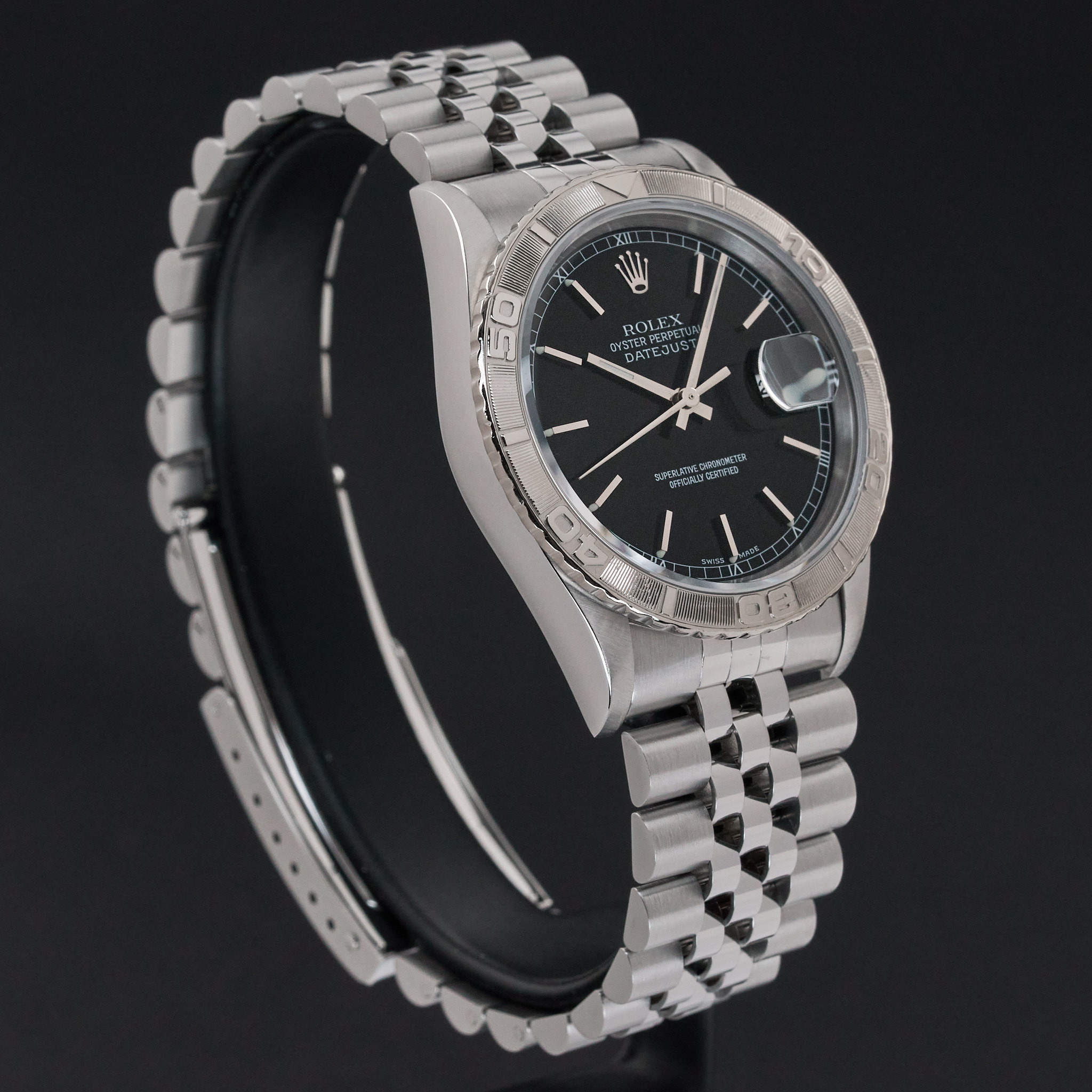 This Rolex Datejust Turn-O-Graph 16264 features a Black dial and is crafted from stainless steel, with a production year of 2000.