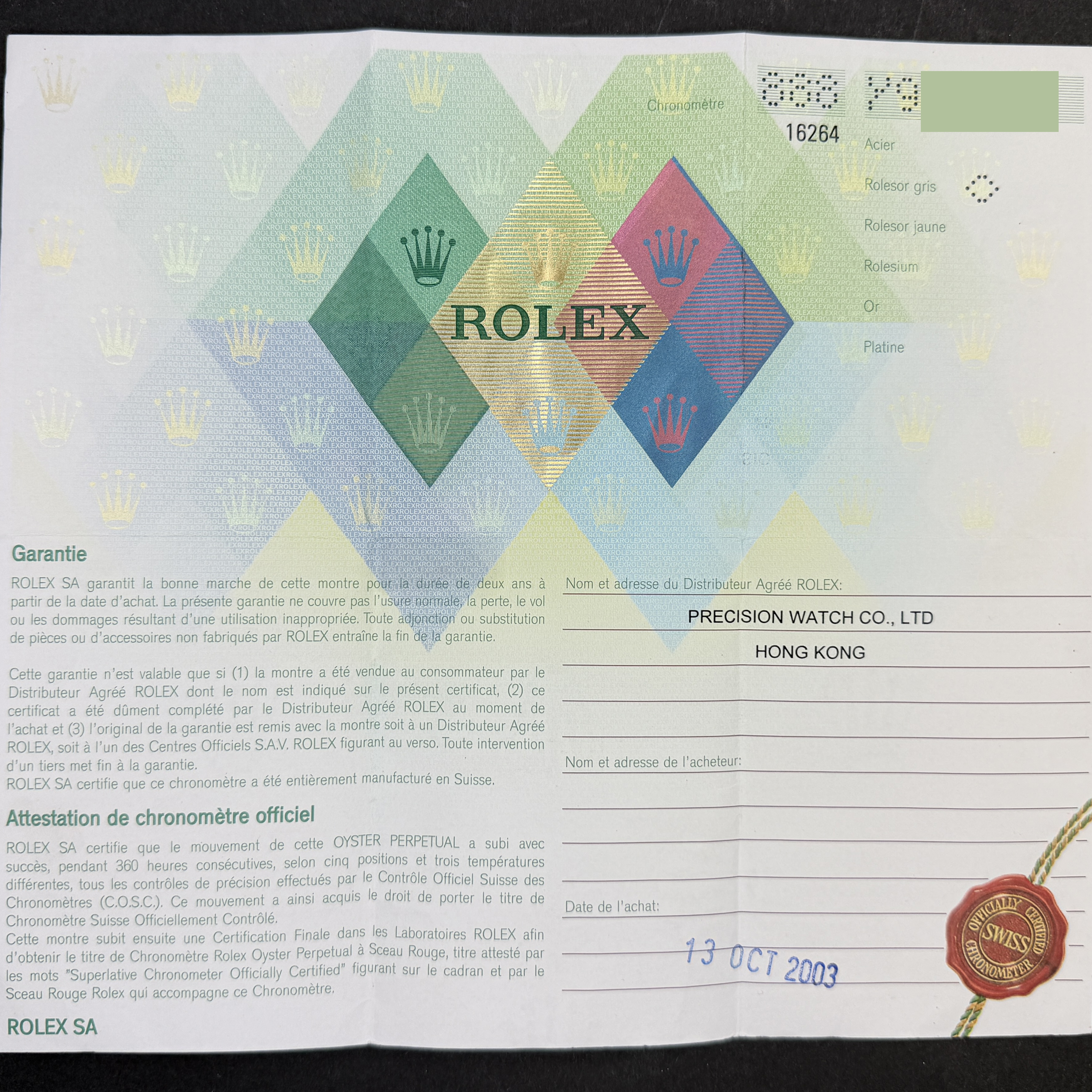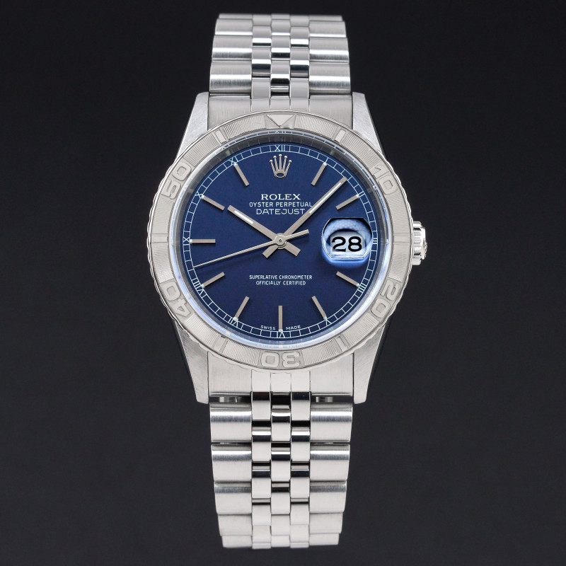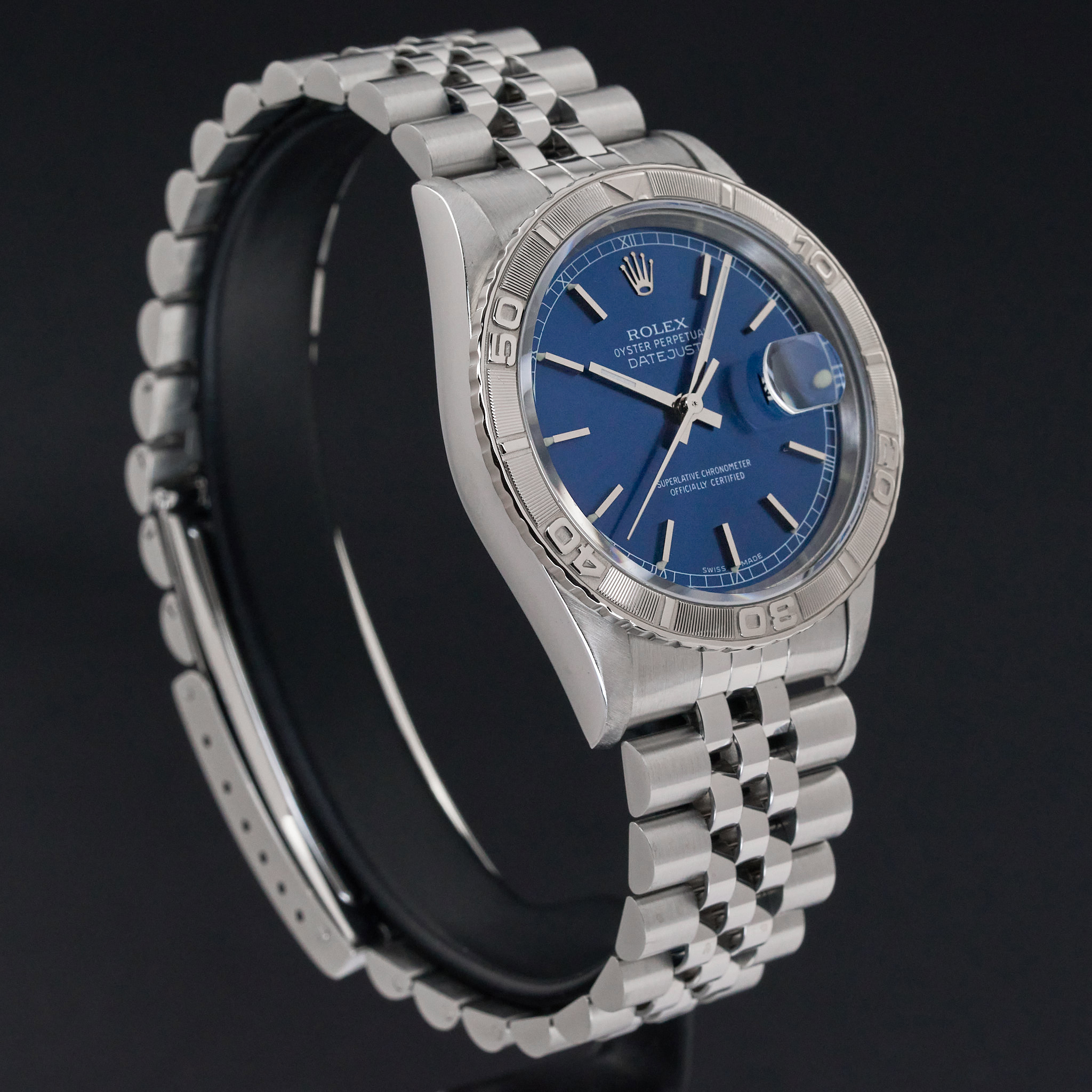 This Rolex Datejust Turn-O-Graph 16264 features a Blue dial and is crafted from stainless steel, with a production year of 2002.
