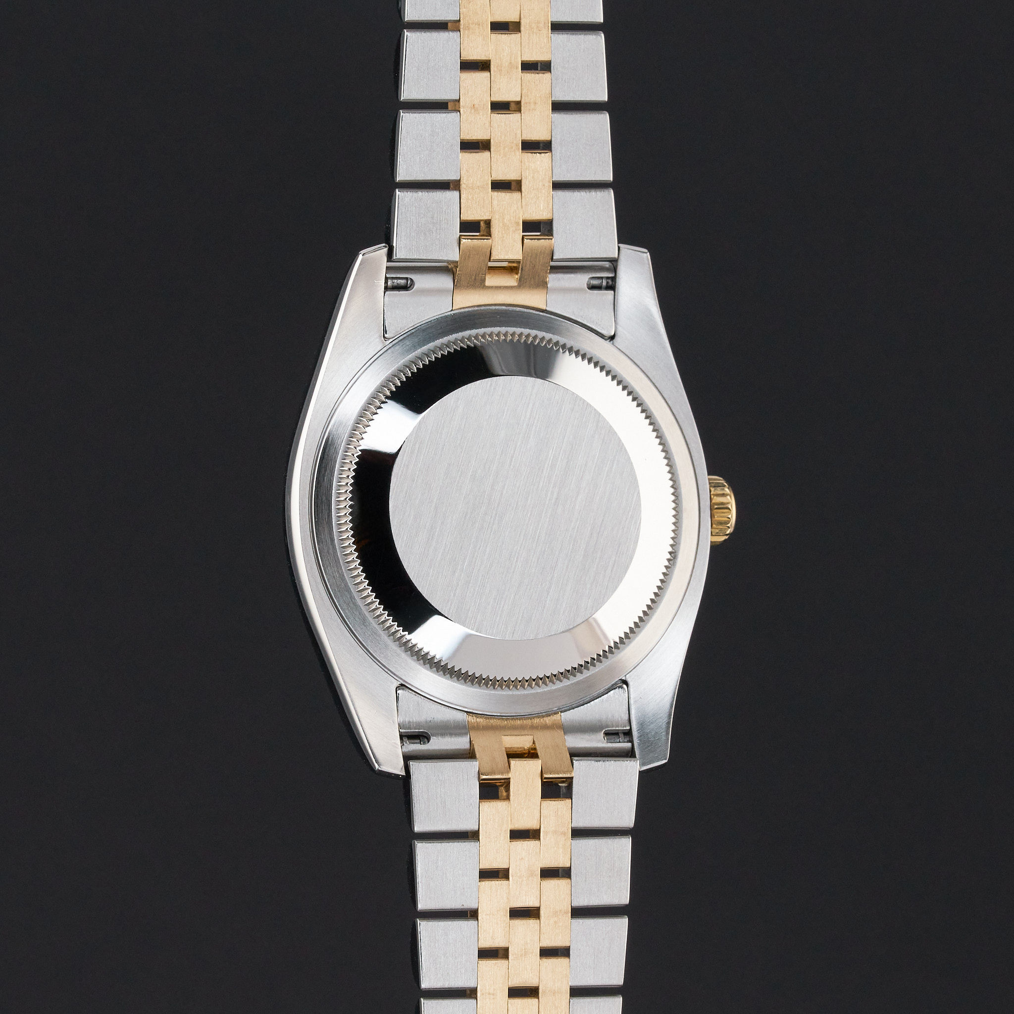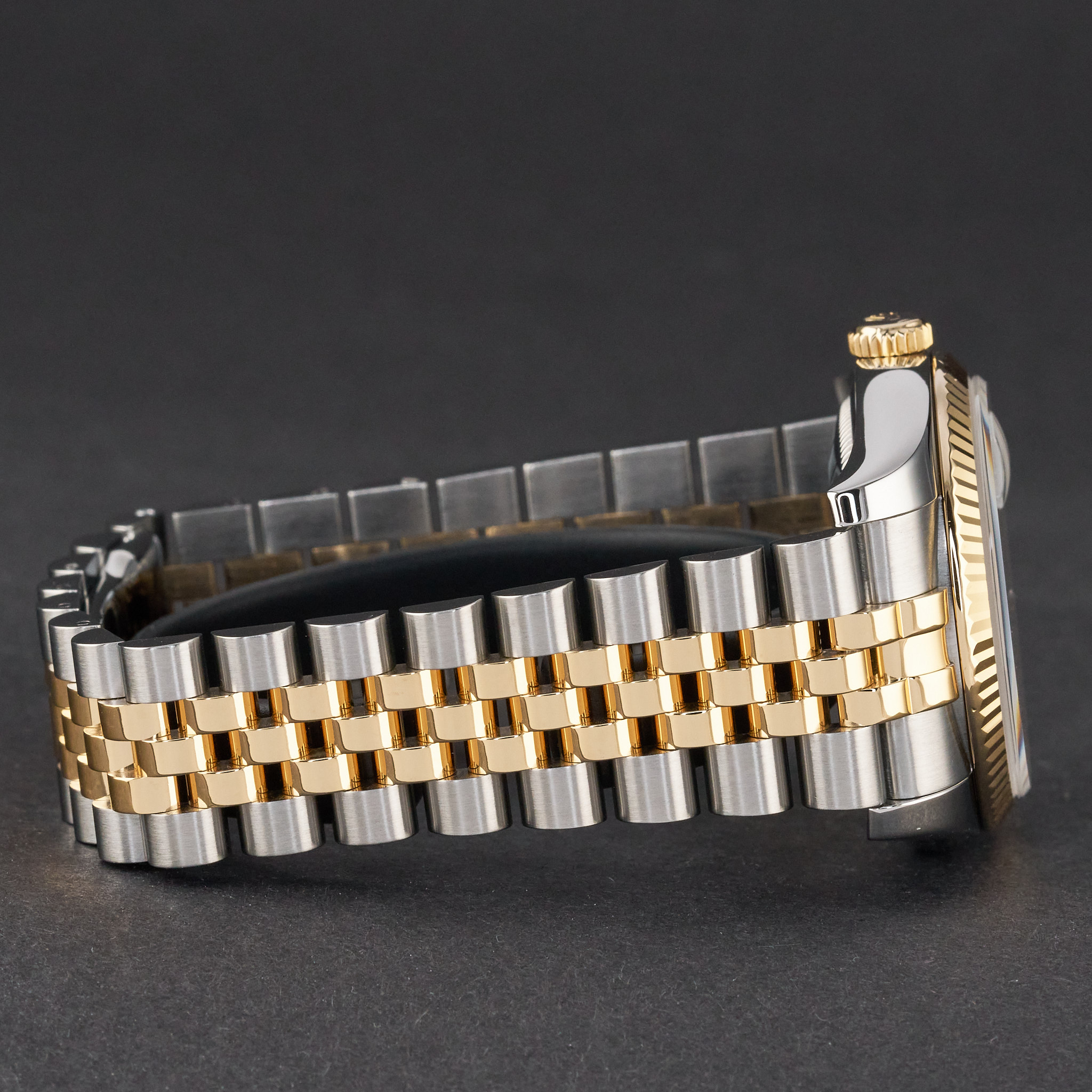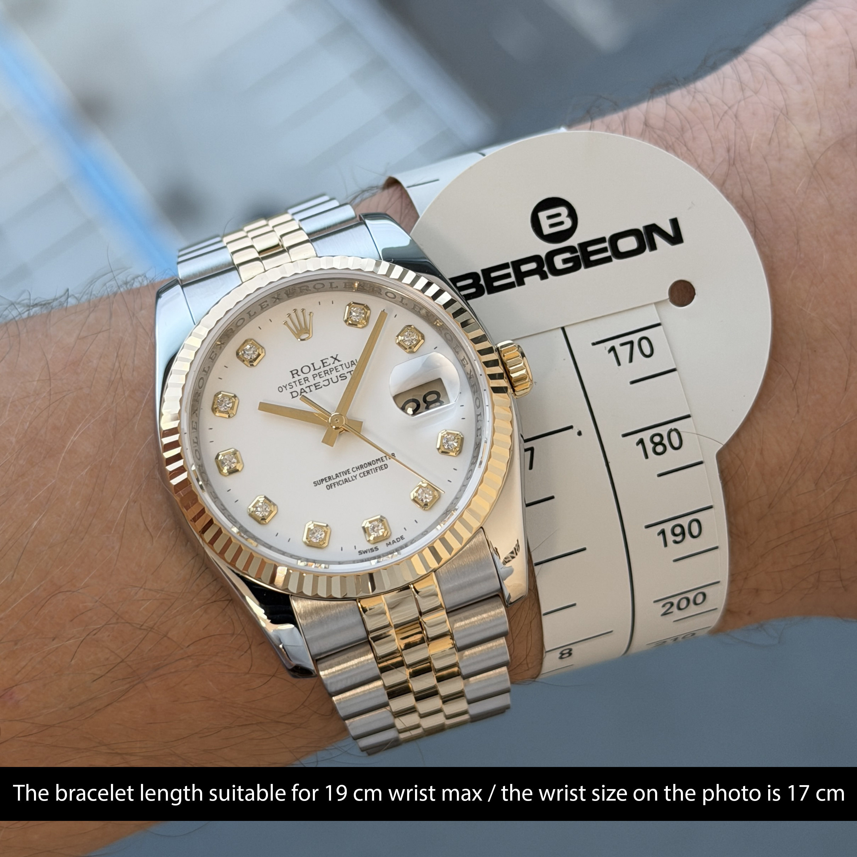 This Rolex Datejust 116233 features a White diamond dial and is crafted from 18K yellow gold and stainless steel, with a production year of 2010.