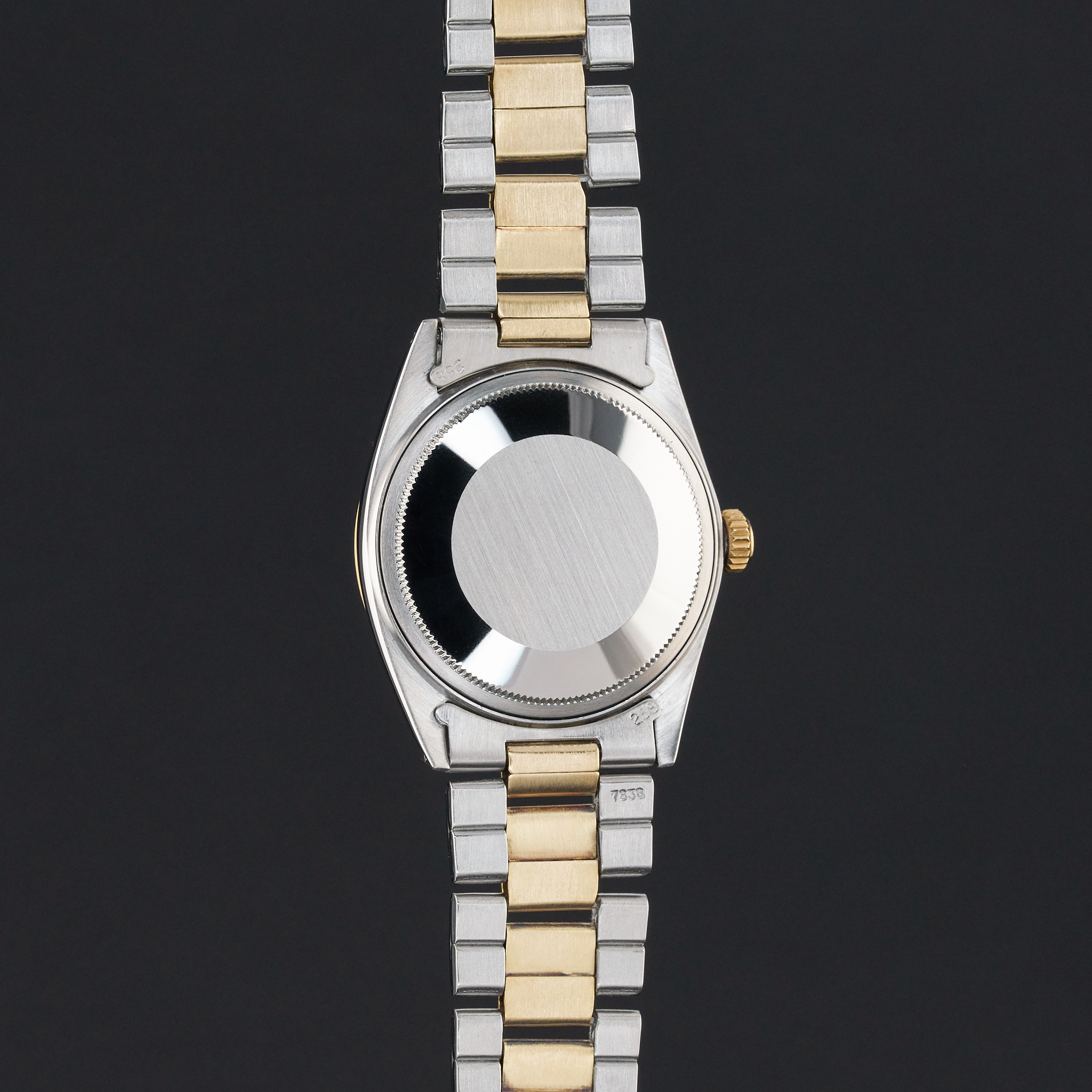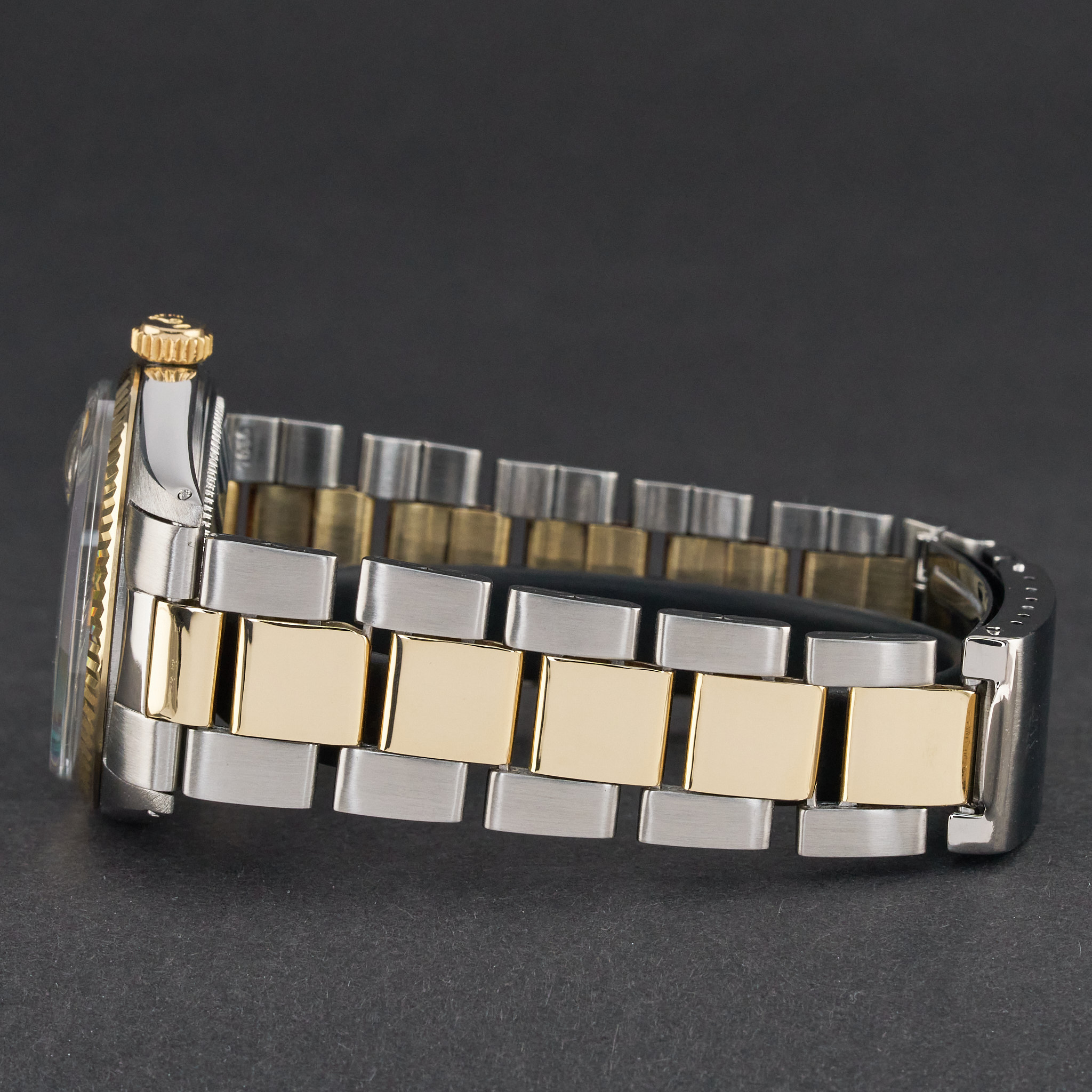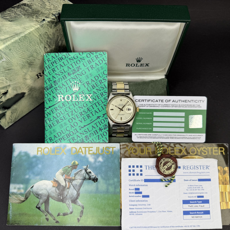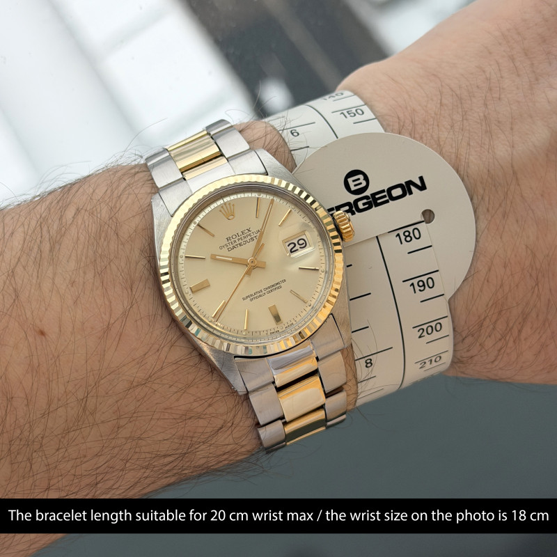 This Rolex Datejust 1601 features a Silver dial and is crafted from 18K yellow gold and stainless steel, with a production year of 1971.