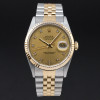 This Rolex Datejust 16233 features a Champagne small diamond dial and is crafted from 18K yellow gold and stainless steel, with a production year of 1990.