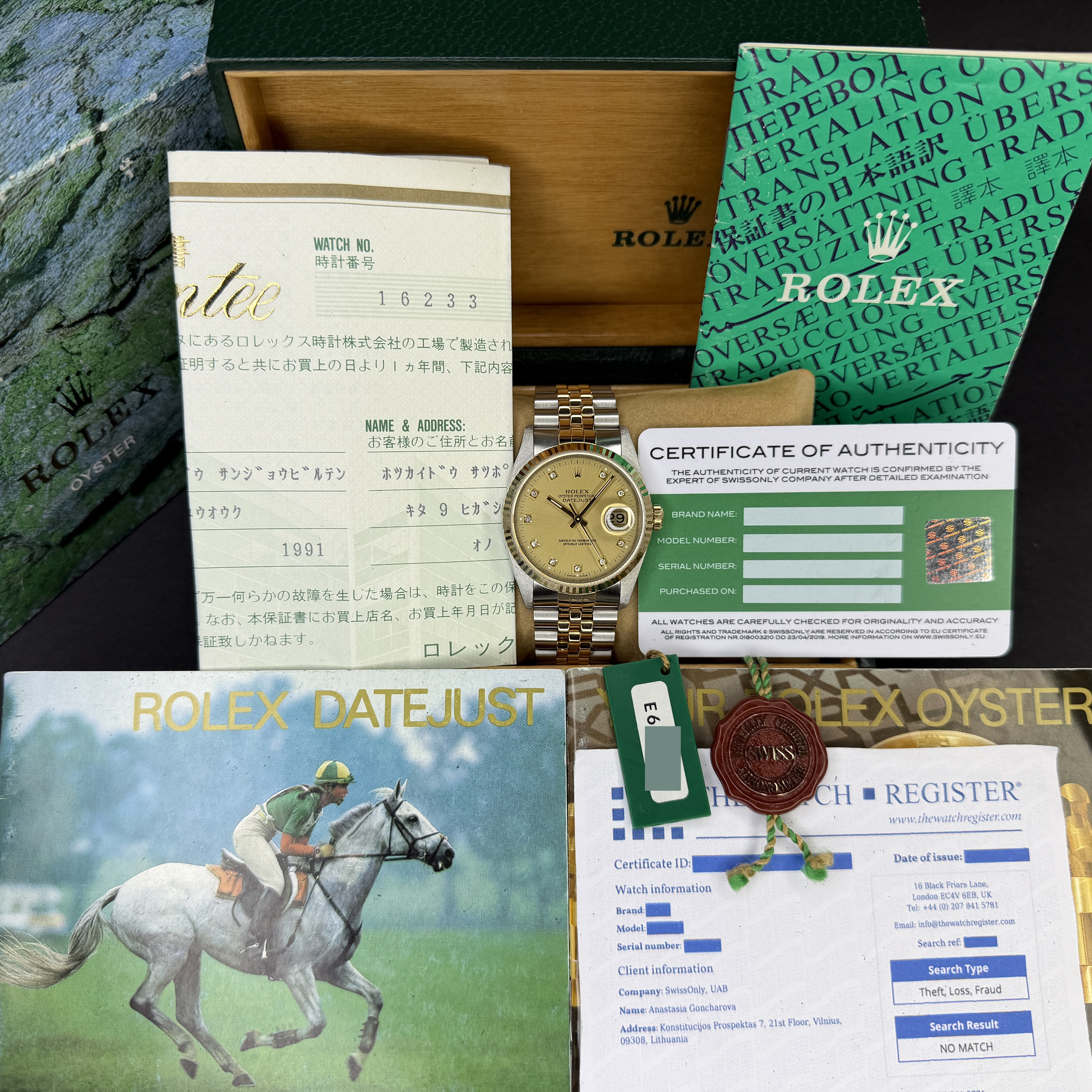 • With with original papers, booklets, box and plastic tag