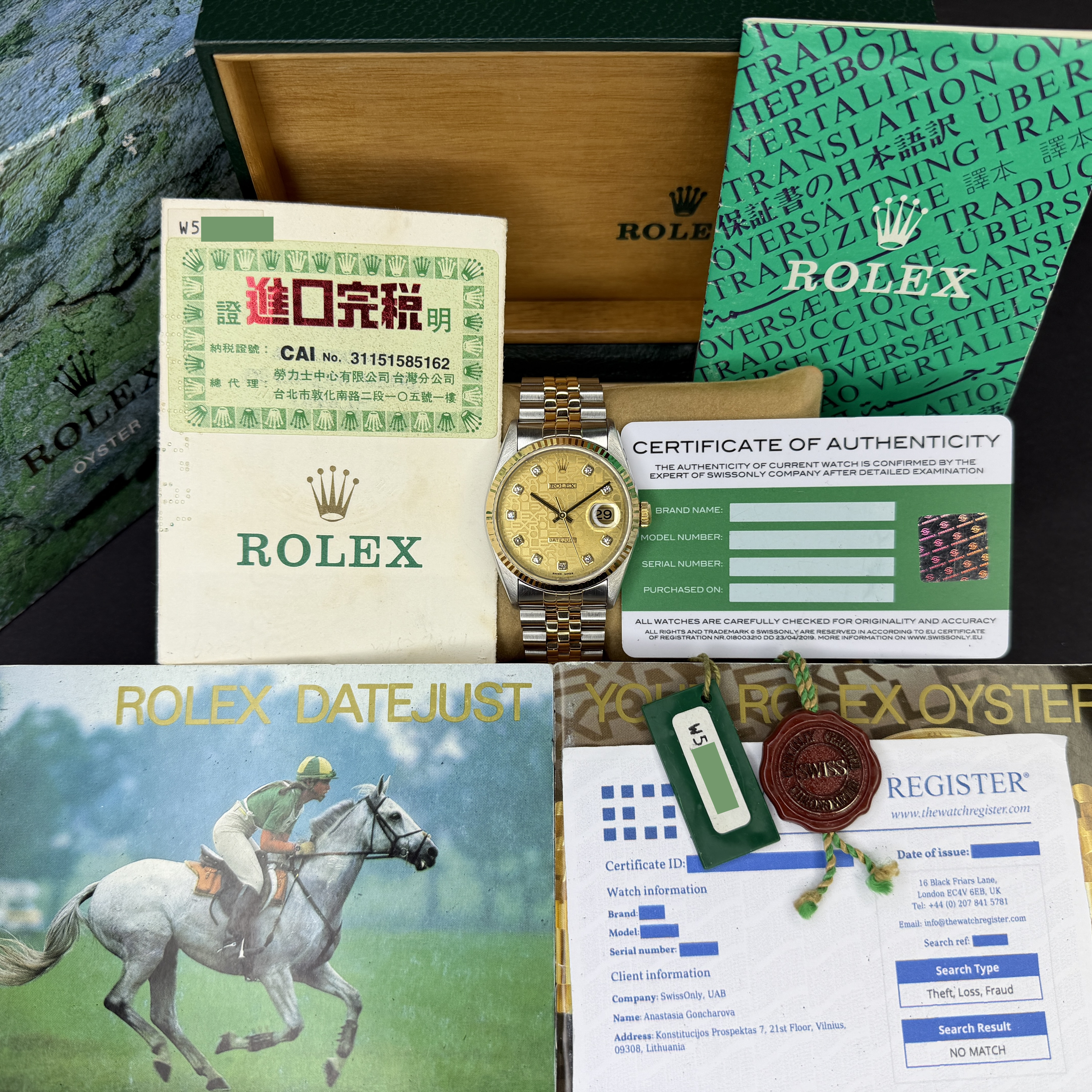 • With with original papers, booklets, box and plastic tag