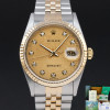 This Rolex Datejust 16233 features a Champagne jubilee big diamond dial and is crafted from 18K yellow gold and stainless steel, with a production year of 1996.